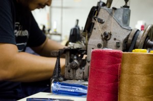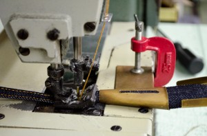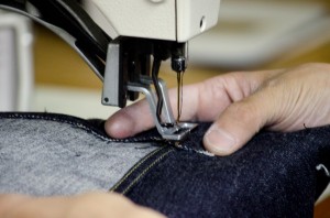 TCBjeans50’sの大股(インシーム)は通常インターを使う2工程ですが、今回は太番手で地縫いしてますので、インターを使わない昔ながらの3工程。ステッチ幅も古着の切れ端を観ながらミシンを改造し同じ所にステッチしてます