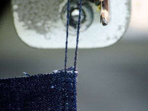 現在生産中の新作TCB SEAMENS 使用している生地は現在主流のコンピューター制御のムラ糸では無く、自然ムラを使った10ozデニムです。 製品で、耳は使用しませんが、力織機をしようしたセルヴィッチの生地です。 ハードな着用を想定して緯糸に先染めのグレーの糸を使用しています。 早く履き込みたい