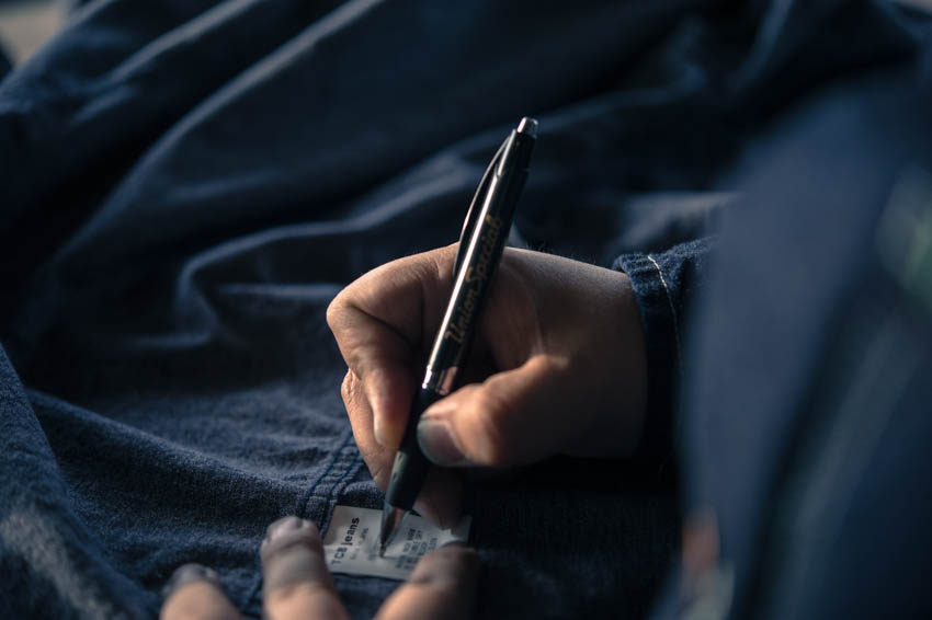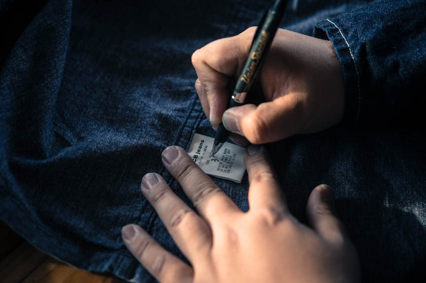 TCBではジーンズ以外サイズネームを使わずスタンプかペンで手書きしてます。 もちろん賛否両論あると思いますが、何となく無い方が着込んだ後の事を想像した時にカッコ良いかなって思っただけです。
