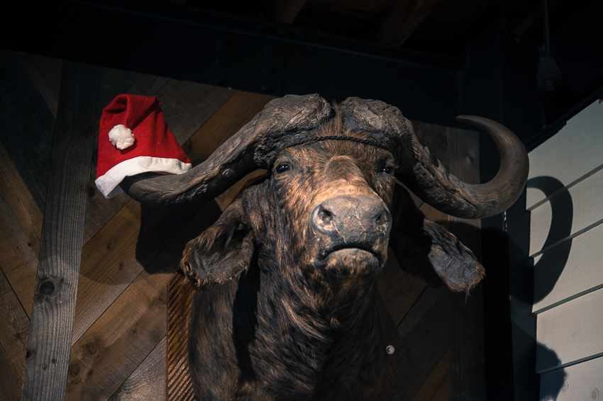 バッファローにサンタになって頂いております。