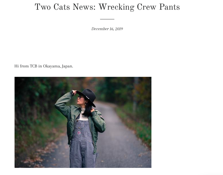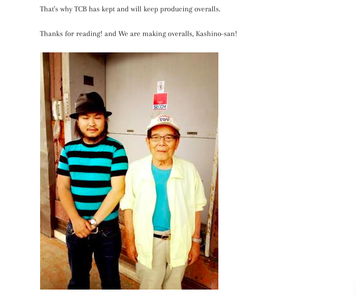 読んでくれてありがとう! 柏野さん、TCBは今でもオーバーオールを作っていますよ!