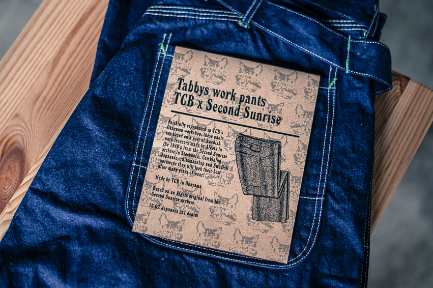 At a meeting one hot summer en Berlin we showed Hajime some pictures of the pants and he agreed to reproduce them! The result is the TCB x Second Sunrise Tabbys work pant!