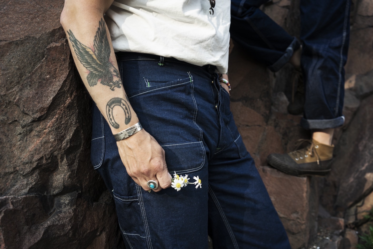 In our store we have a big archive of textiles that we find inspiring in one way or another, and we thought why not ask Hajime if he wants to do a collaboration with us? Our archive holds all kinds of American denim related workwear, spanning from pieces of early work clothes worn by American miners in the late 1800’s that Douglas helped out to excavate for abandoned Nevada silver mines in 2009 to jeans and jackets that were worn as casual everyday garments in the later half of the 20’th century.