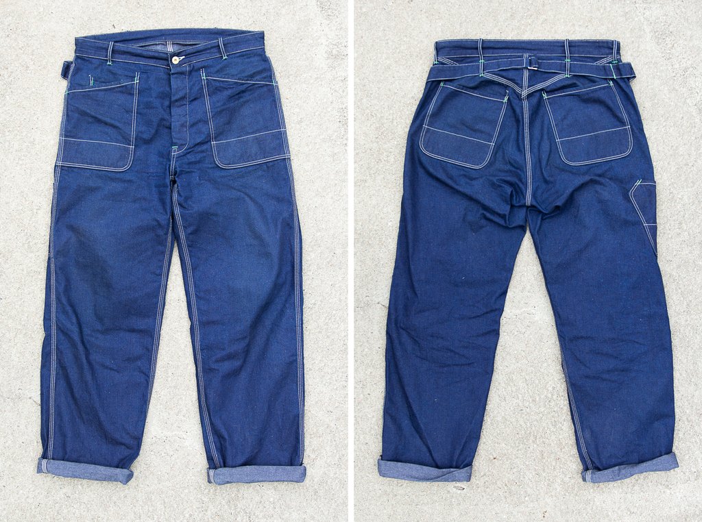 We couldn’t be more pleased with the reproduction made by TCB. The fabric chosen is a lightweight indigo denim and all the seams are meticulously reproduced using the same kind of machines as were originally used in the 40’s. The feeling of the original pants has been captured beautifully and we can confirm that they are very comfortable to wear!