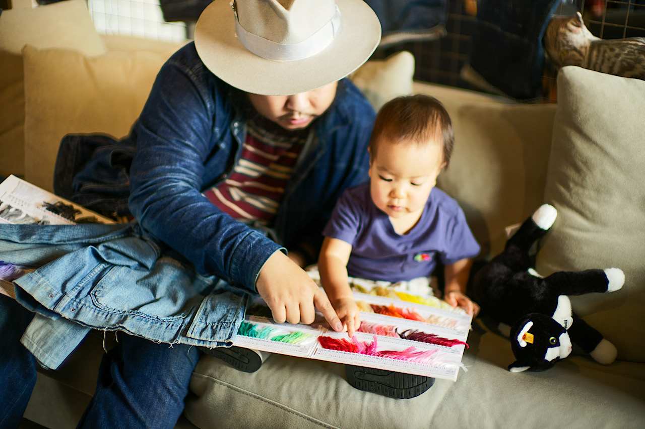 Vintageを参考に糸の色を決める/ Deciding the colors of the threads, referring to the vintage.