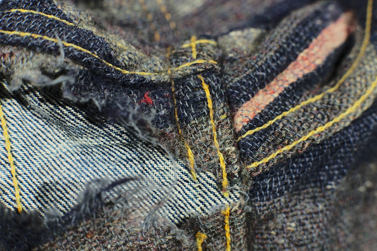 Comparing the wool fabrics, the tinge on our fabric look a bit darker but we have counted in the fades on the fabric so when it’s worn well the hue will be pretty close to the vintage piece. The pitches and the widths of the stripes are authentically reproduced from the vintage 517XX we own.