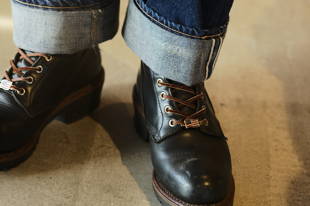 CATBOY JEANS にいつも色々なブーツを合わせて御来店される常連さん。 本国の工場で貰ったというレースキーパーが羨ましい。 最近私はサイドゴアしか履いてなかったので久しぶりにレースアップを履きたいなと模索中です。