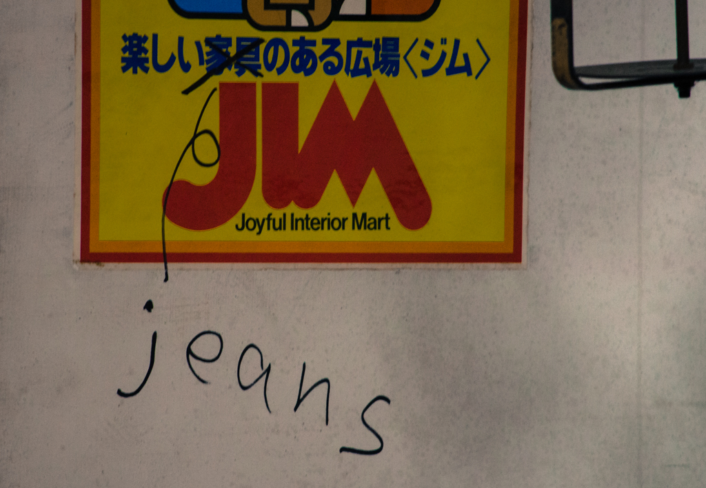 その家具という文字をjeansに変えて
