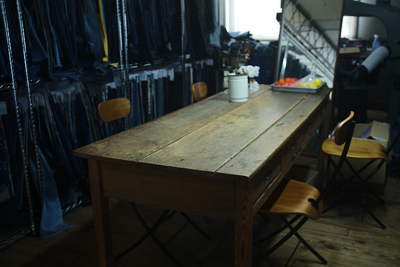 The address is a bit different because Kojima city was later merged into Kurashiki City but I assume this was made in the 50’s. Finally, I found a sticker on the wall saying ” this is the place where you can find enjoyable furniture” so I crossed out the furniture and wrote jeans instead. Like Uehara Furniture used to make good tables and furniture, we will keep making the most enjoyable jeans in the world at Kojima City.