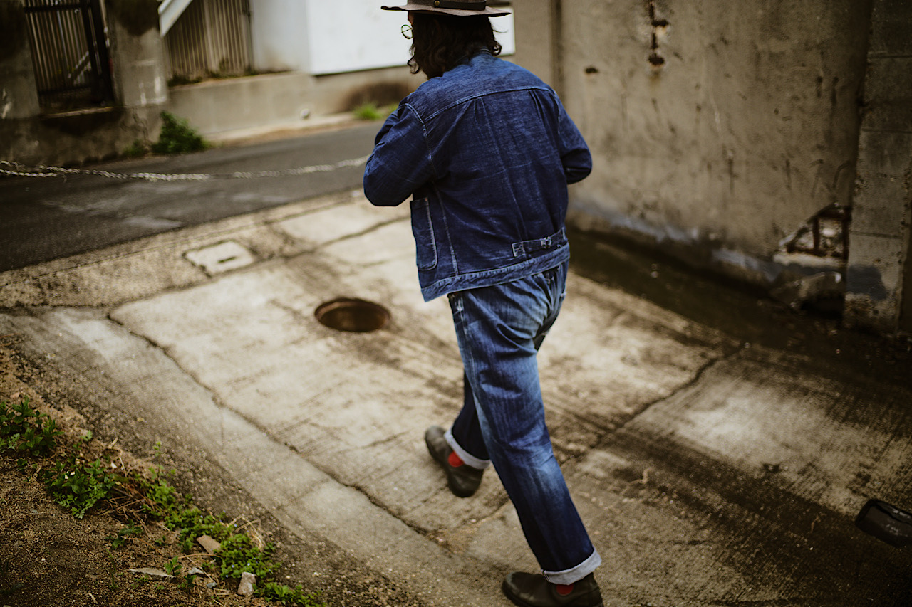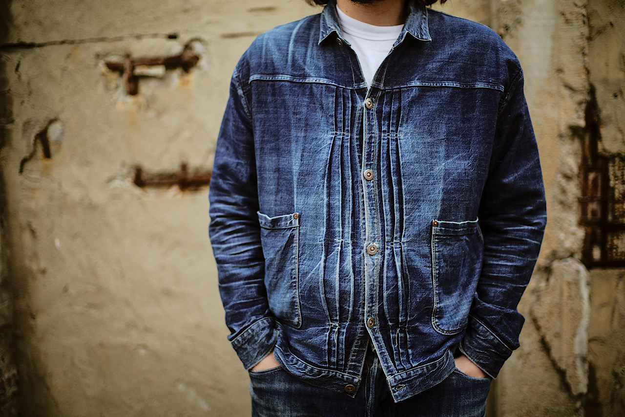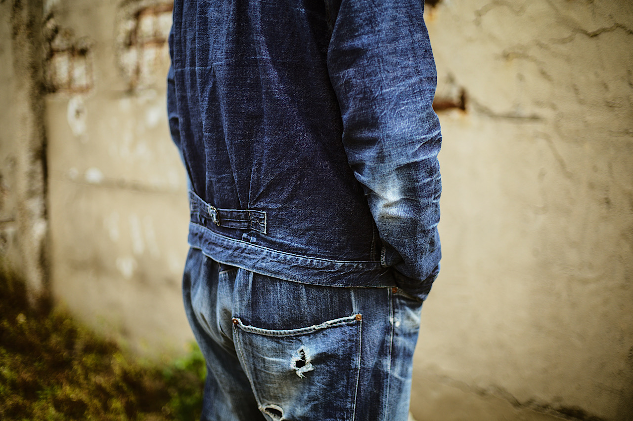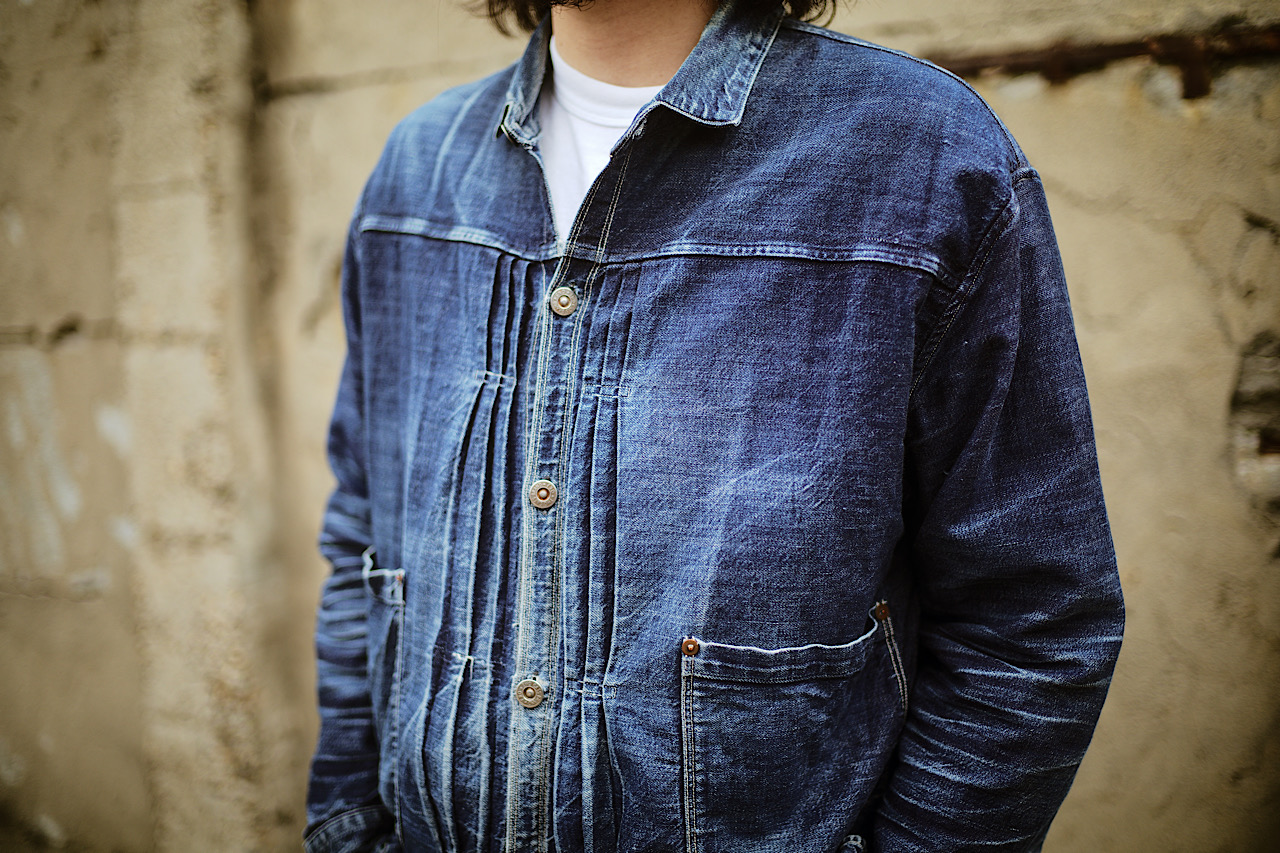 Today’s pictures are of our Pleated Blouse and Waist Overalls are dyed by pure indigo rope dye. Thanks to the coming Spring season, we have been receiving a lot of enquiries about this tux but these are discontinued because of the manufacturing matters and we don’t plan to produce them again.