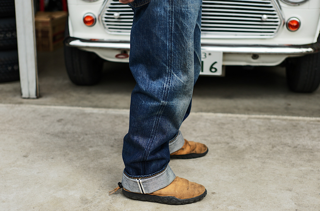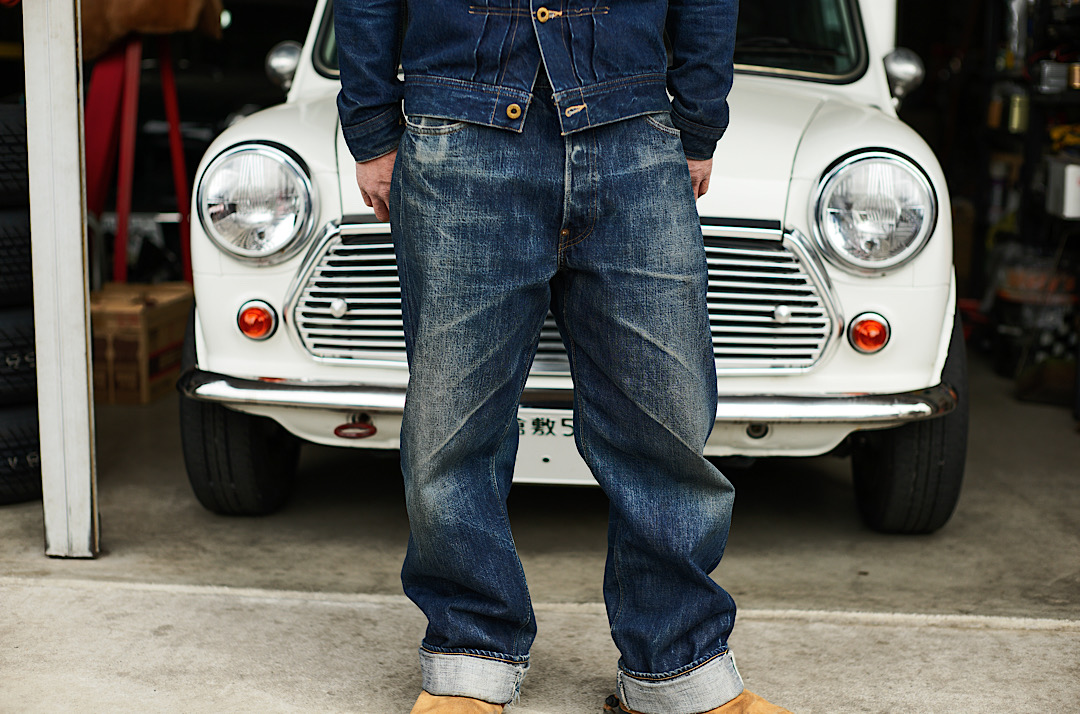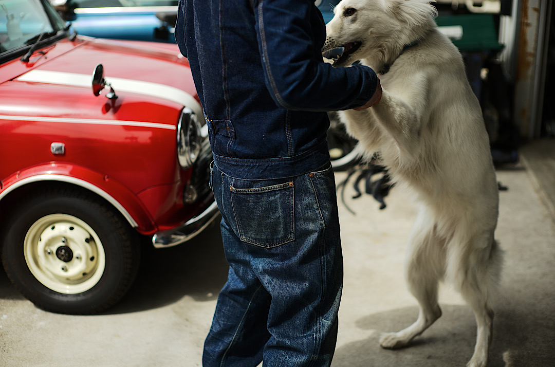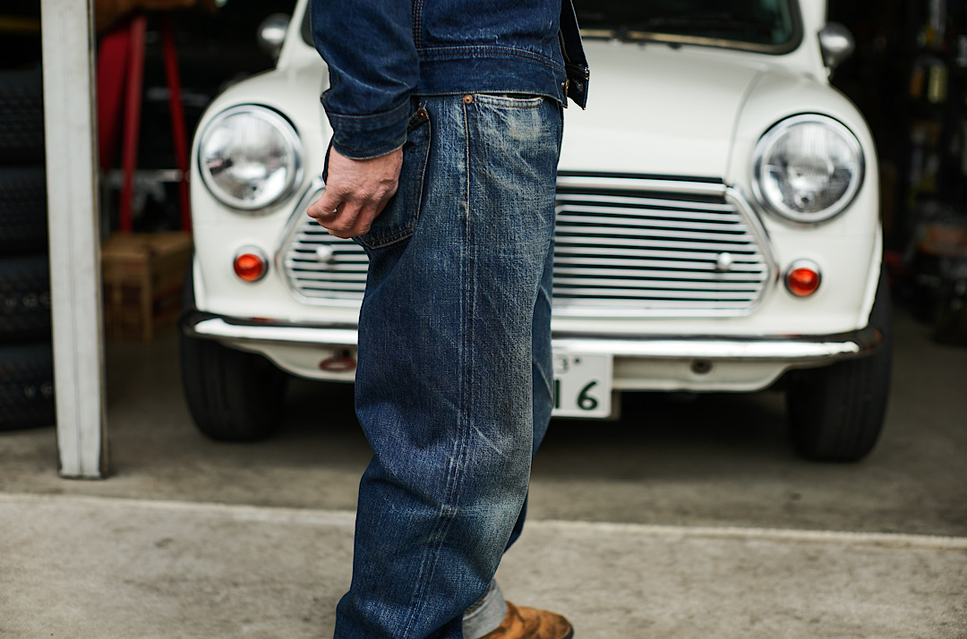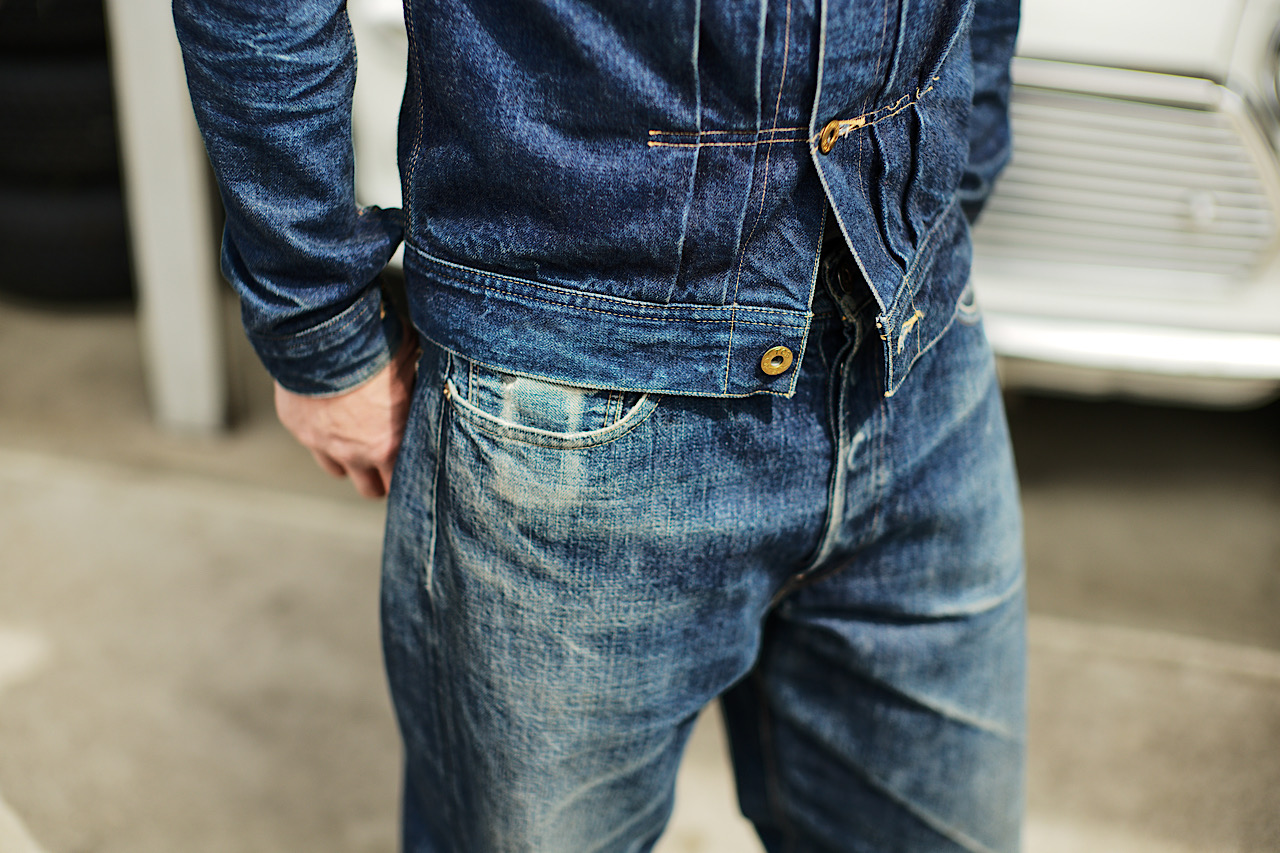 Kiriyama-san wears our Cat Boy Jacket & 20’s Jeans tux. We tend to recommend the tux made of the same fabric but there’s no rule about how you style! Different denim tux is of course cool!