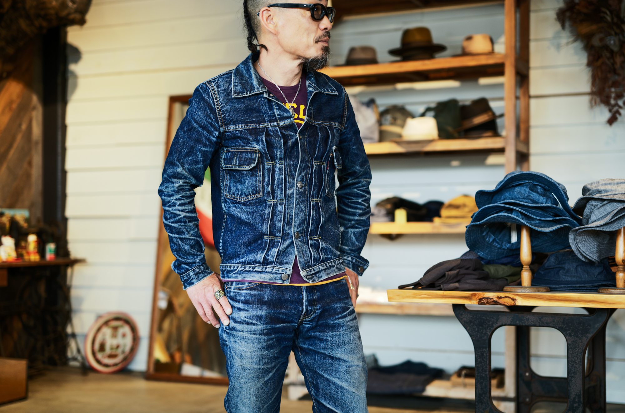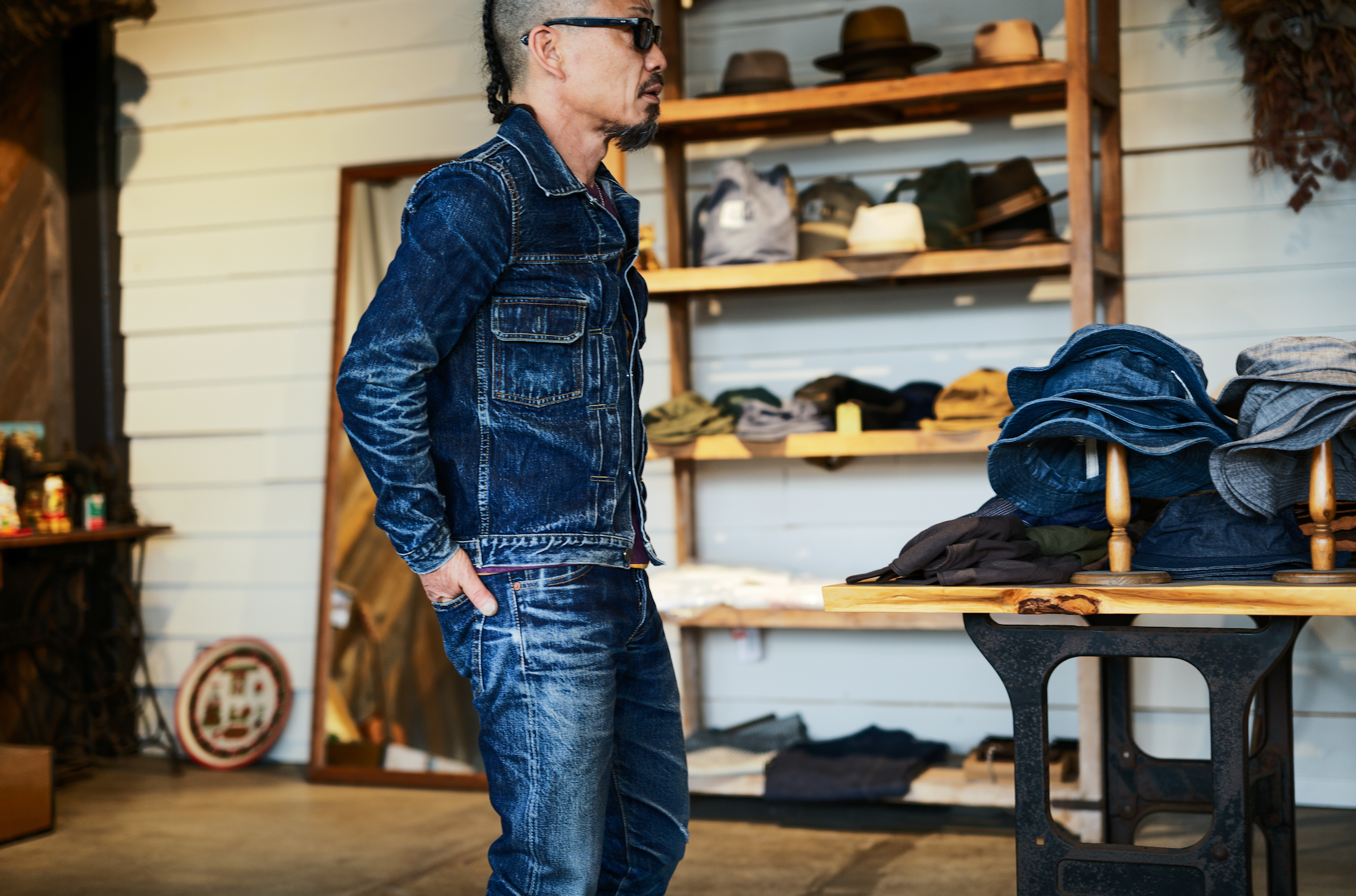 ヒゲの入り方が美しく、どうしても着用した写真も収めたかったので、オーナーに許可を得て、こちらで着画も撮らせて頂きました。
