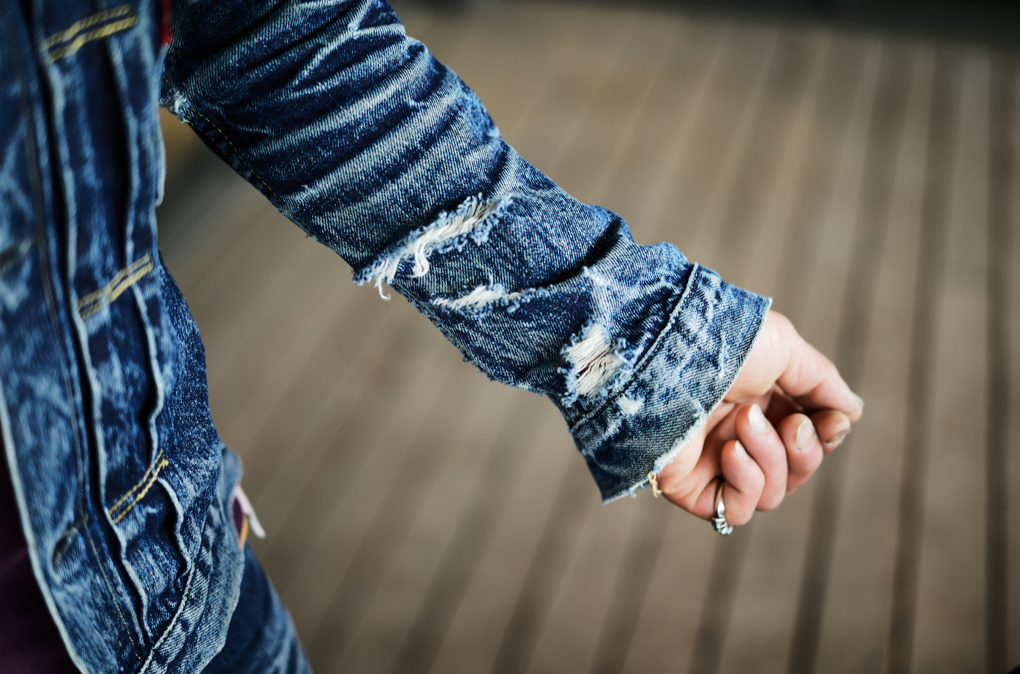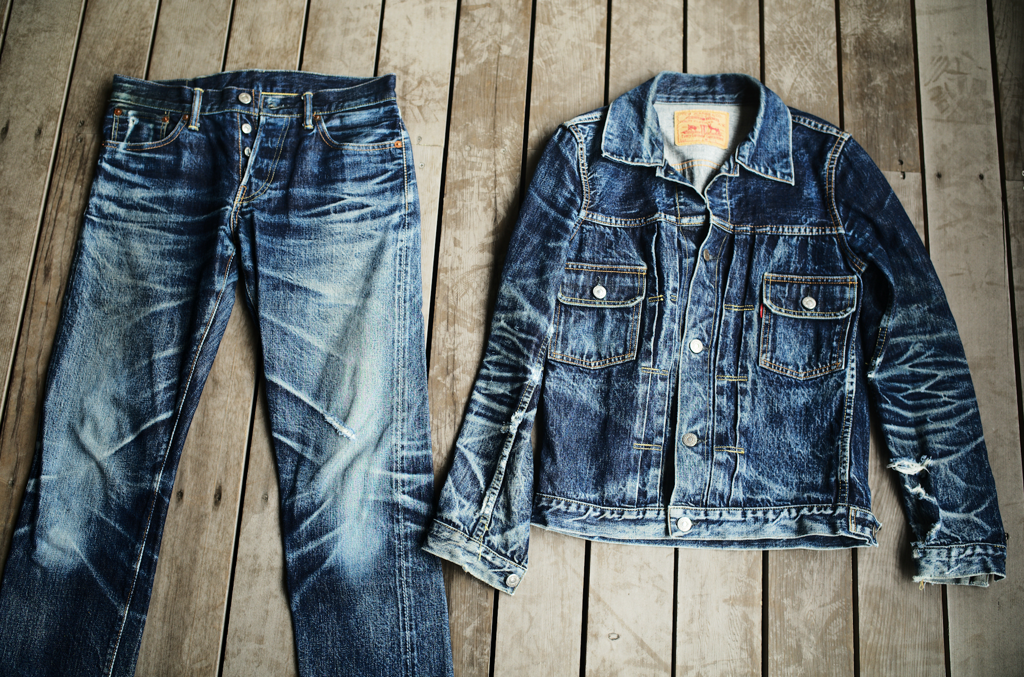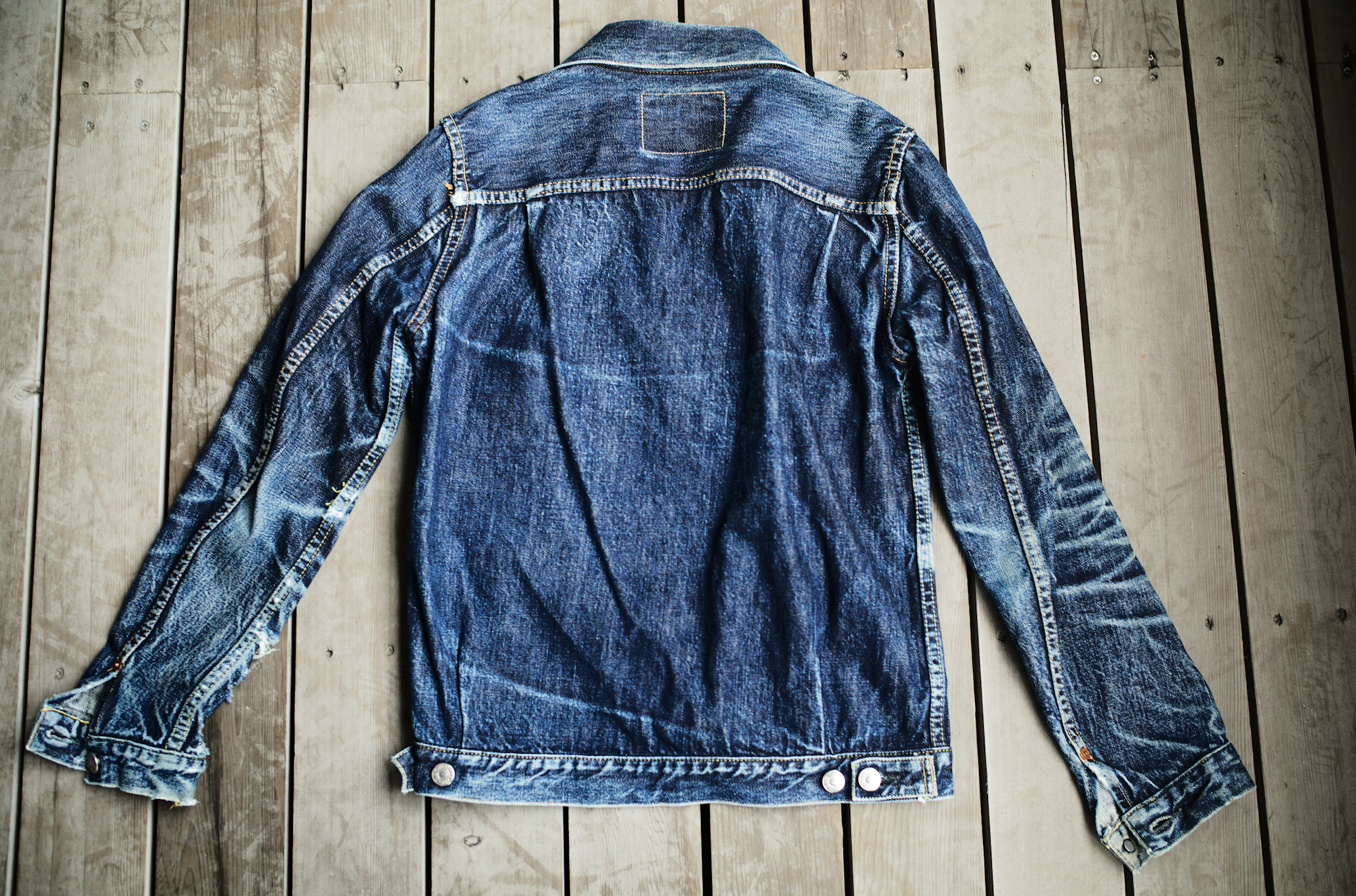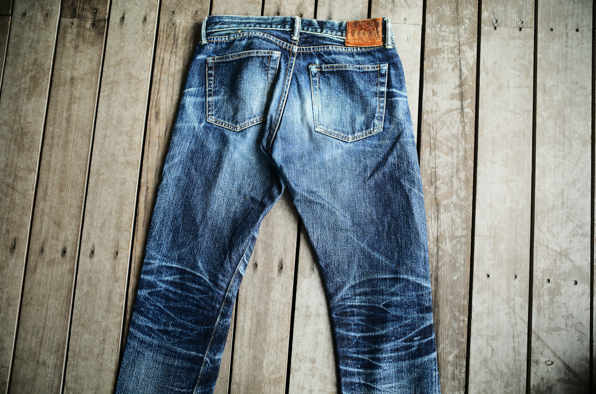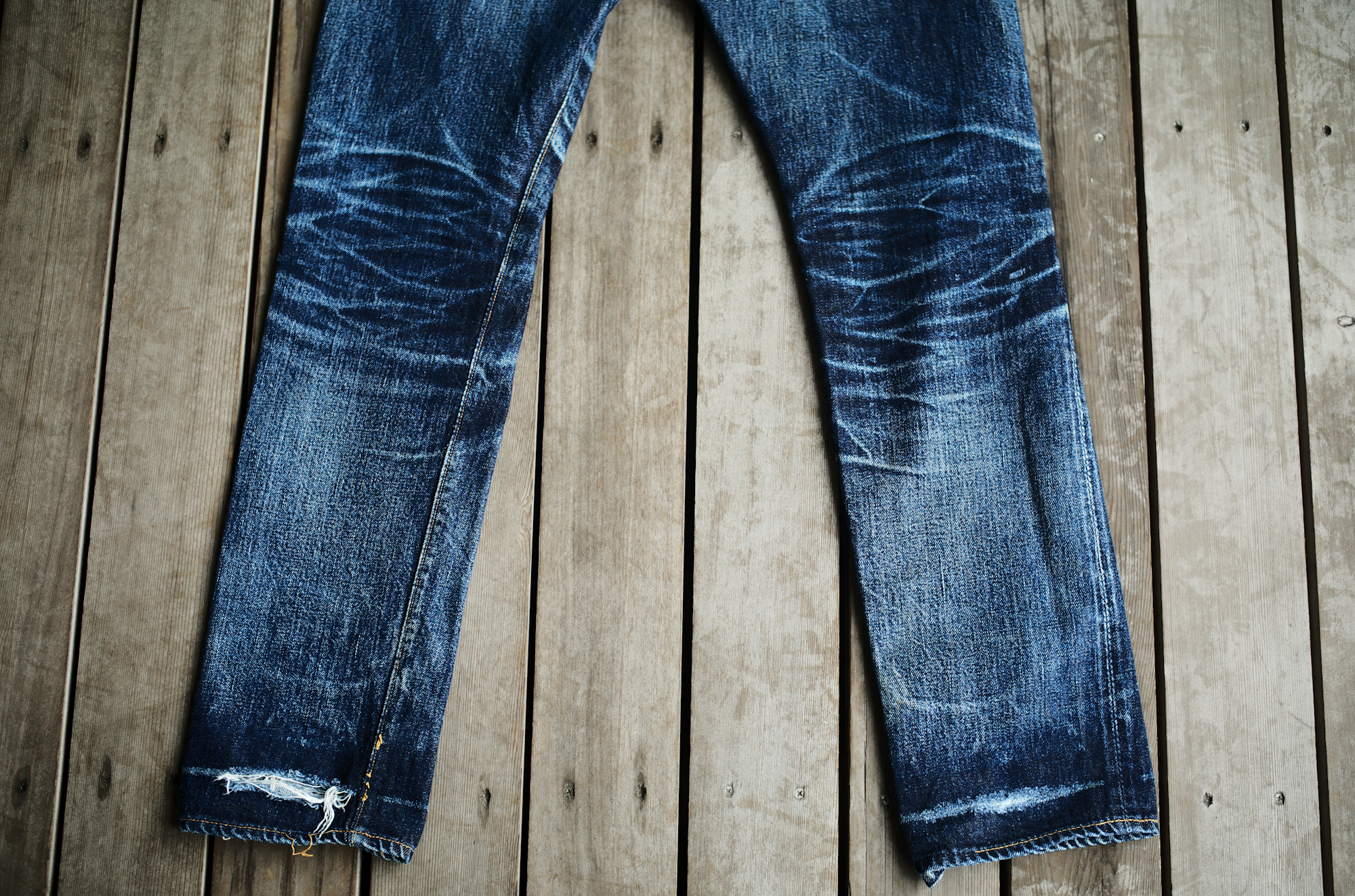私も何人か美容師の方が穿くジーンズは観て来ましたが、ブリーチ剤等の薬剤が散って、ペンキ汚しみたいになってる人も多いのですが、このジーンズは2年間、薬剤を掻い潜って来たのかもしれませんね。