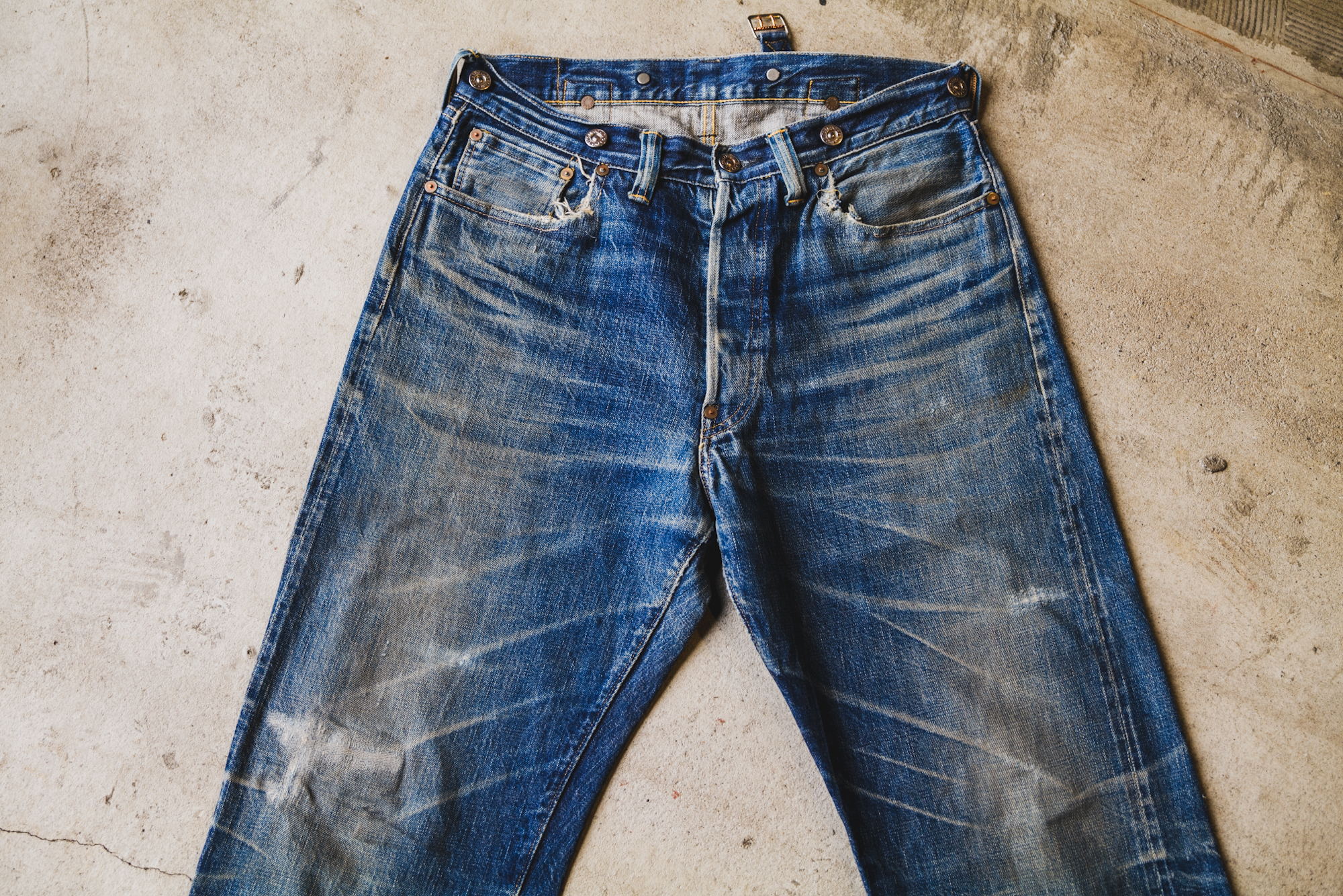 We borrowed the S40s jeans from the champion of 20s jeans contest. The guy works in an ironworks so the fades look super from working.