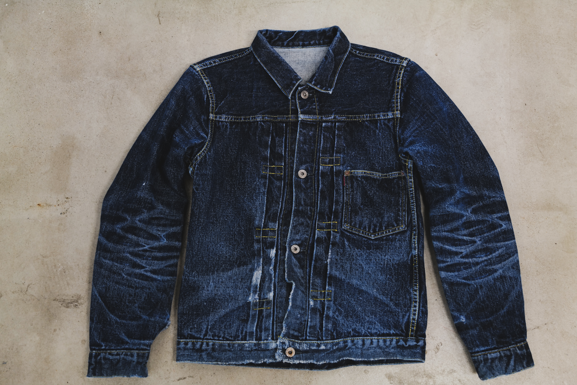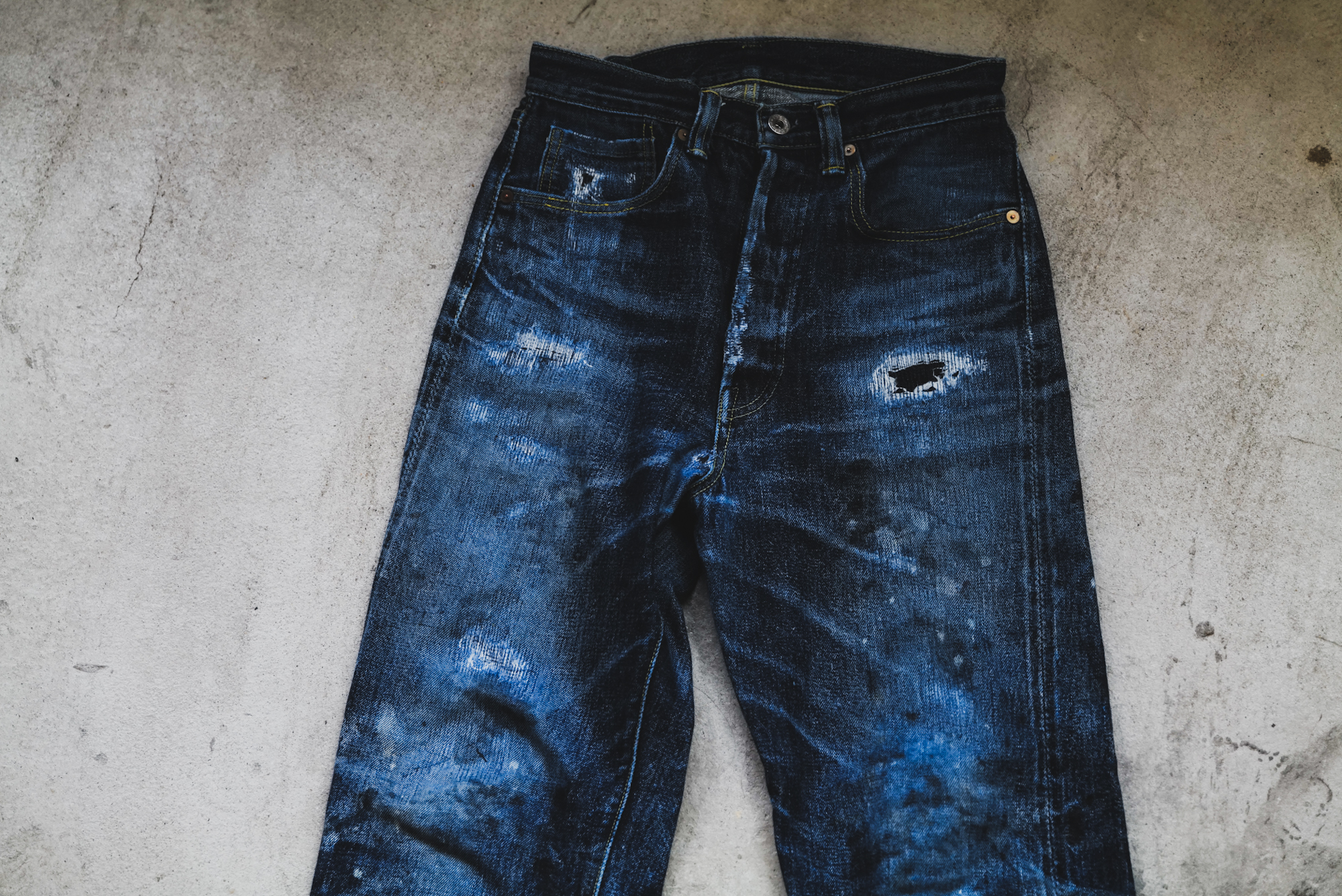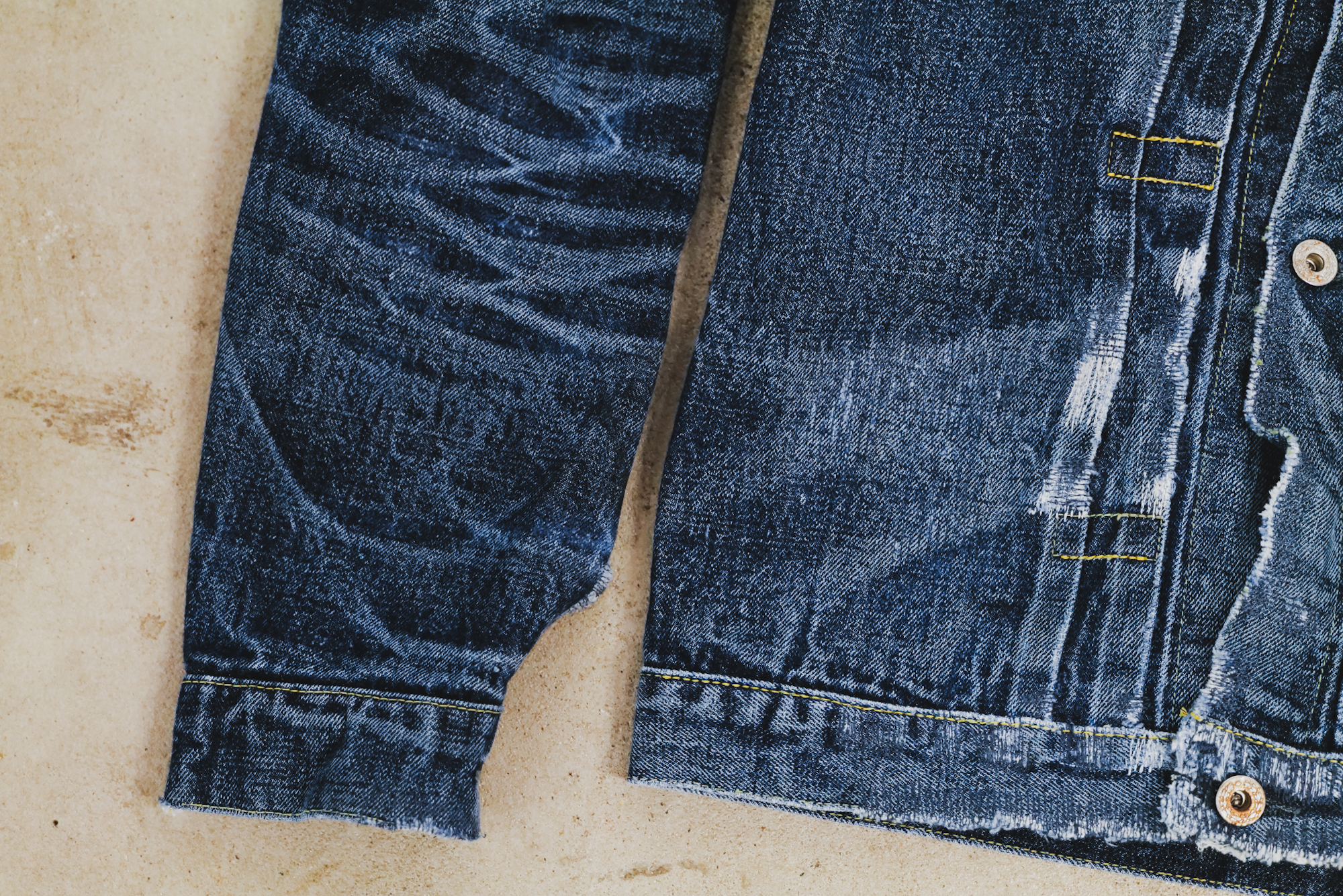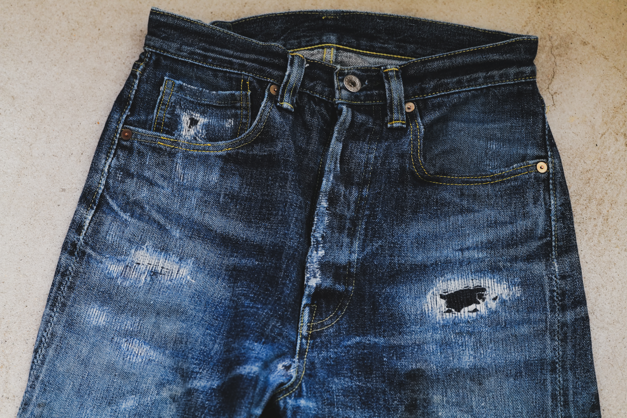 This is the fades from Shiga-kun who always help us wash our jeans. It seems he felt like repairing so we did it for him! I’m sure he will rip the jeans wherever possible from his hard work at the washing factory.