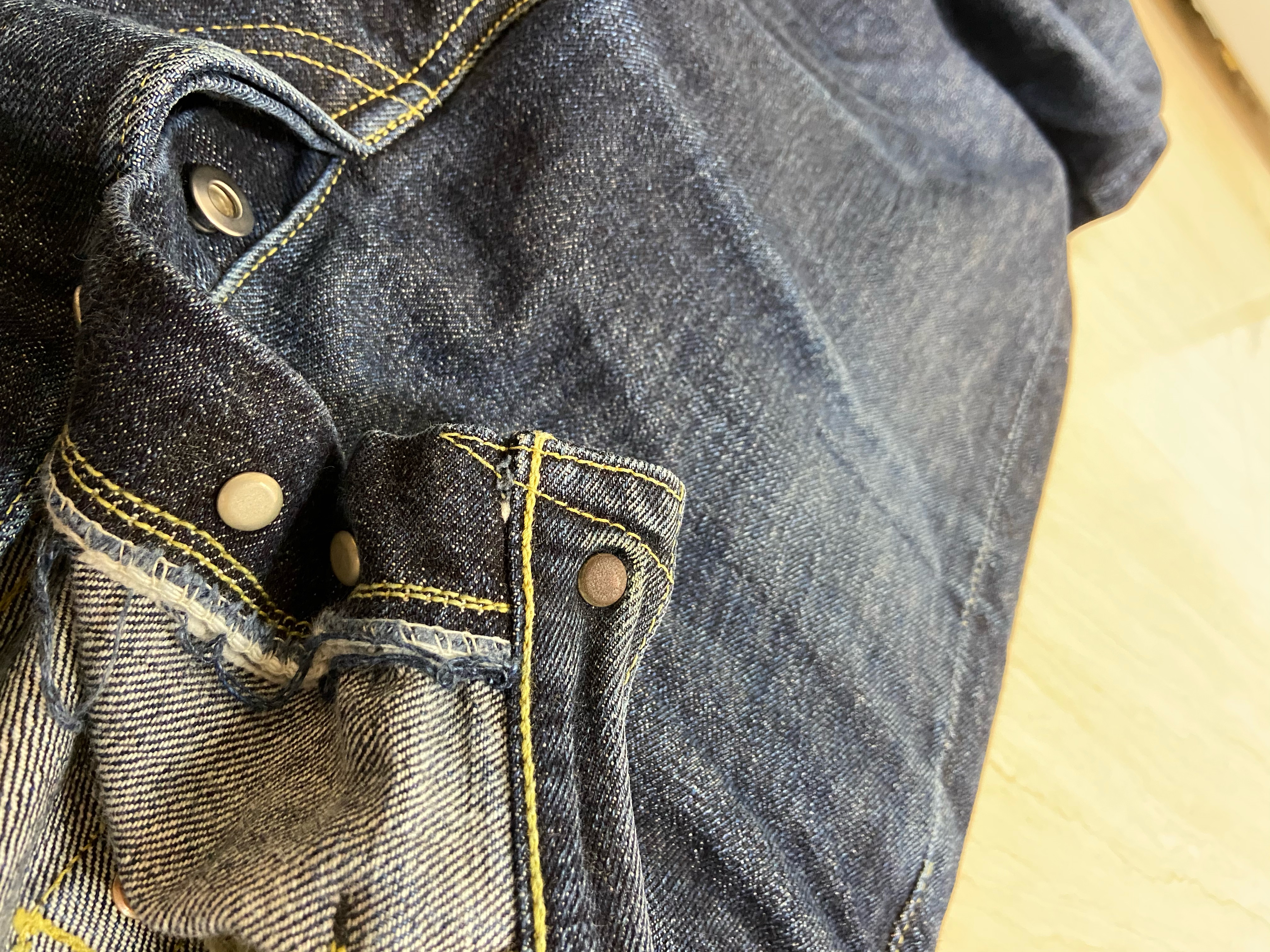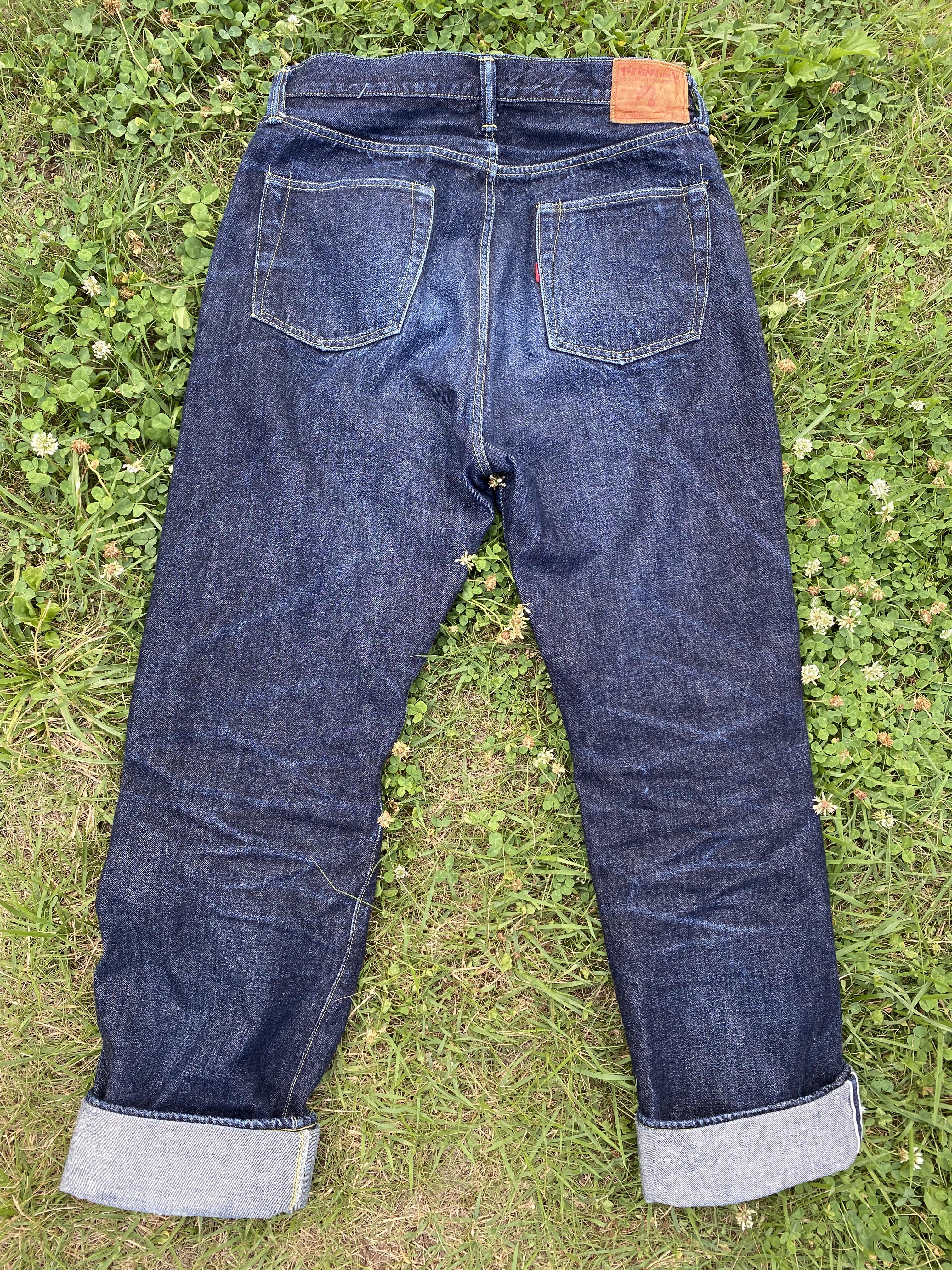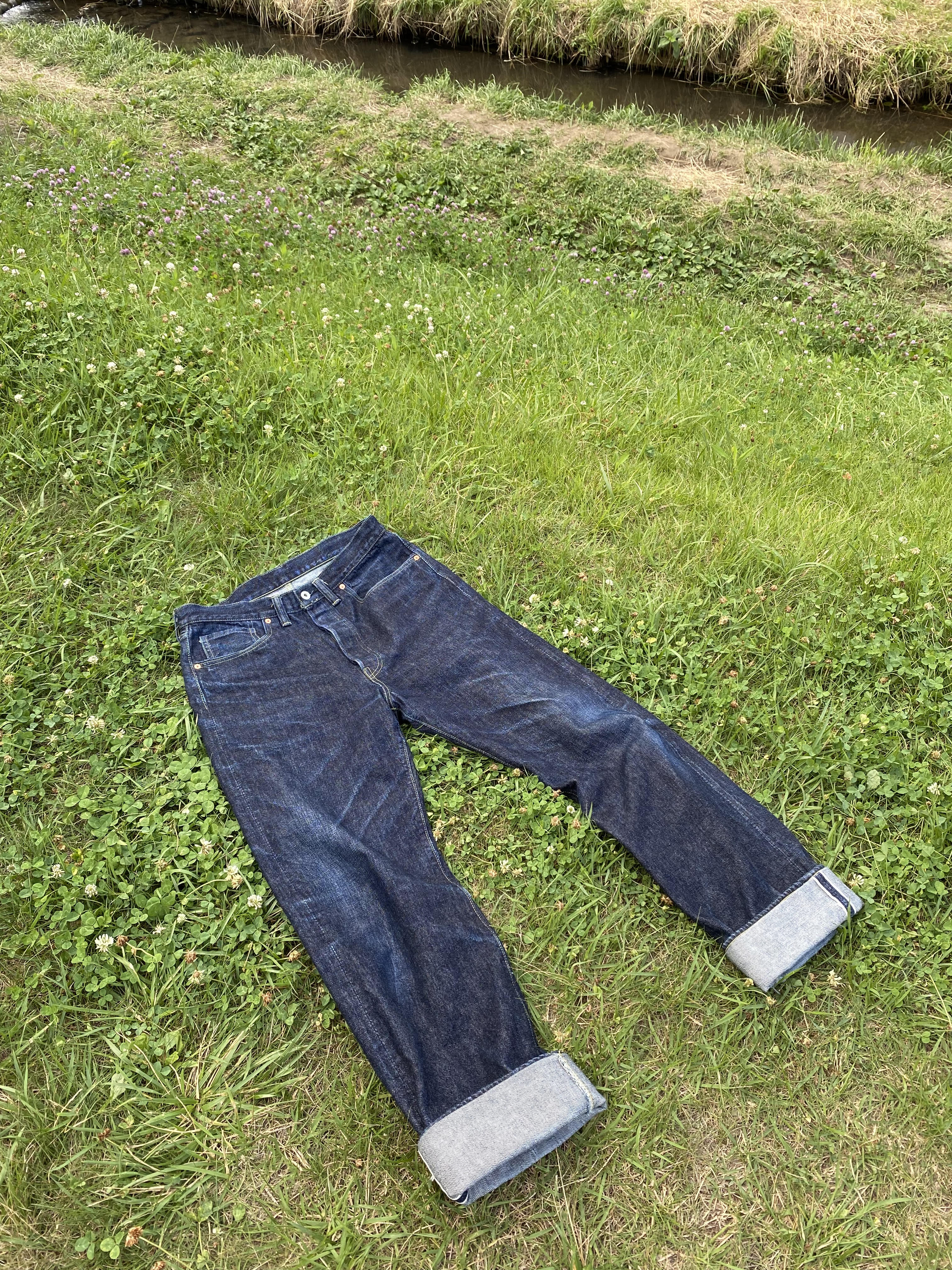 I wanted to have the wavy fades below the knees so I started to wear them with long inseam for me at first and recently have them hemmed with the production spirits from the World War 2 era. I chose 36 for my jacket and 36 for my jeans so the jeans is quite oversized so that I’d worn them above another jeans.
