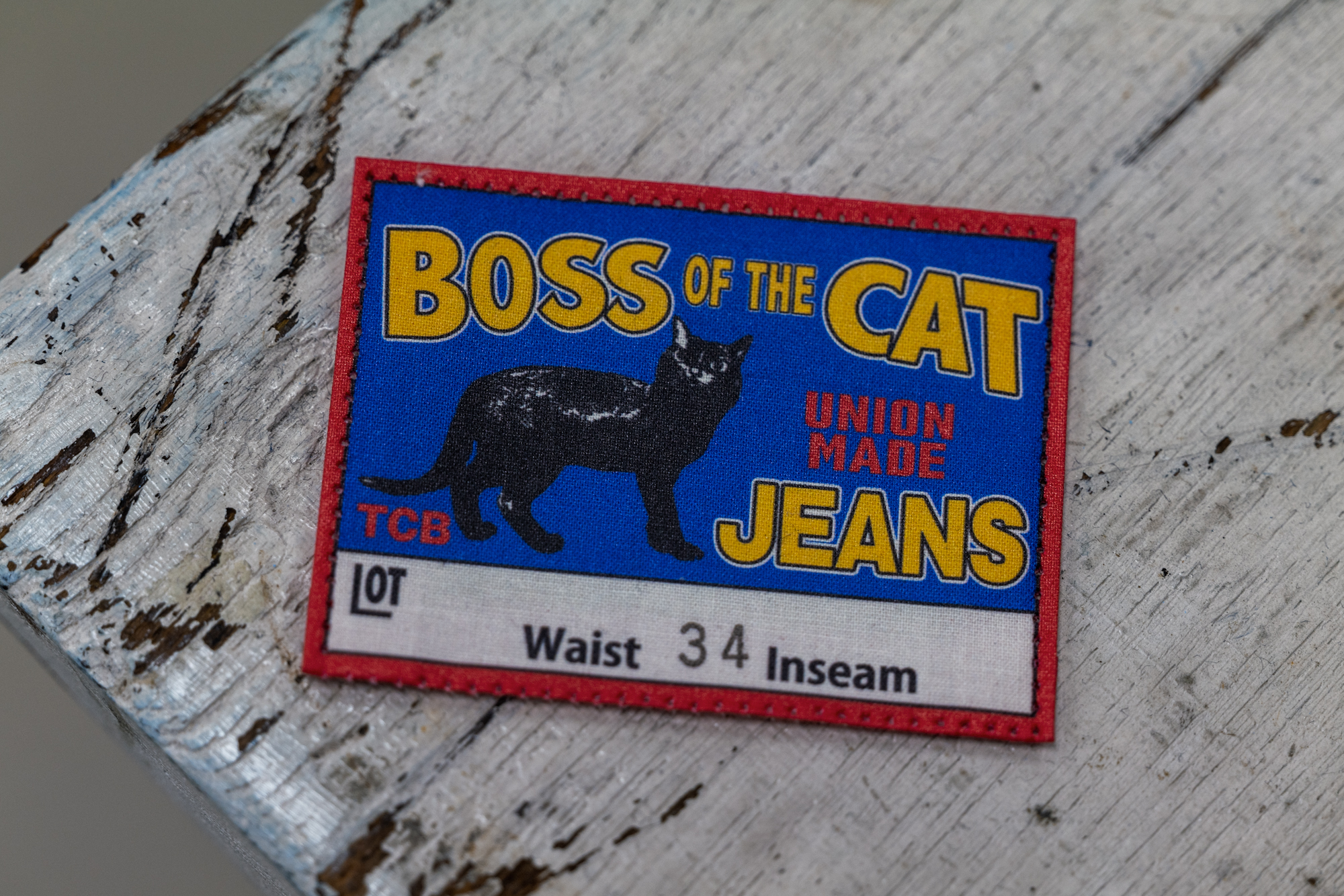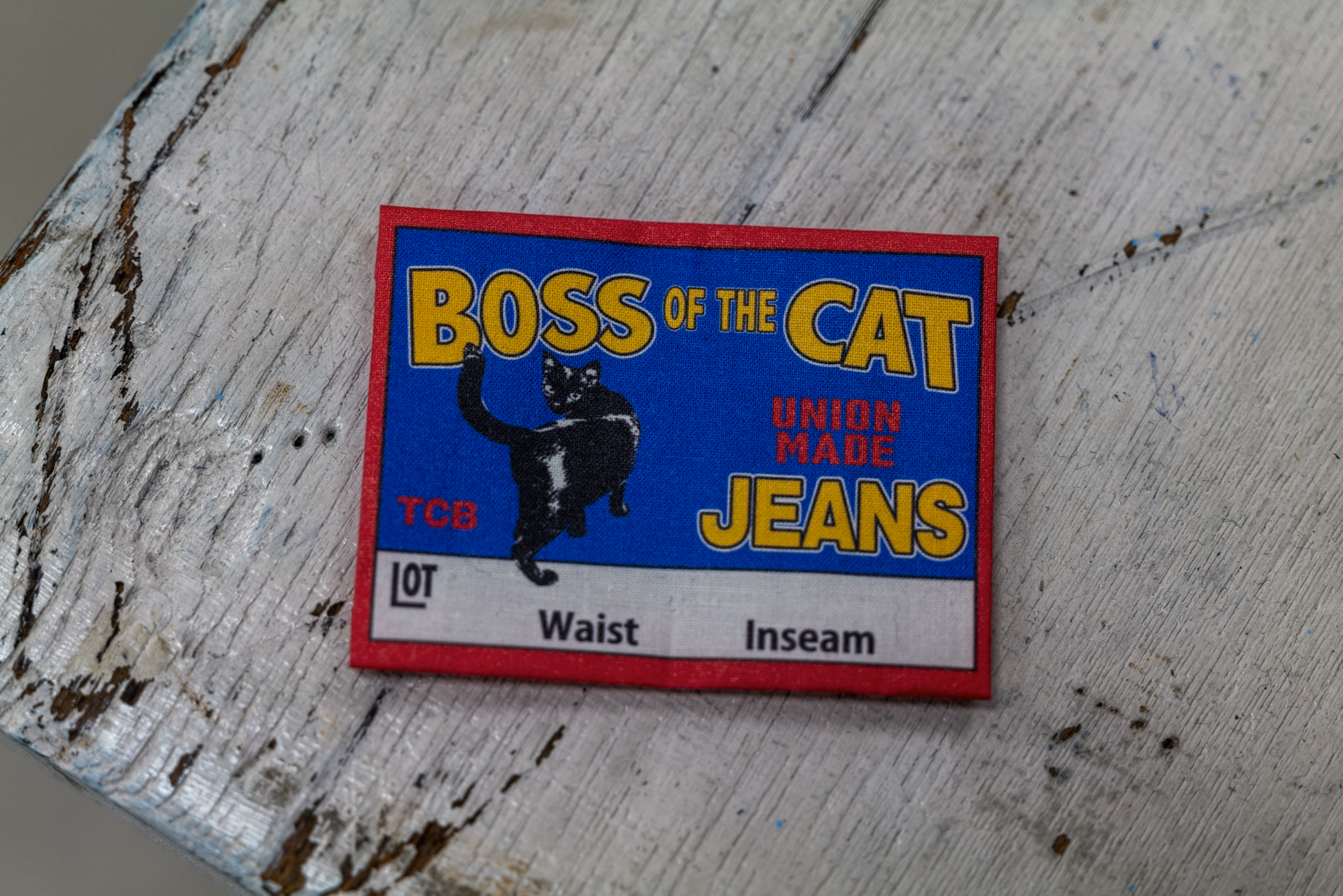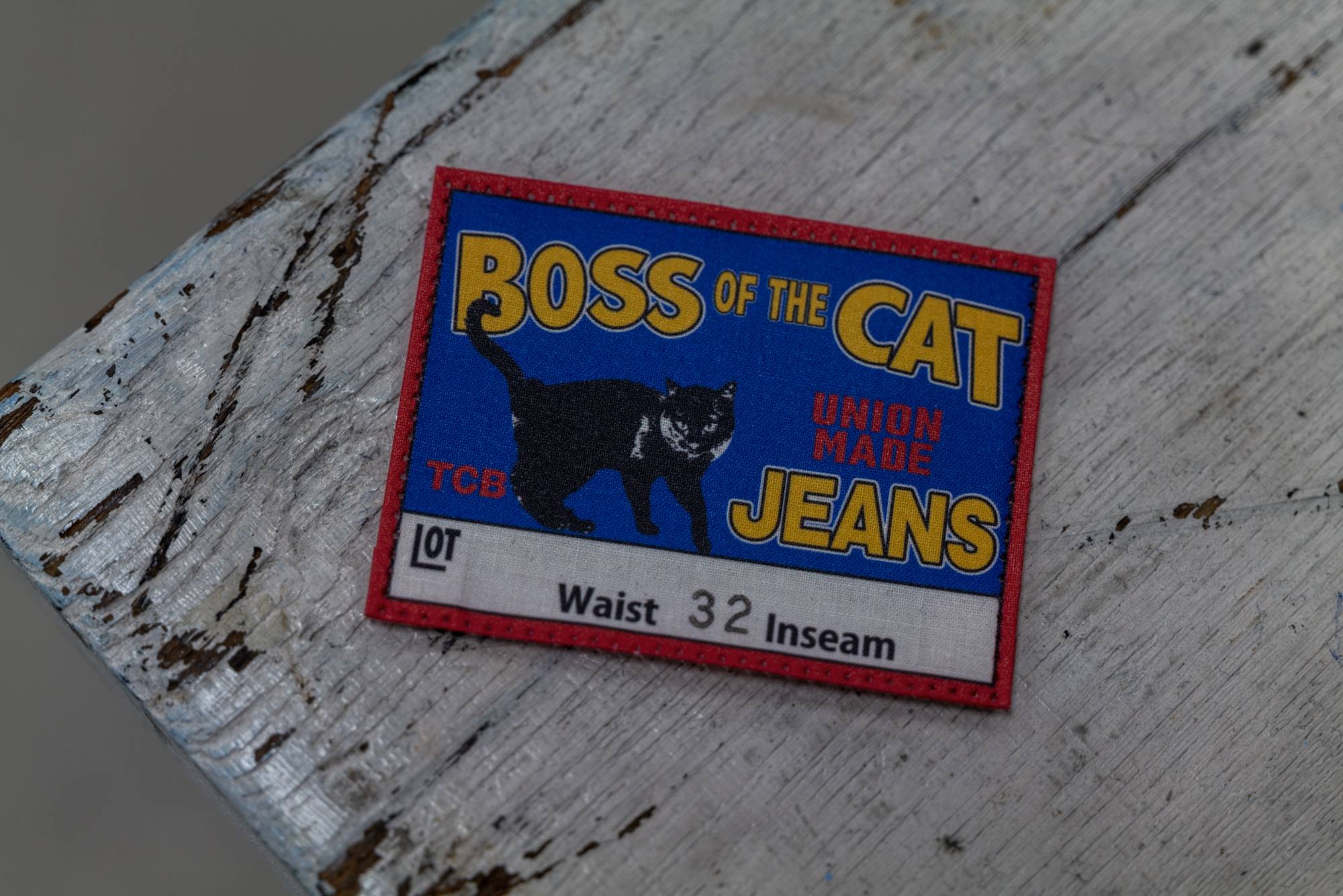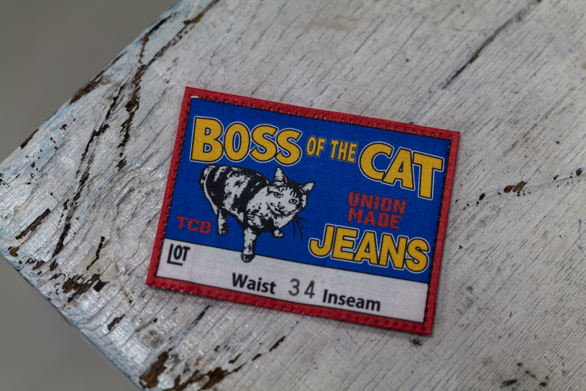 When it comes to designing a clothe or a tag for, you need to narrow down the designs to decide the final look, right? The vintage piece we referred to this time is the famous DOG-related brand so I immediately came up with the idea to replace the dog with TCB cat so I rummaged my HD to find good pictures of Tango and Tora, saying things like “oh this Tora’s angle is exactly the same as the vintage tag”, “Tango’s eyes are always half open in pictures.” So many good photos to choose from so I’ve decided to use 8 different designs for the new overall!