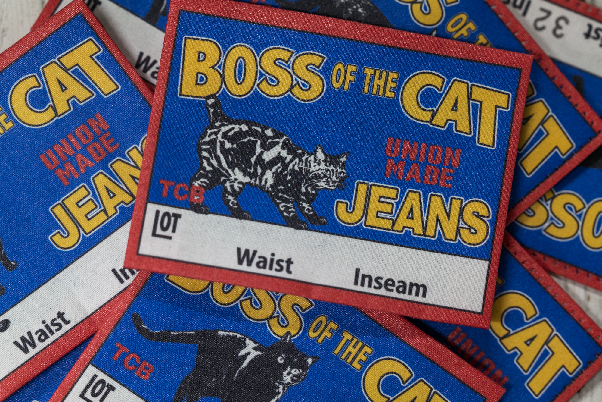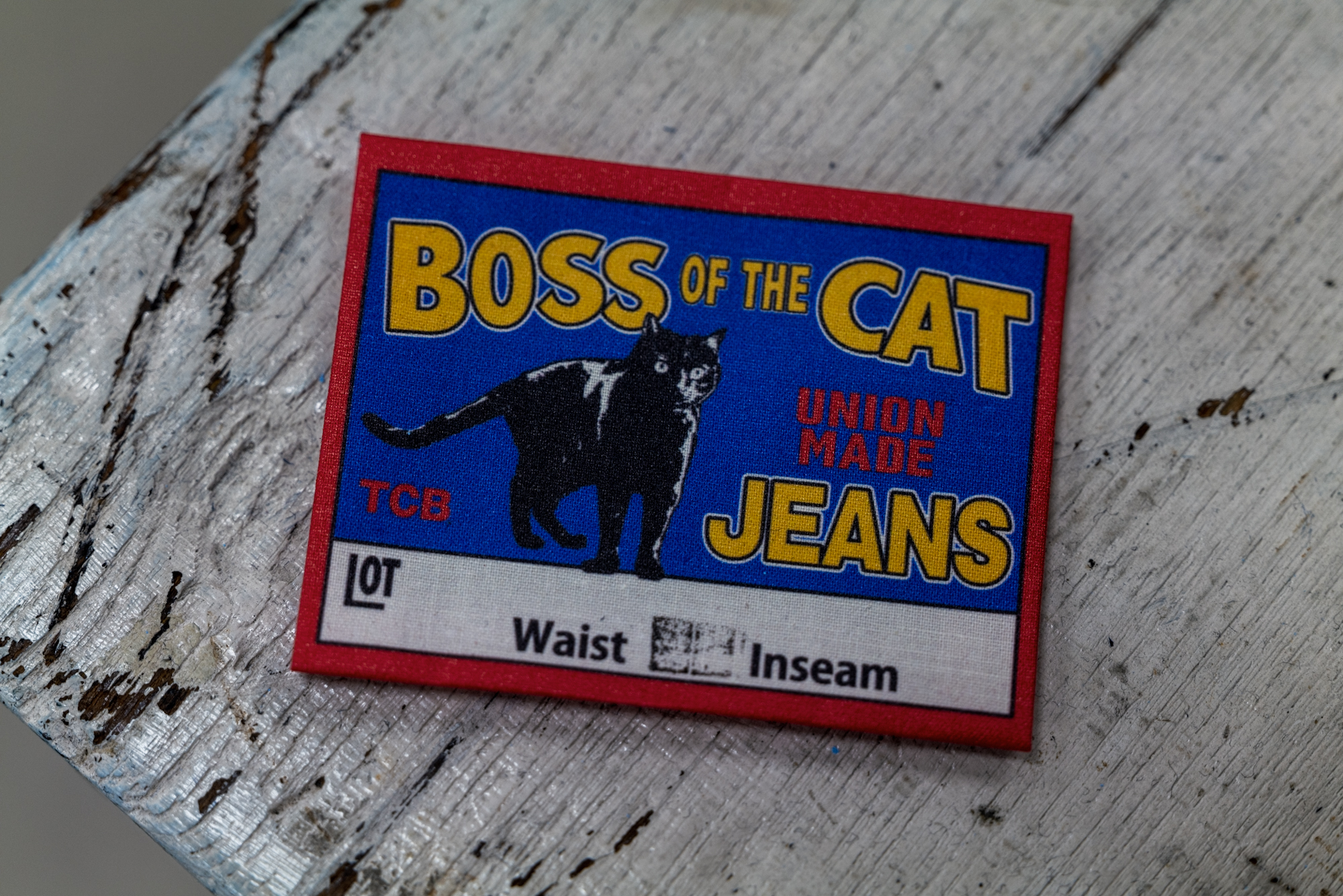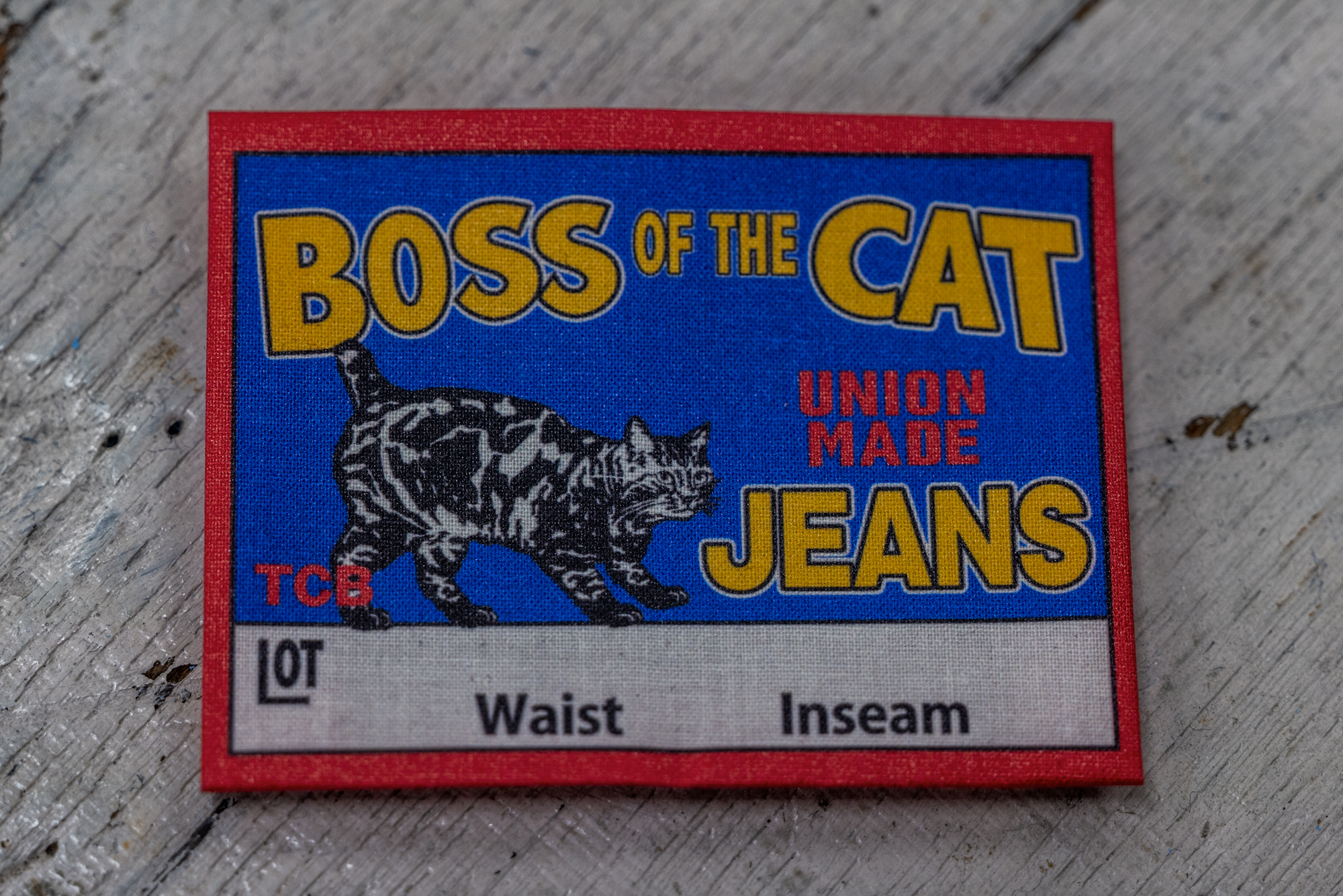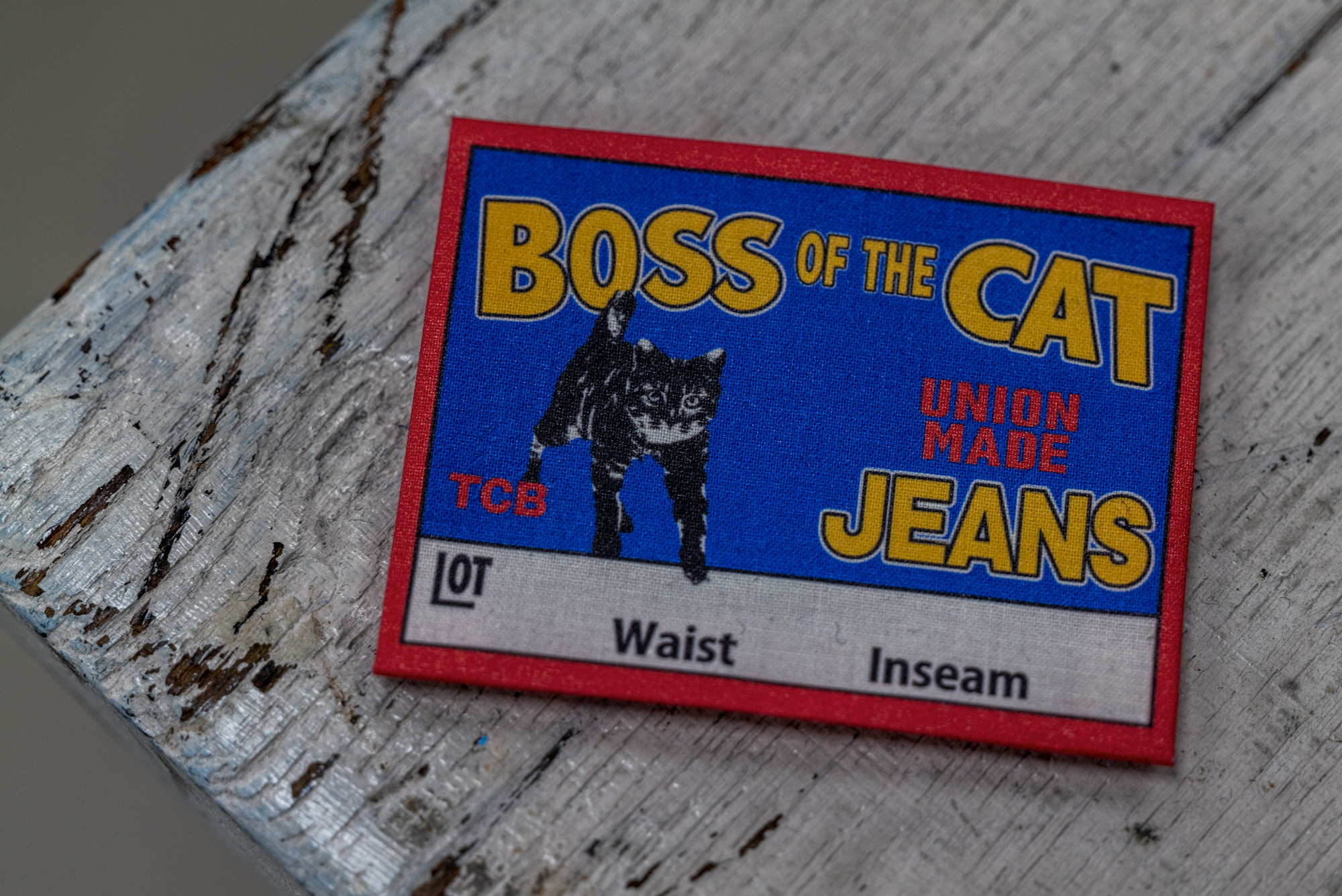 When it comes to designing a clothe or a tag for, you need to narrow down the designs to decide the final look, right? The vintage piece we referred to this time is the famous DOG-related brand so I immediately came up with the idea to replace the dog with TCB cat so I rummaged my HD to find good pictures of Tango and Tora, saying things like “oh this Tora’s angle is exactly the same as the vintage tag”, “Tango’s eyes are always half open in pictures.” So many good photos to choose from so I’ve decided to use 8 different designs for the new overall!