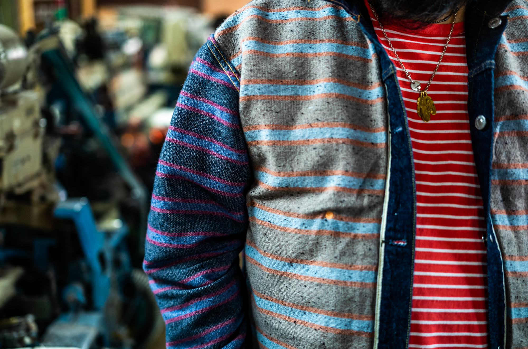 In Bisyu Ichinomiya where the wool weaving industry is centered in Japan, there are some companies who collect used wool fabrics and assort them based on the color of the fabric and then make recycled wool cotton. But it seems this is so common for the people in the industry that they think it’s just too standard to talk about. The process is called Hanmou/reclaiming wool. Strictly speaking, some virgin wools are added to enhance the durability of fabric and to balance the color. I guess people used to use these reclaimed wool because they wanted to cut the cost too. But I’m sure this is why the wool blanket on vintage garments are mostly stripe pattern.