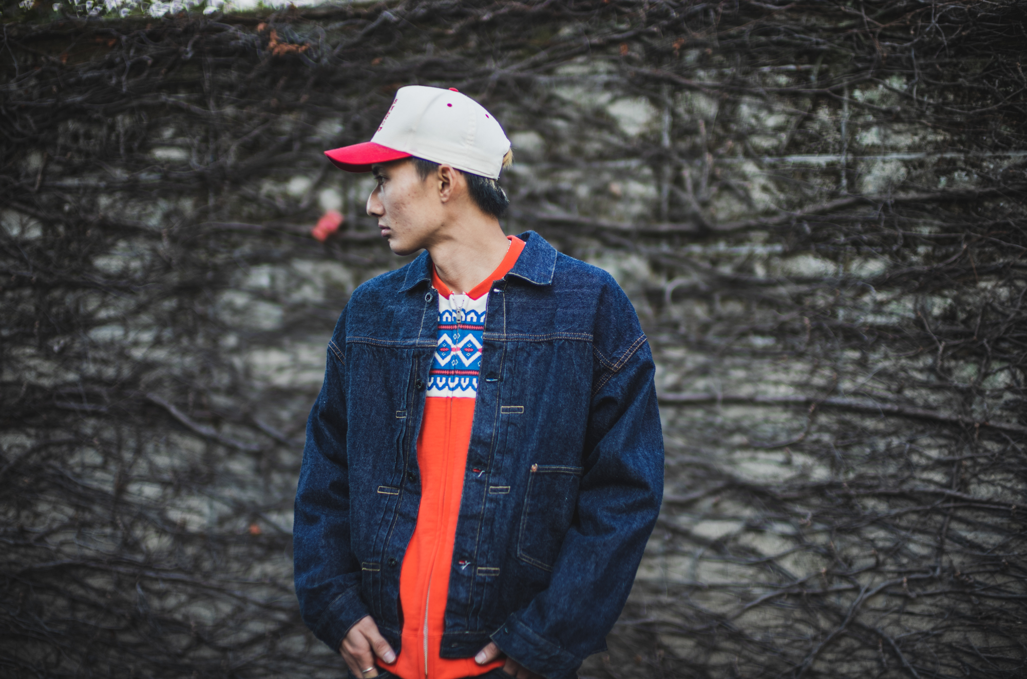 Layering this snow zip sweater with a denim jacket, nice!