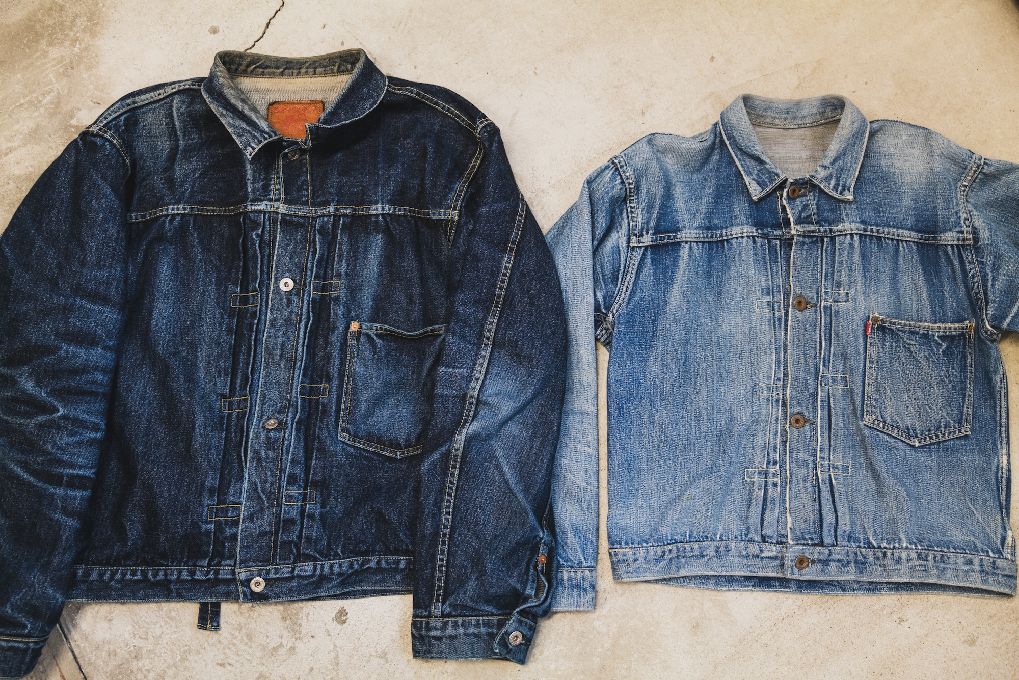 制作時Vintageの大戦モデルを見ながら新品の色を想像して、その新品の生地が色落ちた時Vintageに近くなってくるのか?っていう文章にすると凄い複雑。