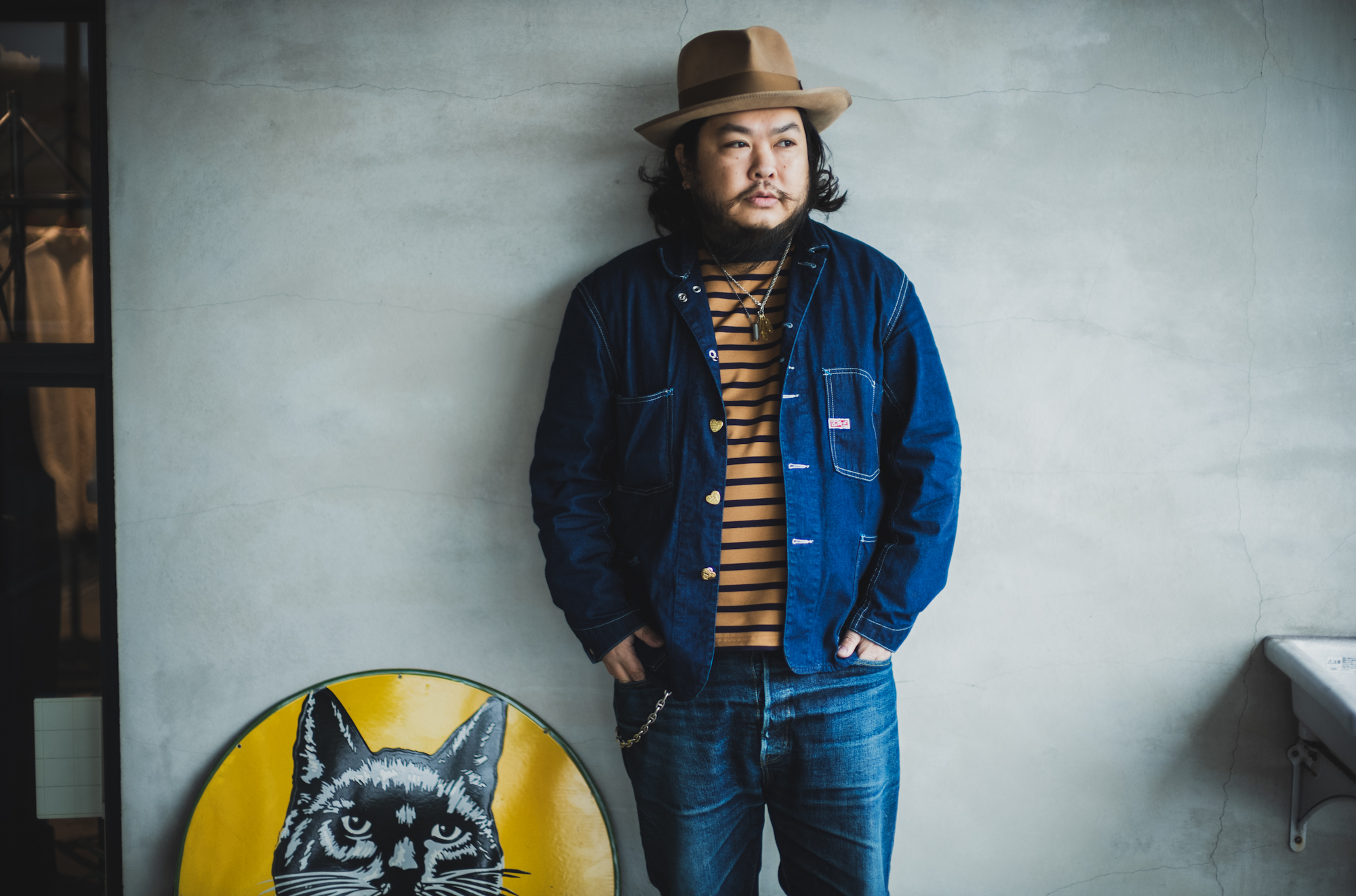 You guys might wonder how the hell do these two get along but there is only one thing common between me and him: We love cats. I have two cats but Mr. Tateno now lives with 8 big cats. He was recently saying that he would release a new jacket and the inspiration for the jacket actually came from his 8 big cats. Long story already too long but it’s TCB’s 10th anniversary this year so we are going to do our first collab with Workers.