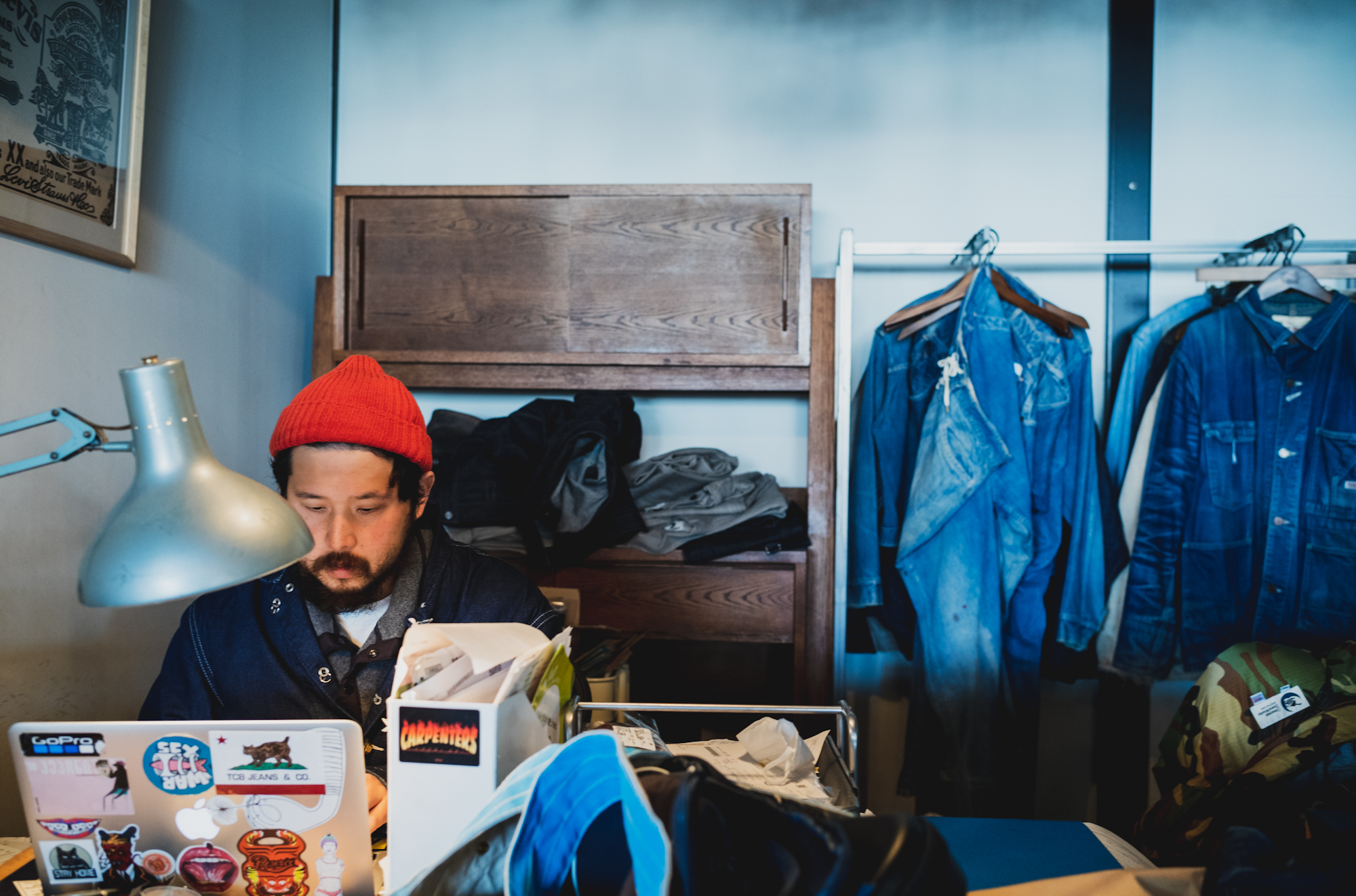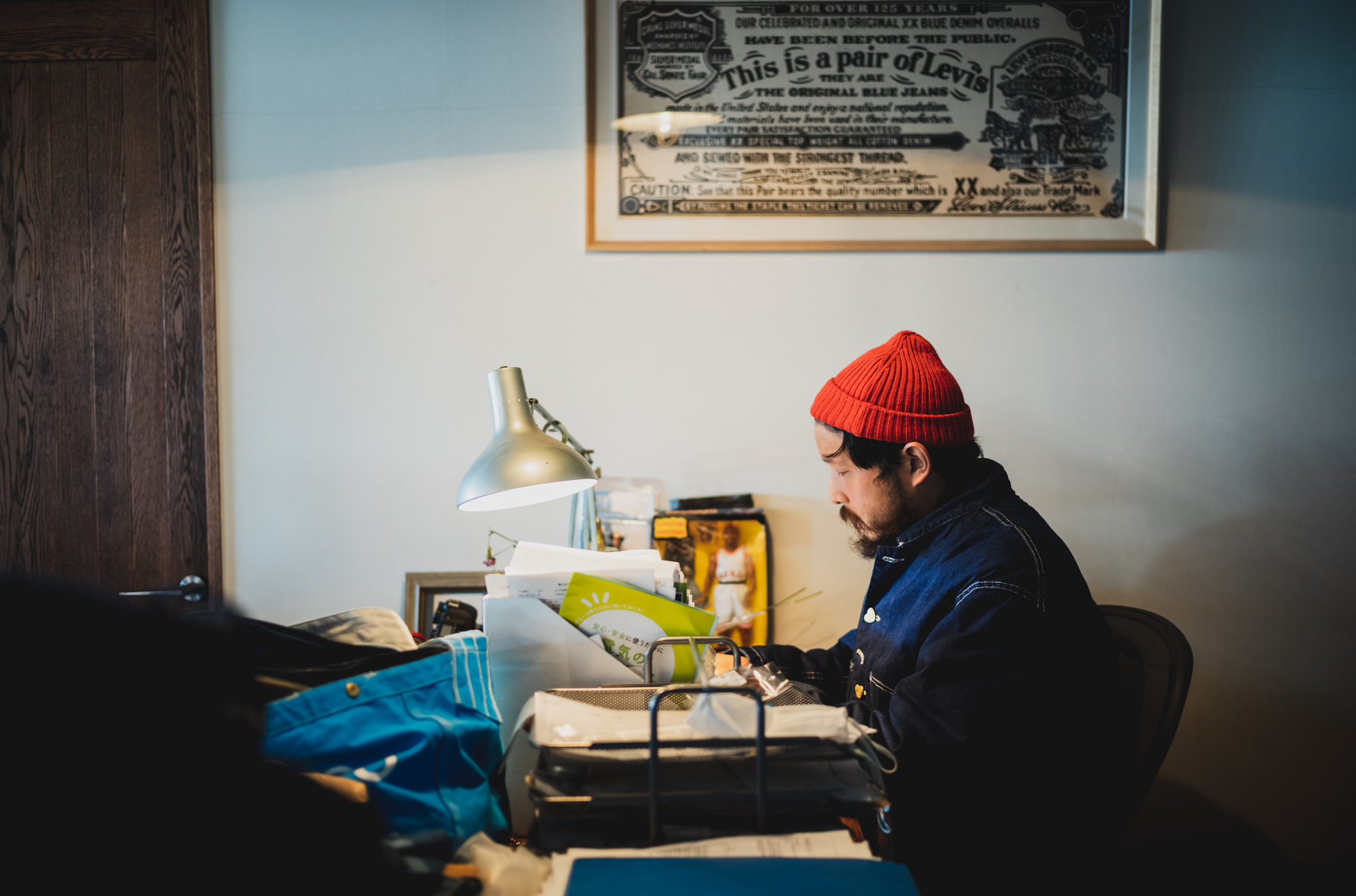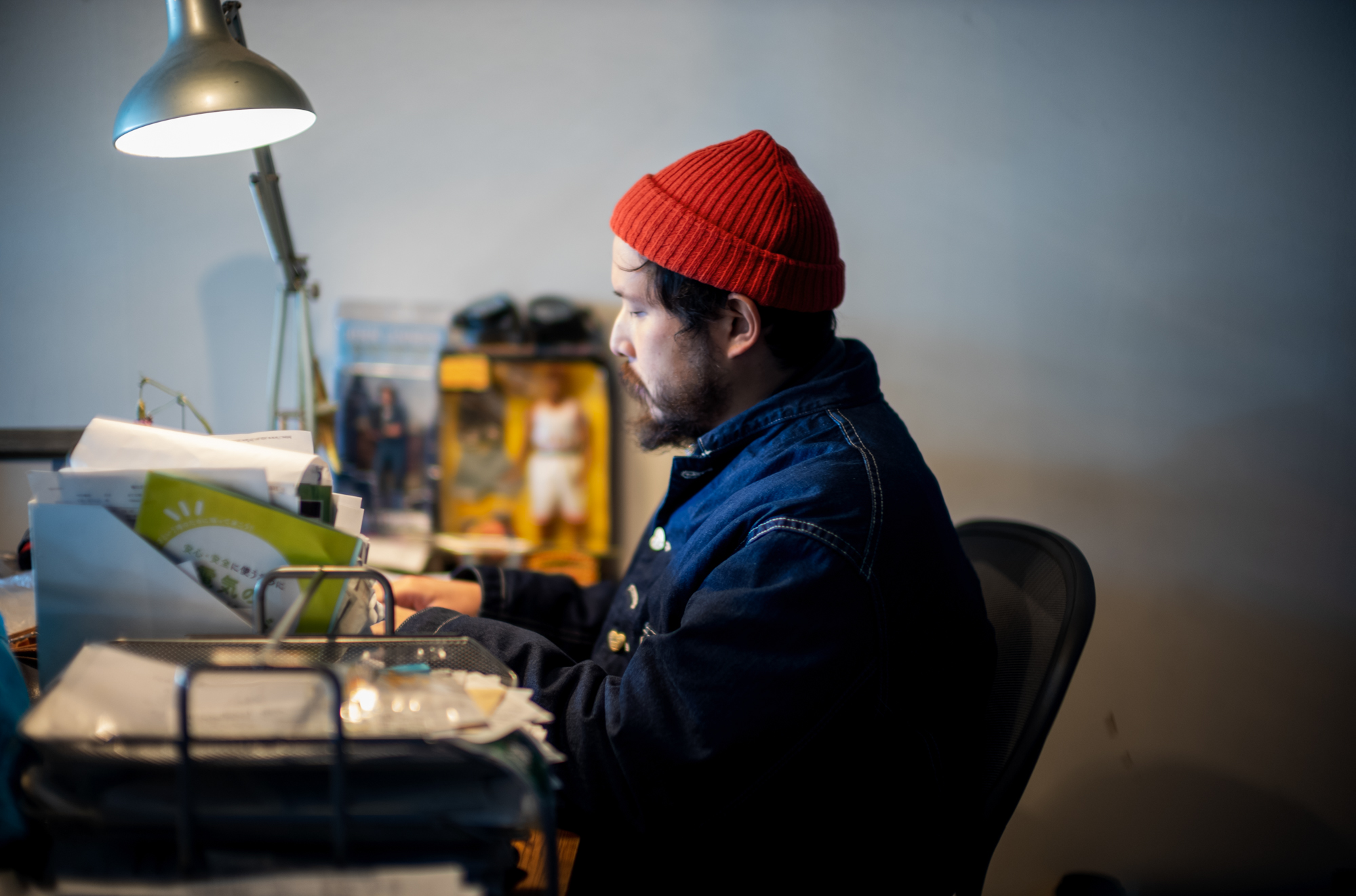 On the 2nd floor, we have Ryo’s working place. Under the light of the Pixar table light, he is working as a bridge between Japan and the rest of the world (he might be putting a serious face while checking Tinder). He brings whatever he likes to the office to decorate so his place is always scattered with clothings, shoes, skateboards, etc. But I think he is working properly since his heroes of all time, Dennis Rodman & John Lennon (figures) are watching his work!