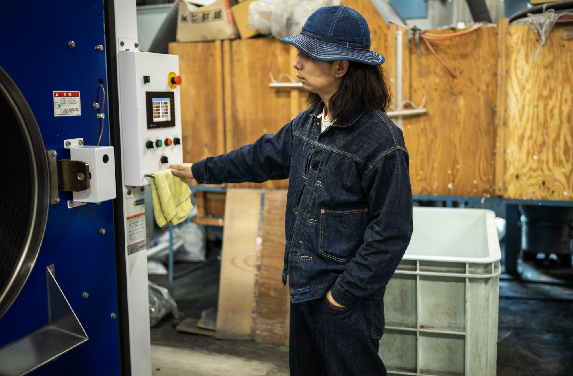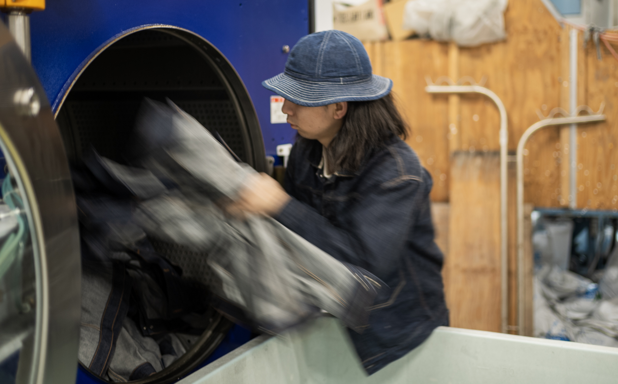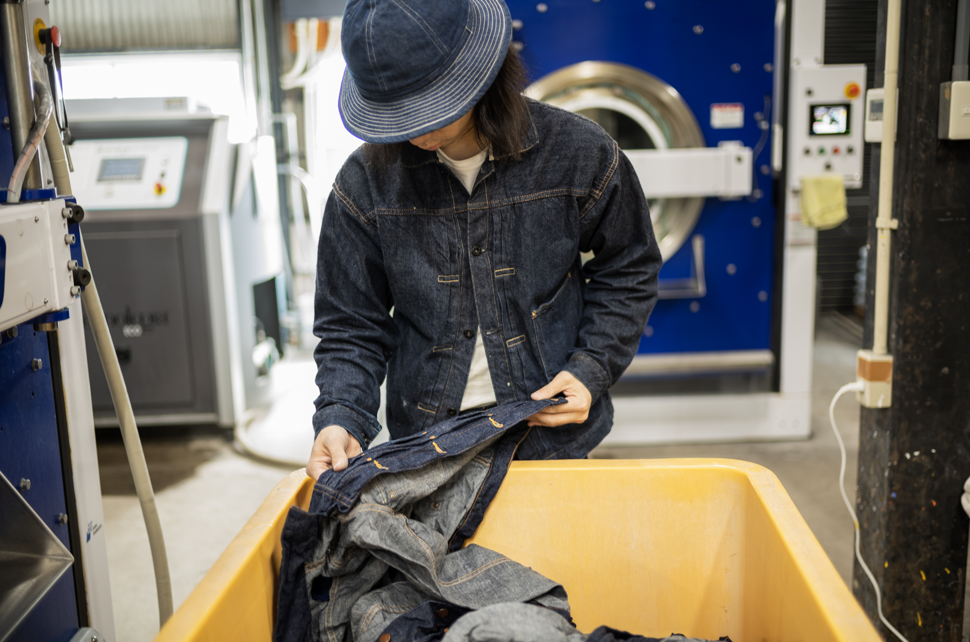 After the sewing, we bring the raw denims you the washing factories where Shiga kun works. It’s our partnered factory for washing but there are some guys working there that love and wear our jeans, which is very pleasant for me.