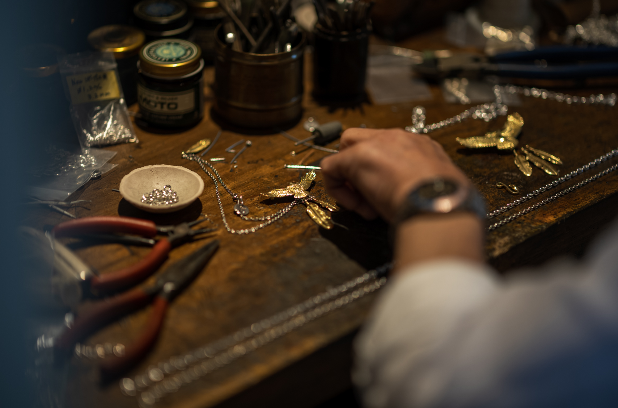 目の前でお客さんのジュエリーを調整したり仕上げたりされてて