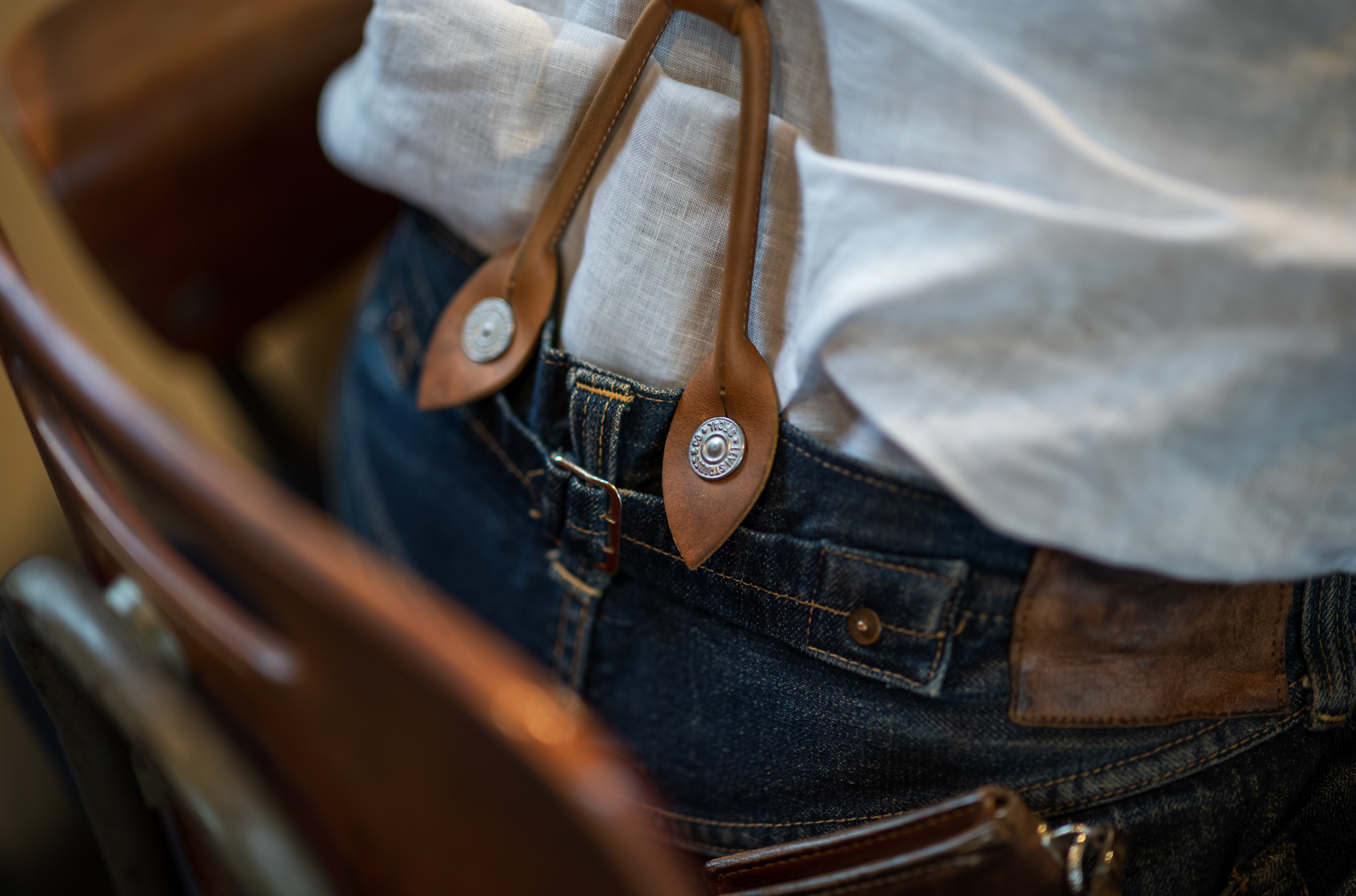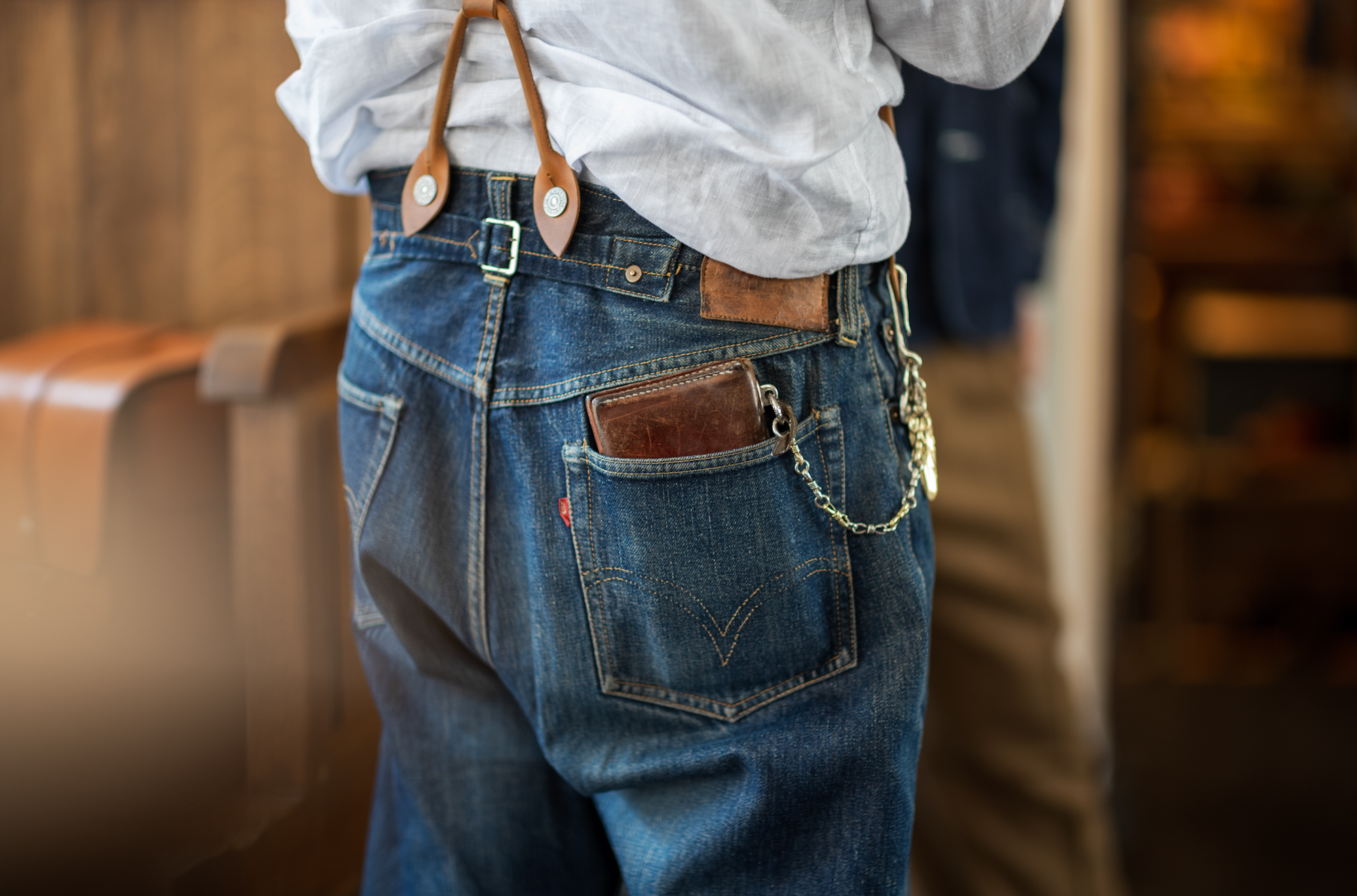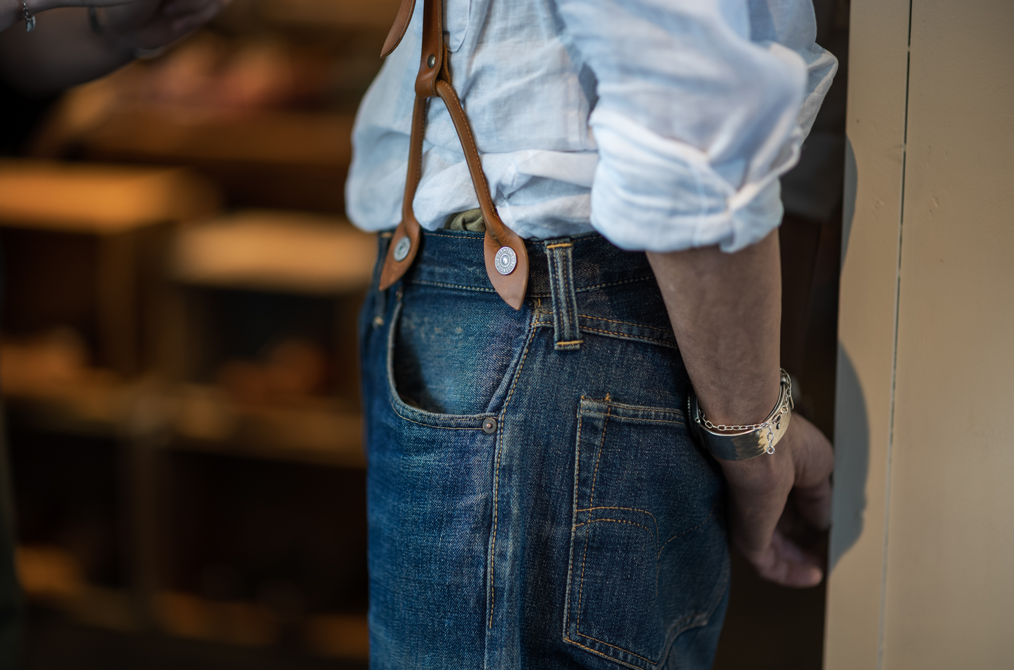 当日はMOTOR×TCBのサスペンダーにVintageのLEVISを合わされてたのですが、仕様はピスネーム有るしコンシールリベット付いてるし37っぽいのにサスペンダーボタンが有るという不思議なモデルを着用されてました。