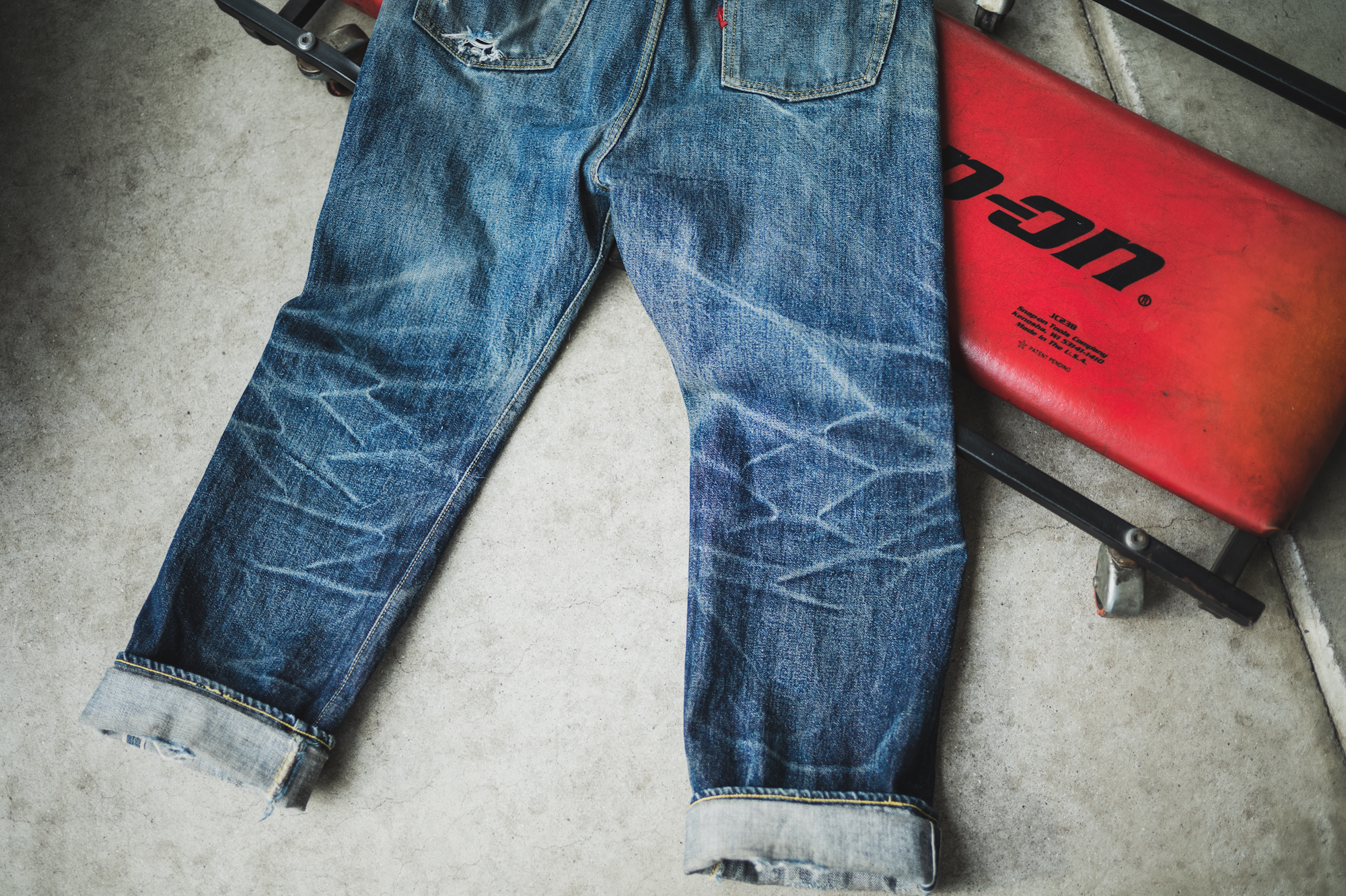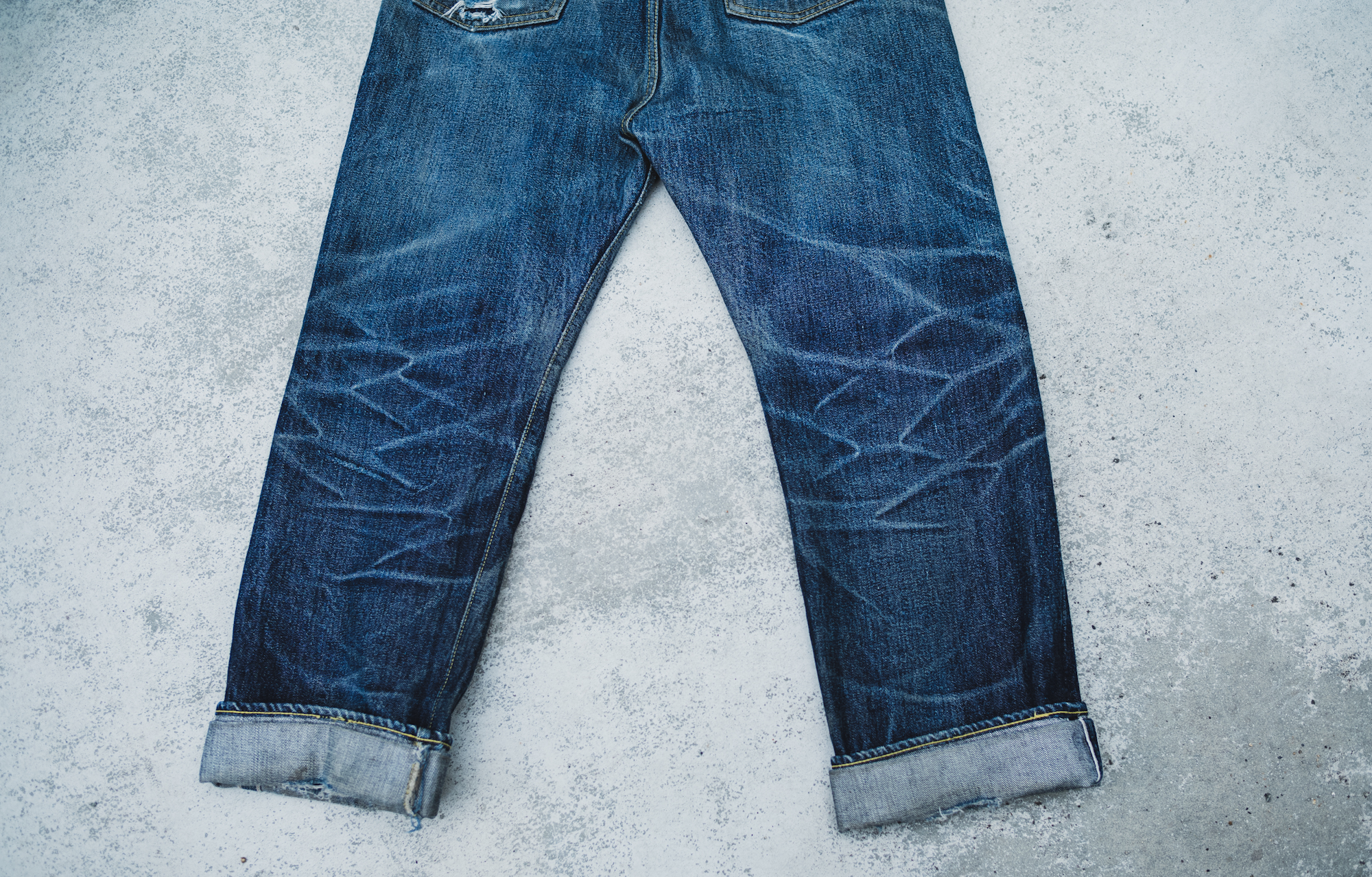 洗いを抑えてたのと少し裾も長めにクッションさせてたので膝裏のハチノスが綺麗に入ってます。
