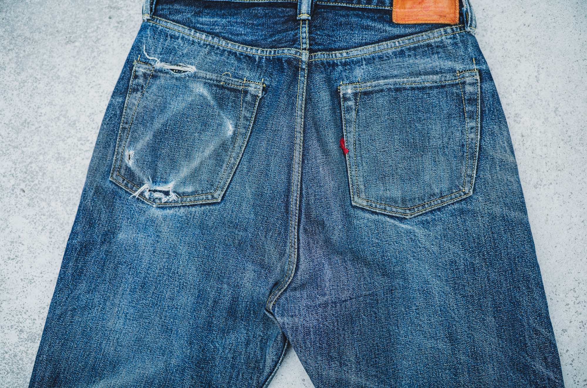 He had worn the jeans without a single wash for a year so at one point his jeans were no longer blue but black but after some washes the fade turned out to look great! The honeycomb fades look awesome too!