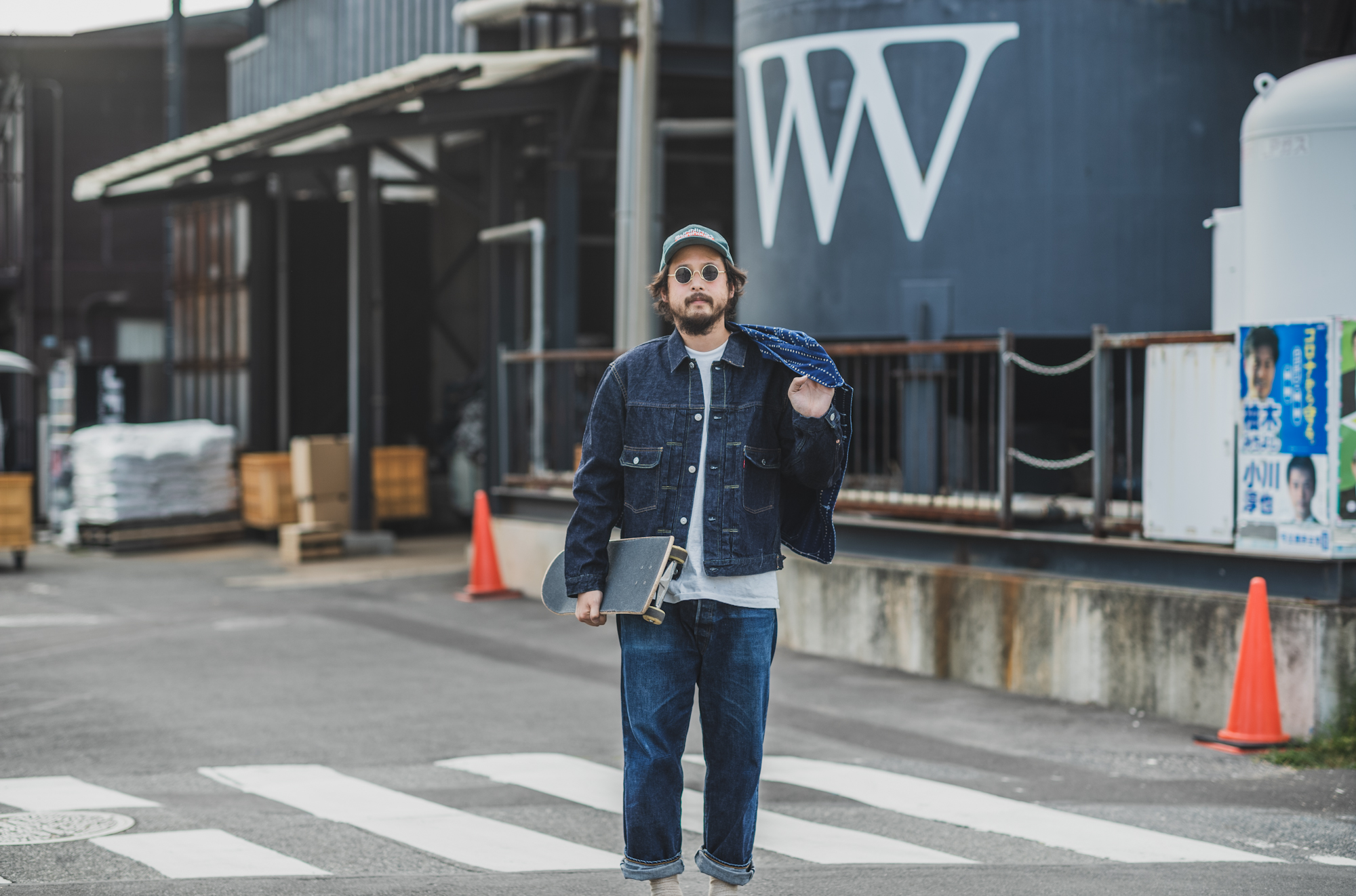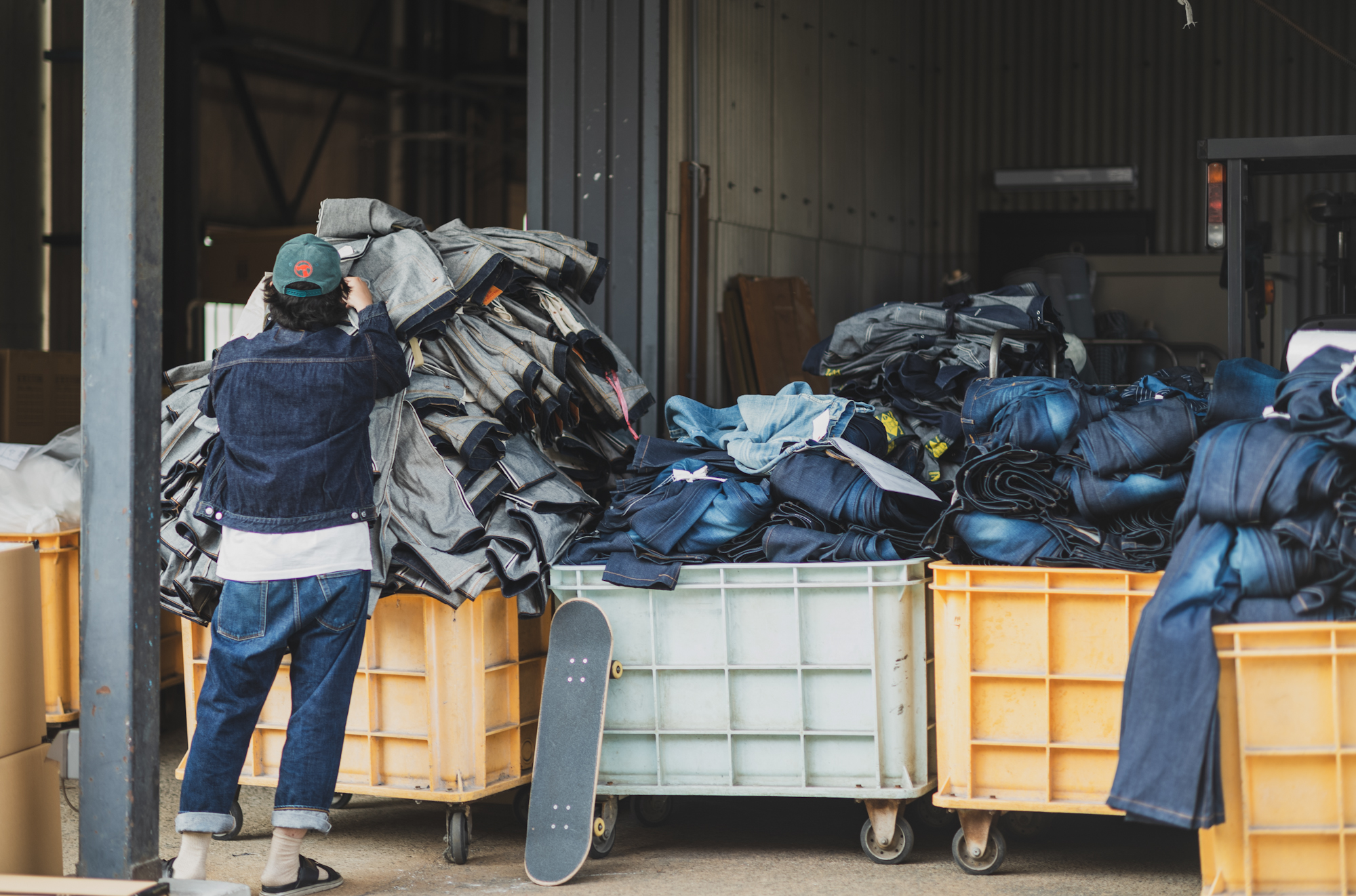 Whoval, the partnered wash factory for TCB, is just 2 minutes away from us. We call this kind of short distance the distance that doesn’t make your soup cold. Speaking of Kojima, everything you need is available in the soup distance so it’s again a denim city here. So, when Ryo visits factories nearby he goes there by skateboard. (Leica Camera didn’t allow Hajime to take pictures of me moving around with the skateboard, focus-wise)