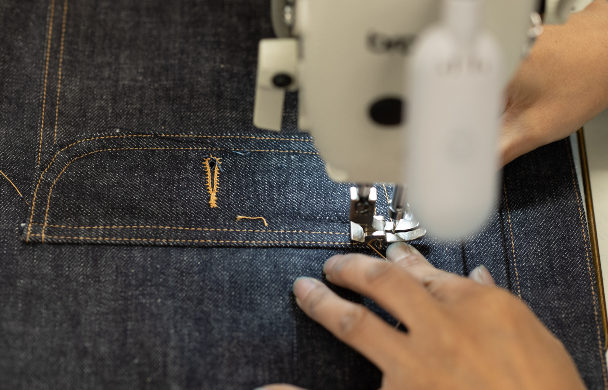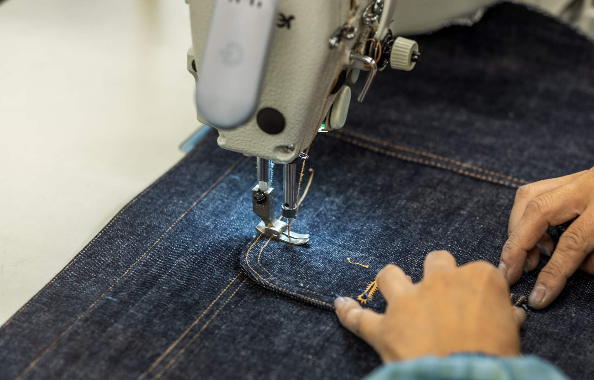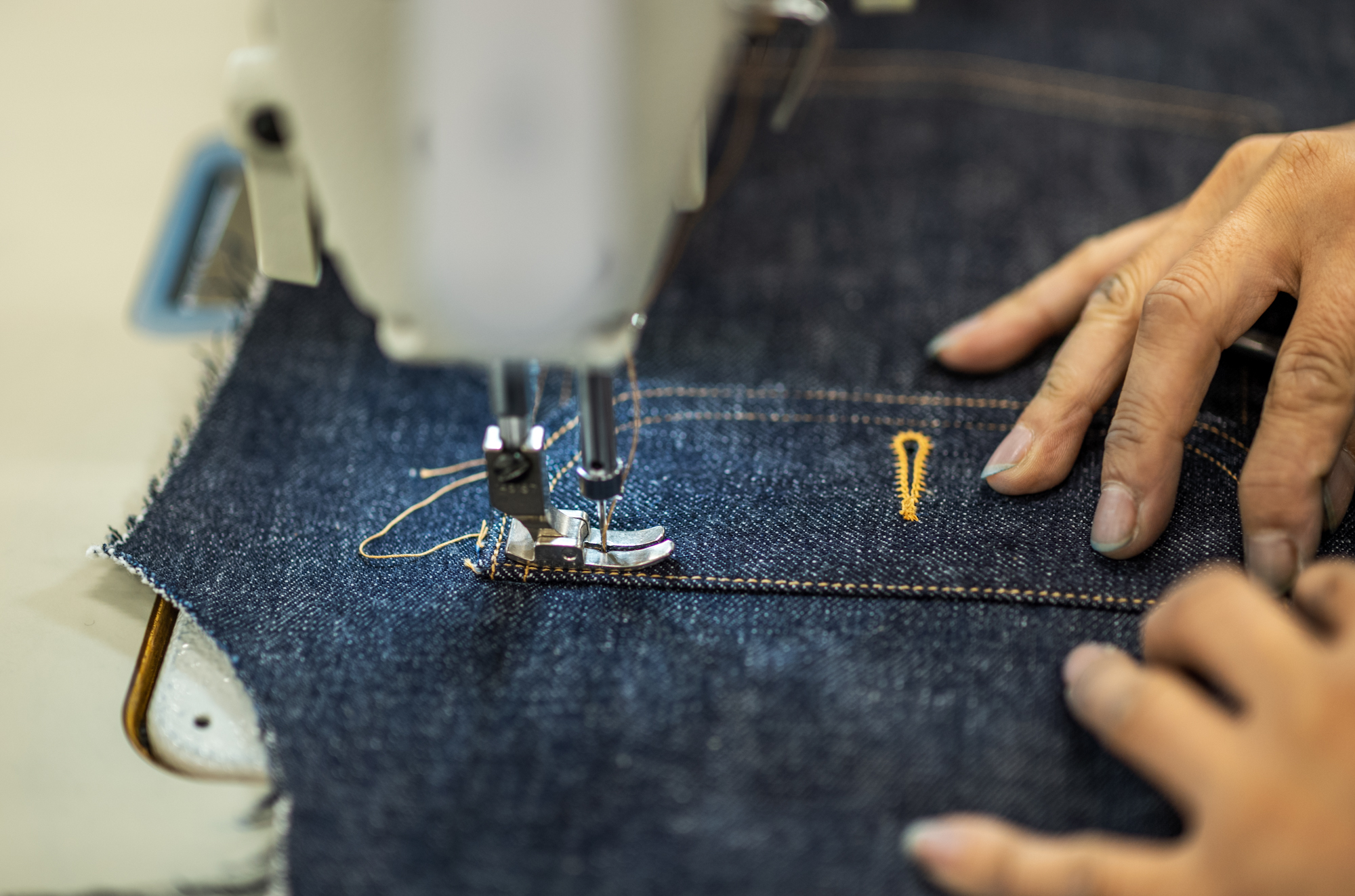 After attaching the pocket to the body by a two-needle sewing machine, we attach the pocket flap by a single needle machine as the next process. Usually the pocket and its flap are sewn together in one-go after the two-needle machines prevailed in the US. But, it seems it was two separated processes in the 30’s.