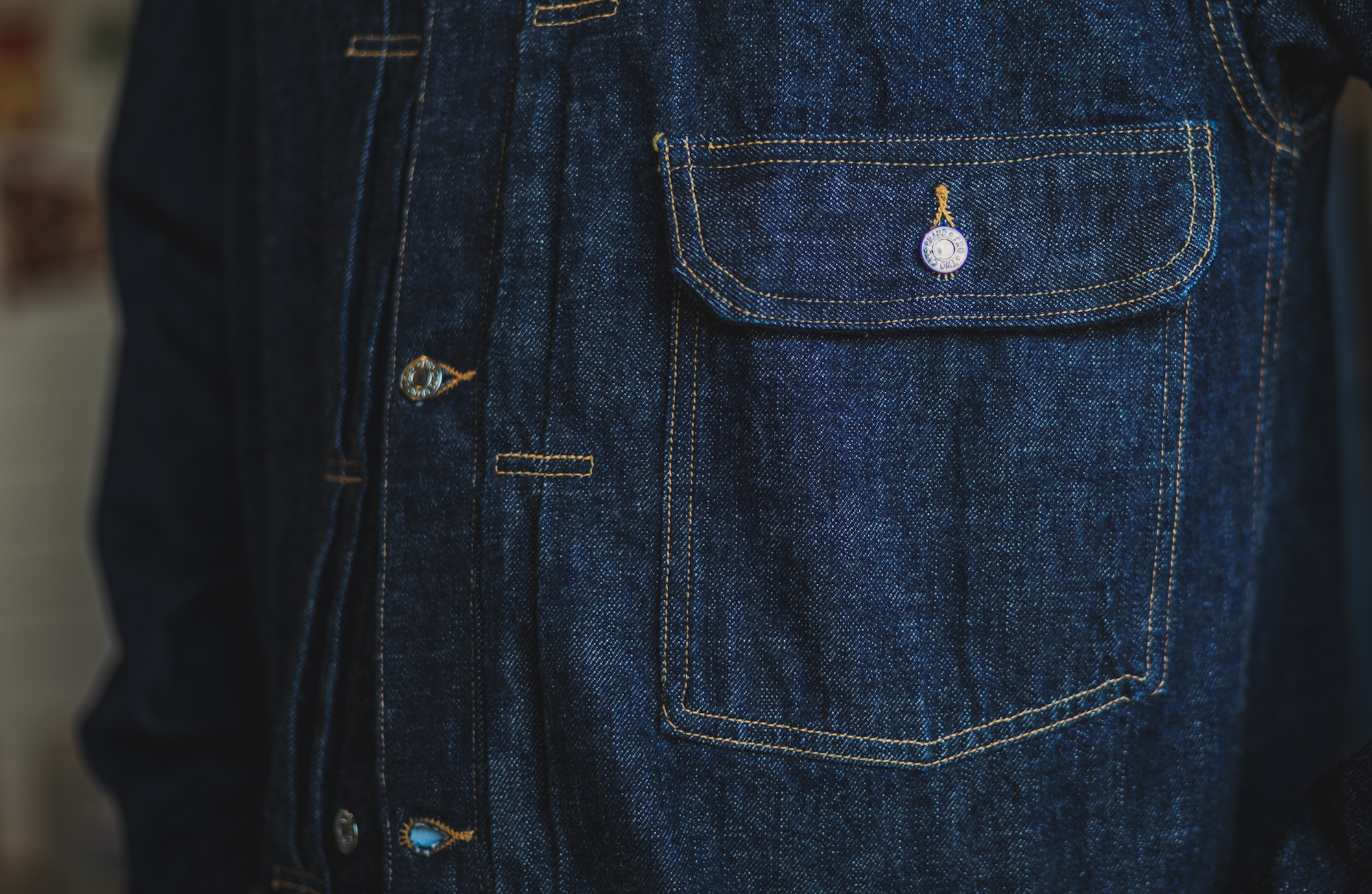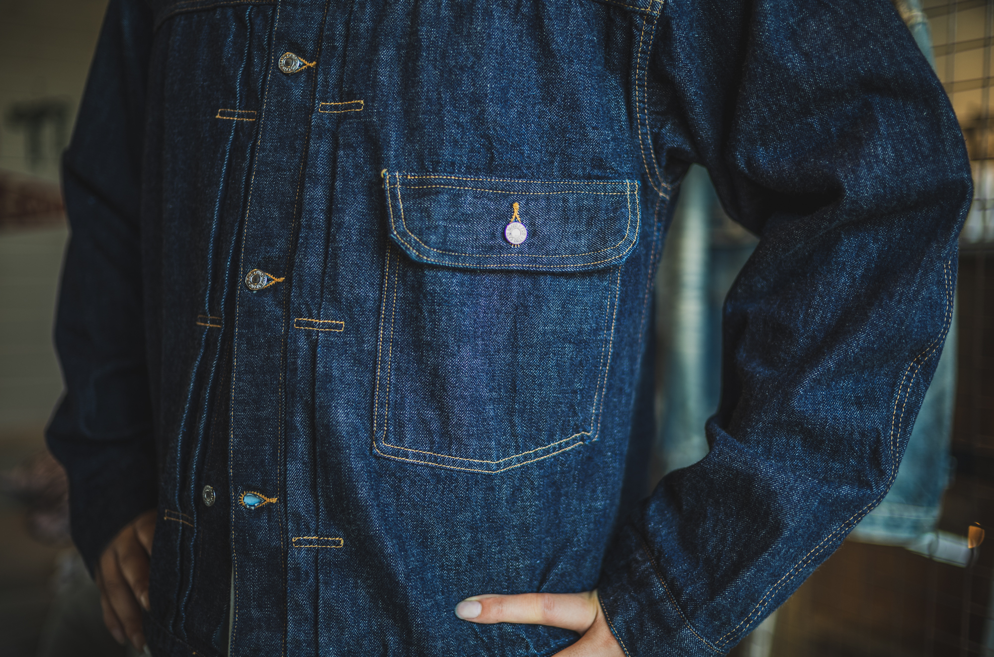 TCBの20’sJacketもその雰囲気を出したかったので少し蛇行させながらフラップを取り付けました。