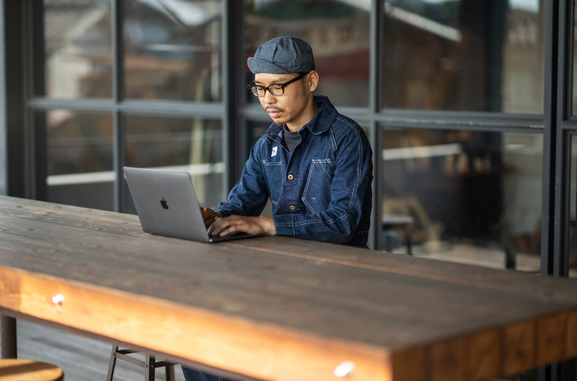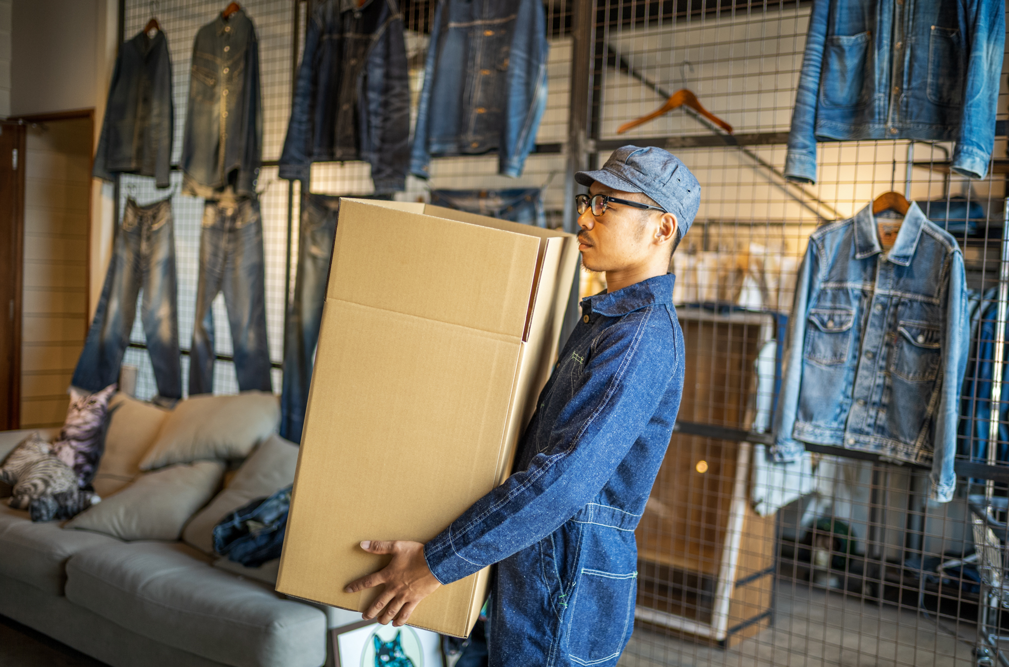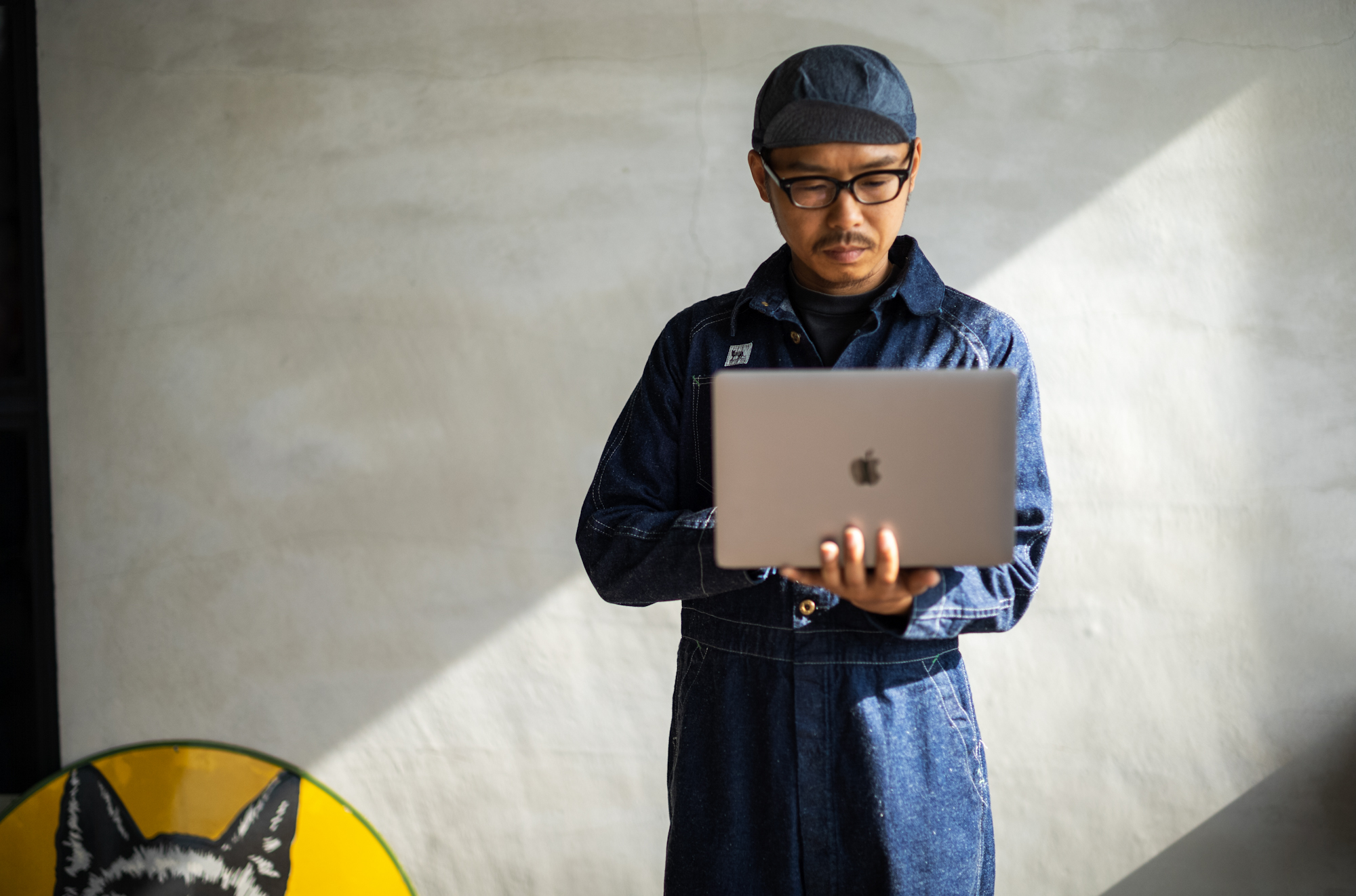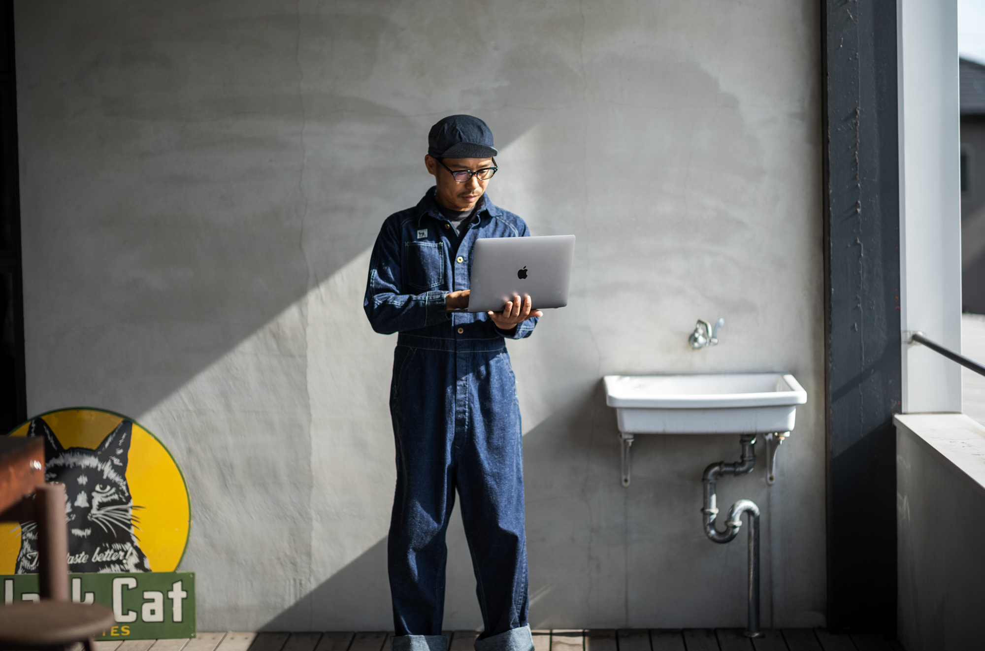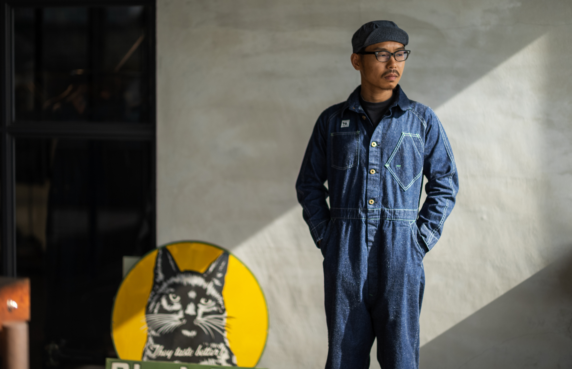 When Shiba came to me for the job interview, I don’t know why but Shiba told me passionately that he wanted to work wearing a formal suit. Several years after, I can finally let his dream come true lol. It’s not a formal suit but a crew suit but I think shirt & tie & jumpsuit style must be good on Shiba!