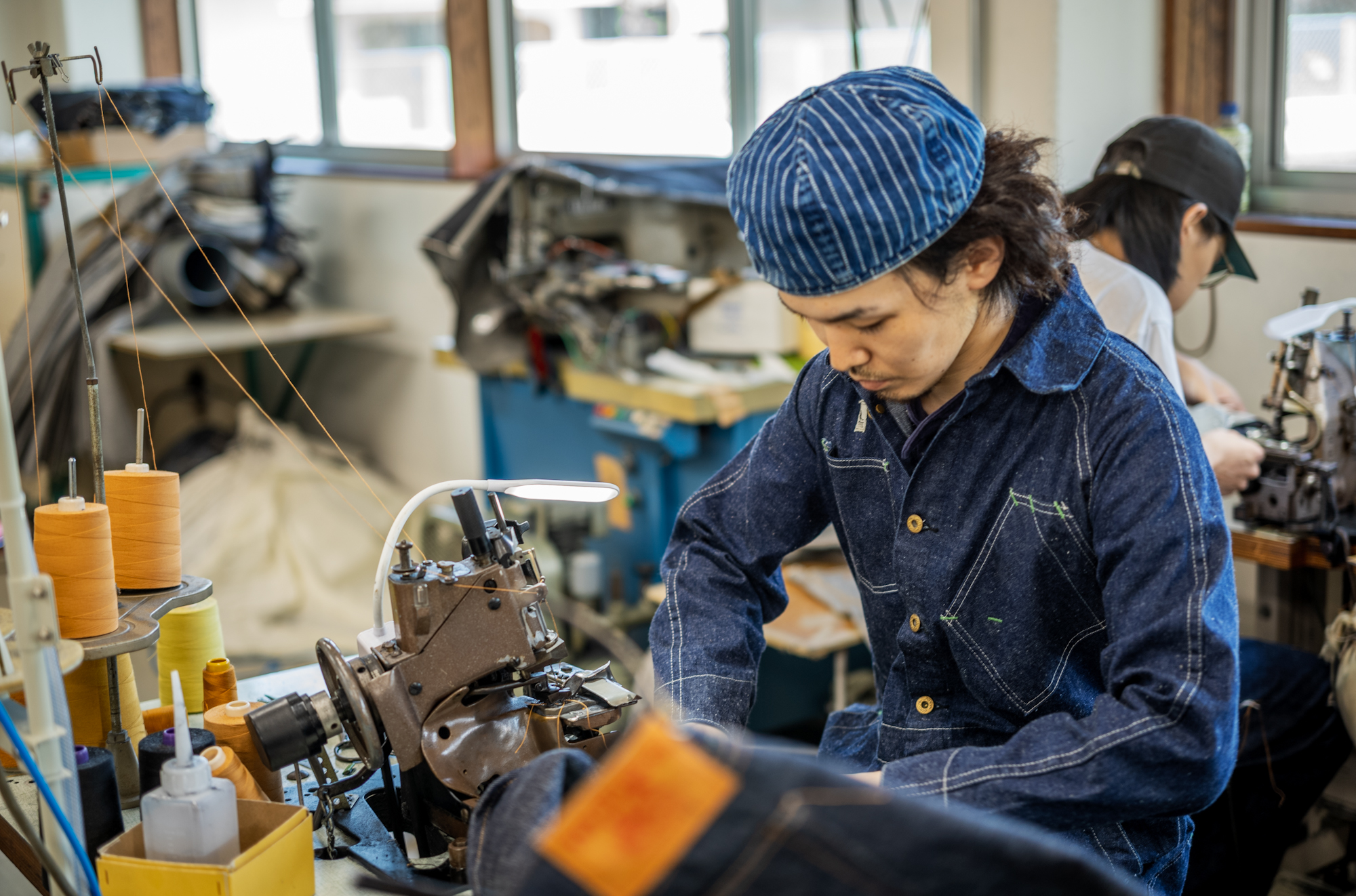 He is in charge of attaching rivets, bar tucks, buttons as well as hemming with Union Special 43200.