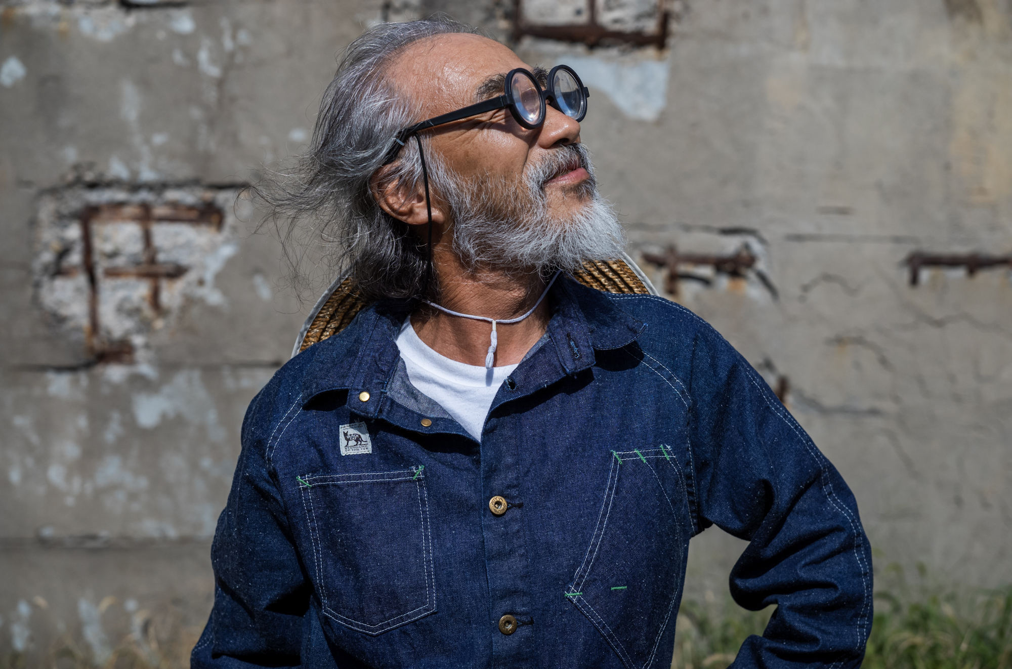 I always put a serious expression on my face when taken a picture of but if I see his smile, it makes me think that we should make clothes that make everyone smile like him.
