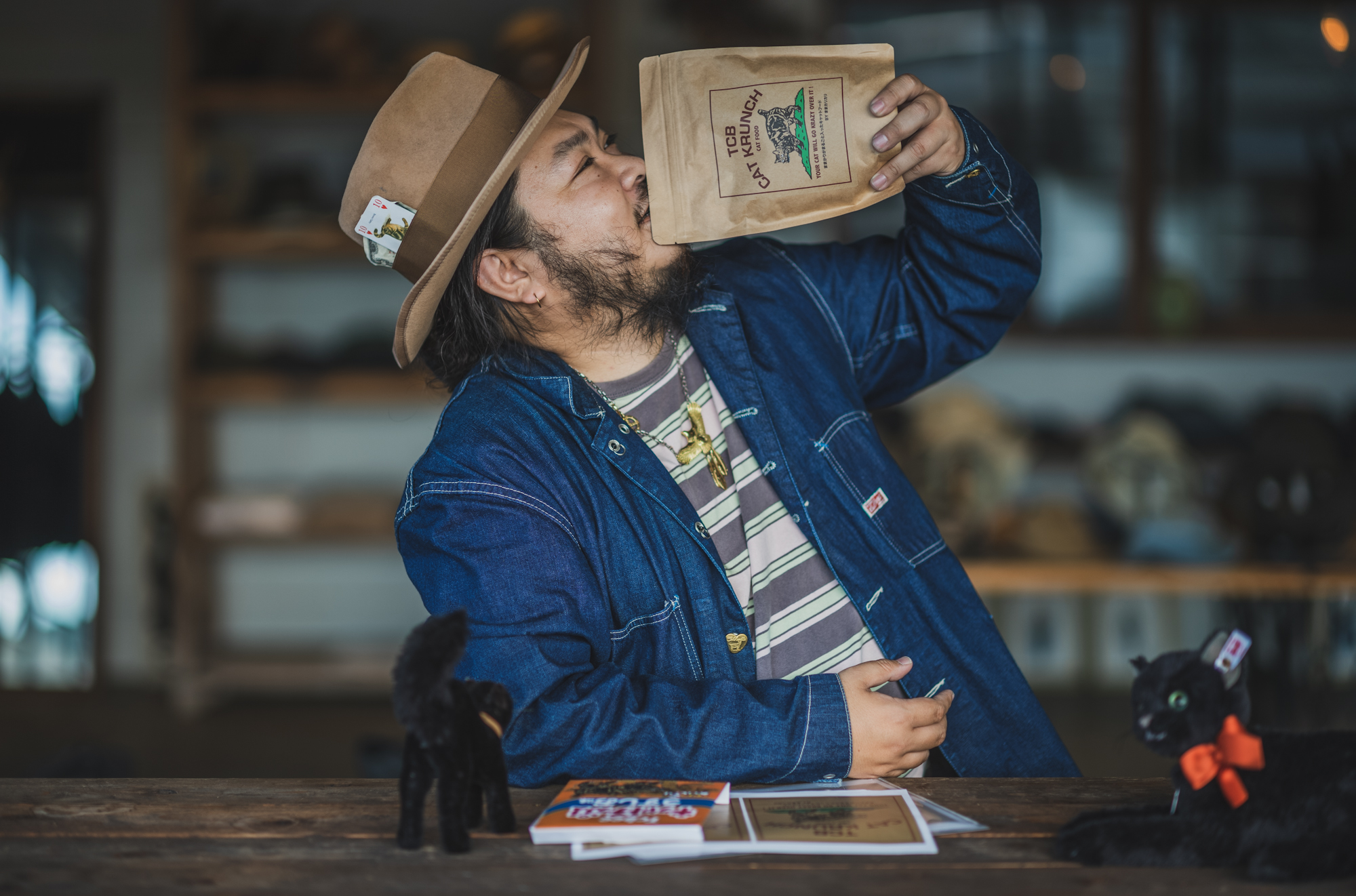 In Japan we are having Silver Week holidays soon so we’ve just finished a small restock for Cathartt Chore jacket only available at our factory shop. Today’s photos are of me when deciding the package for the new releases cat food. The orange one was a parody of JP ver. Lay’s or Ruffles but it got rejected by my crews haha.