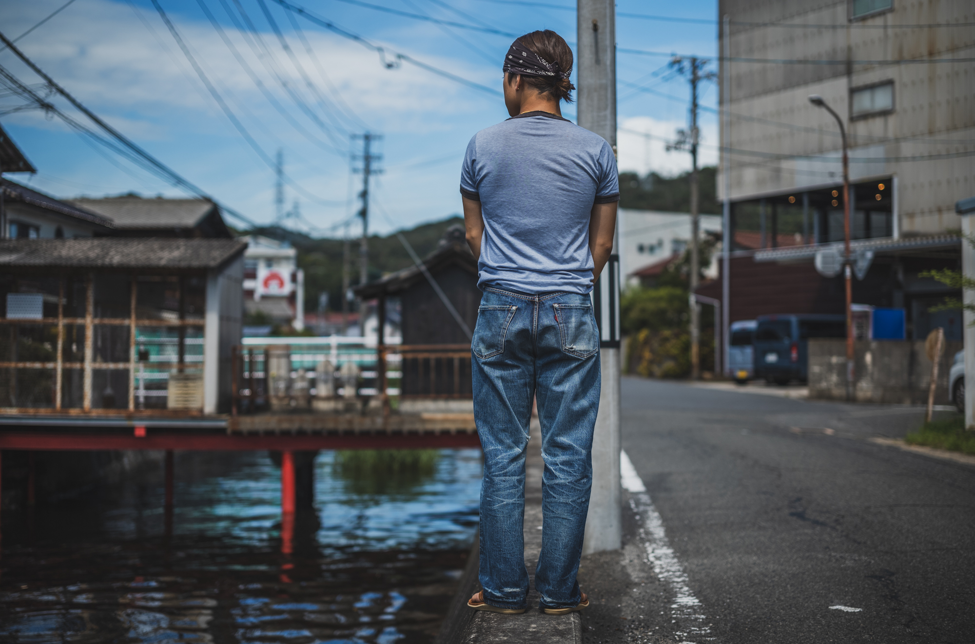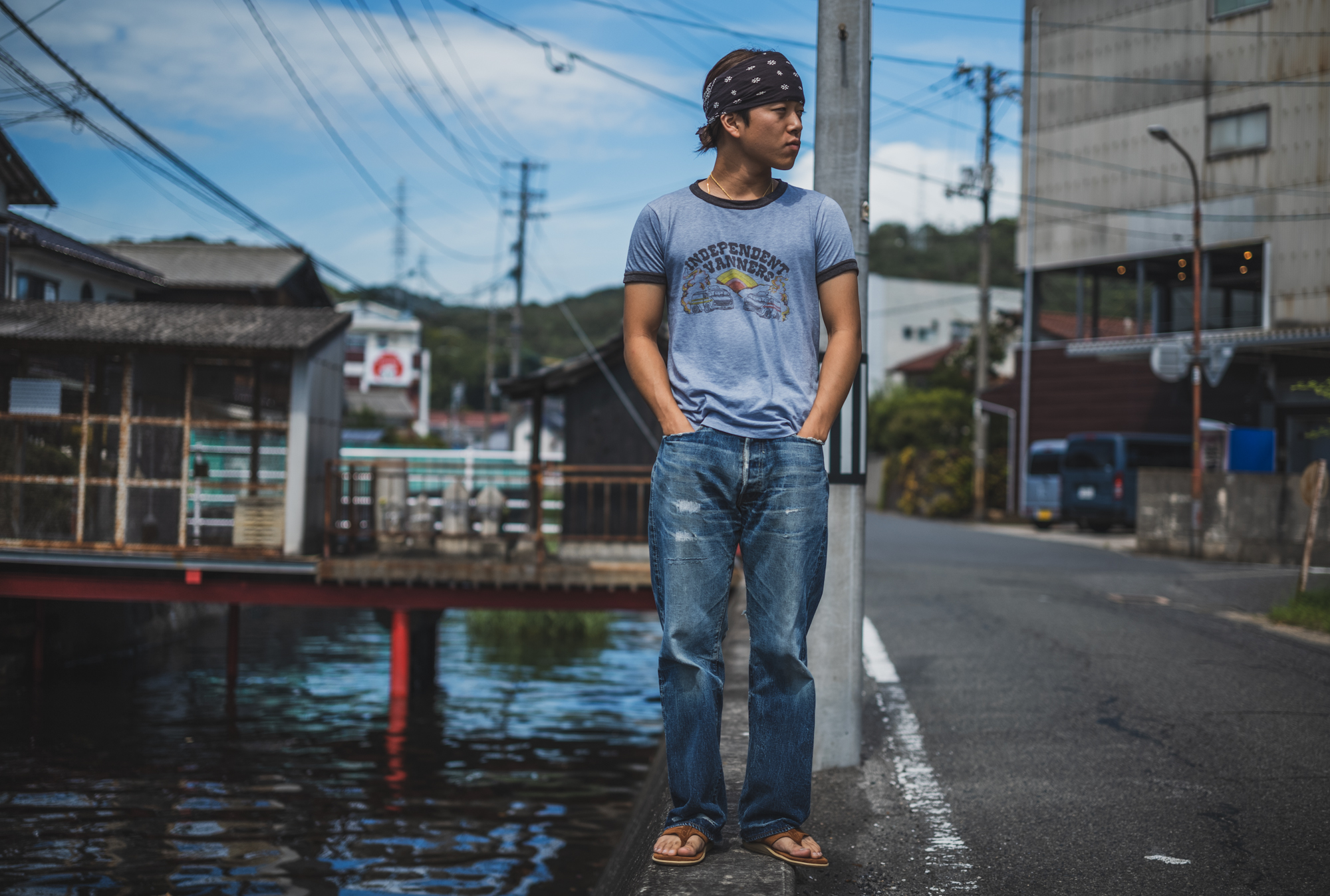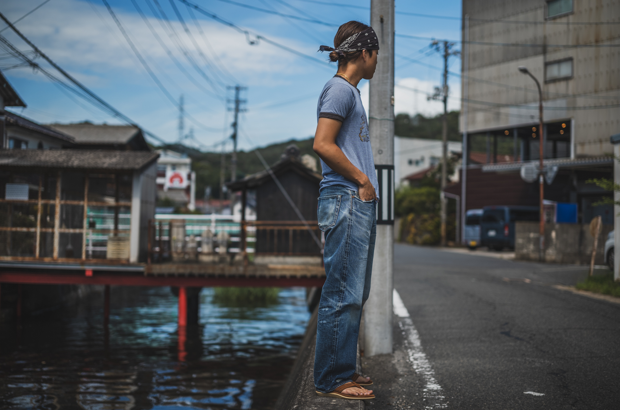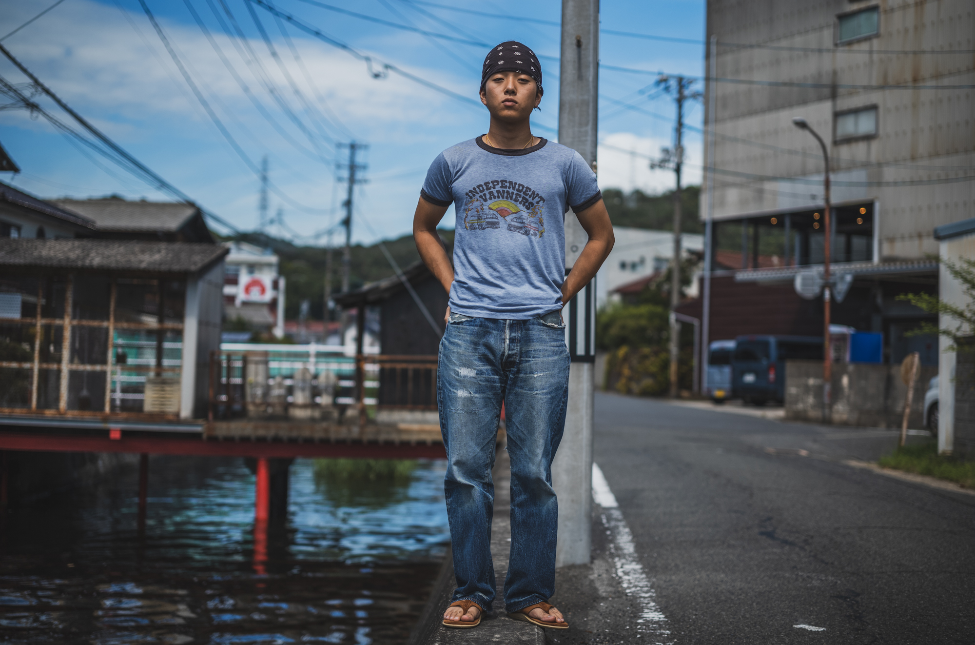 Especially, the way he styles the bandana is the very style of 90’s JP bad boys. I had him wear a faded pair of 50’s jeans for photoshoot. Sagging a little bit with the right balanced length is the 90’s style.