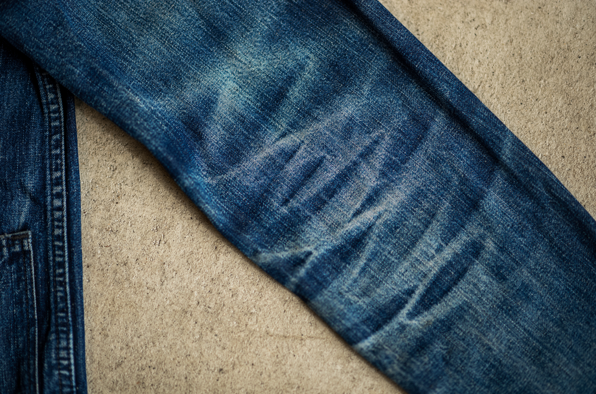 新品時には綾が見えない分縦落ちするの?っていう印象ですが、その答えは写真を見れば一目瞭然ですよね。
