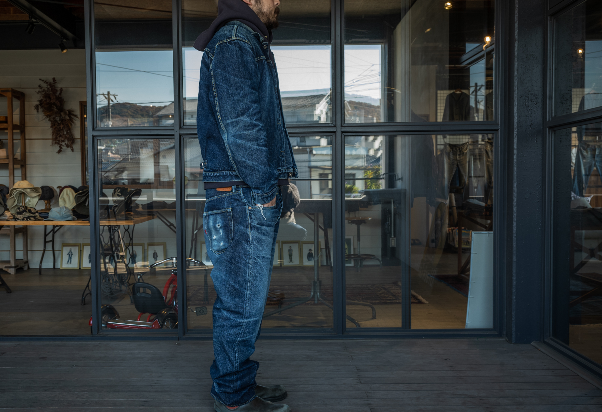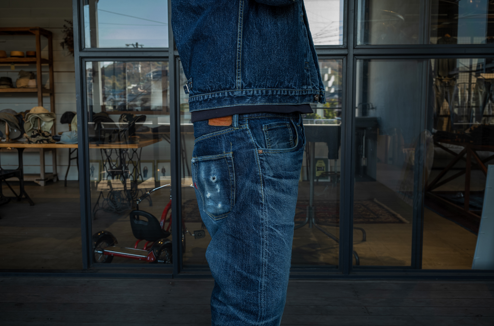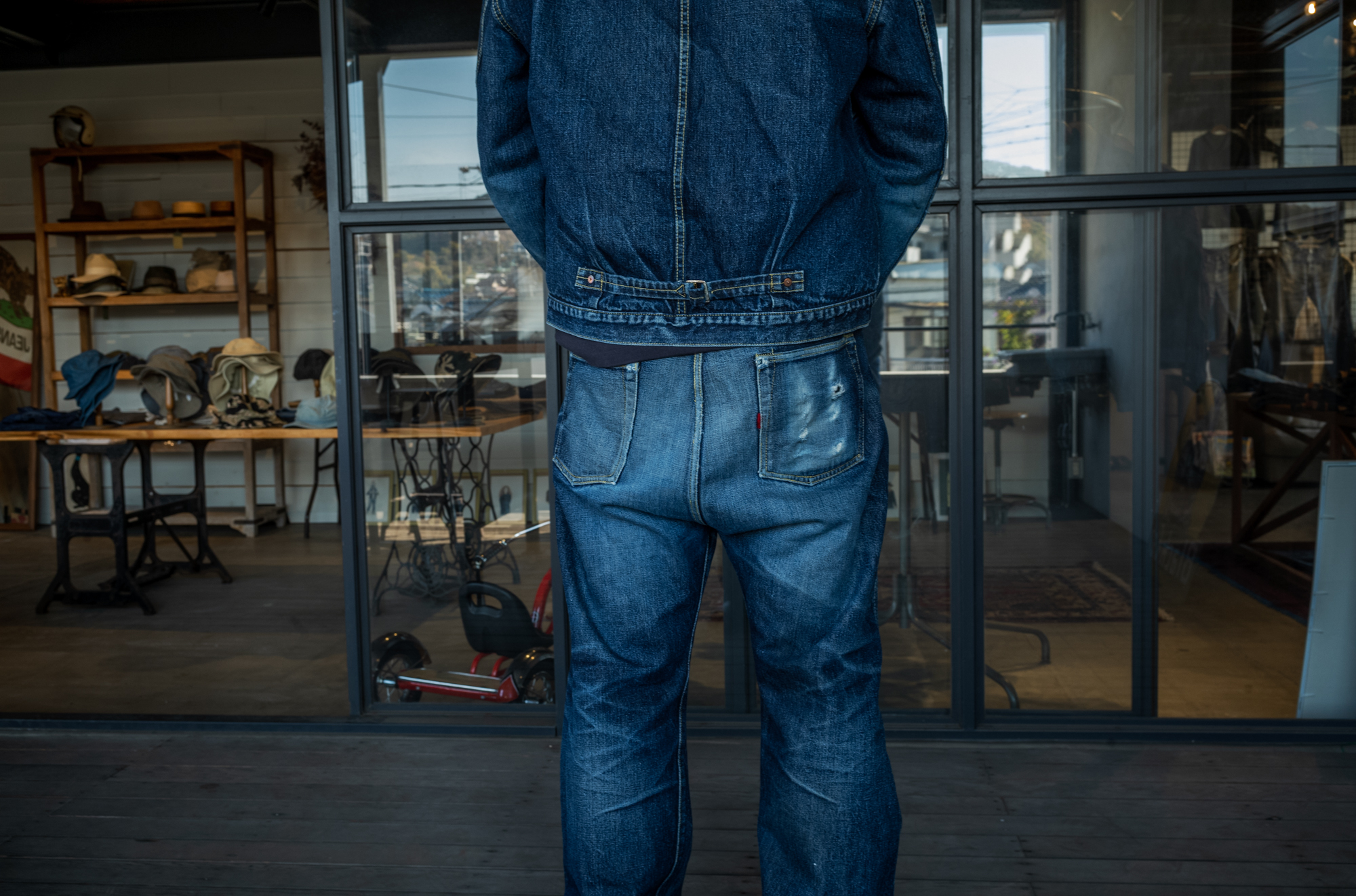 Well, it’s been 20 years since I started making jeans but I still feel good when seeing someone wearing a well faded denim tux! I always have this mind and as a jeans maker we always strive to give the same feeling to our customers!