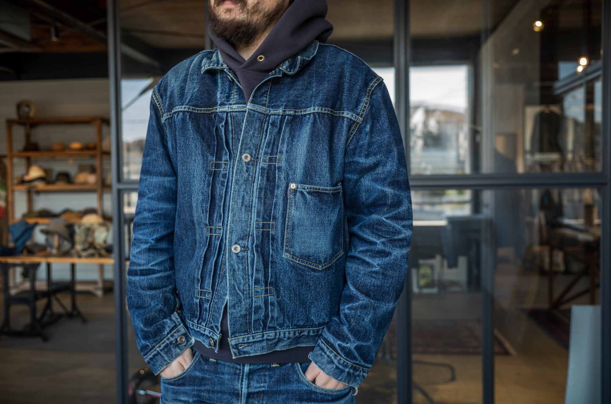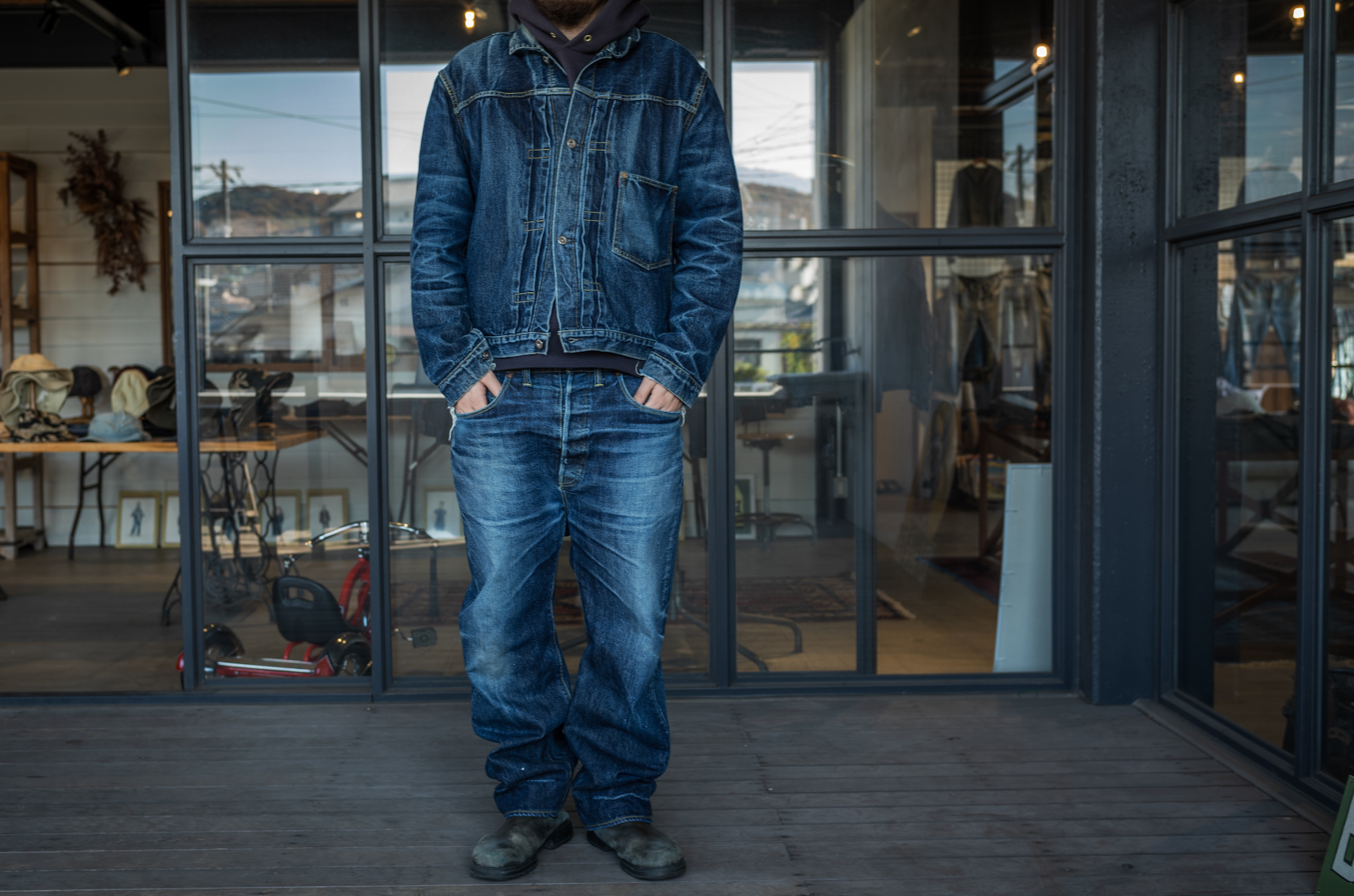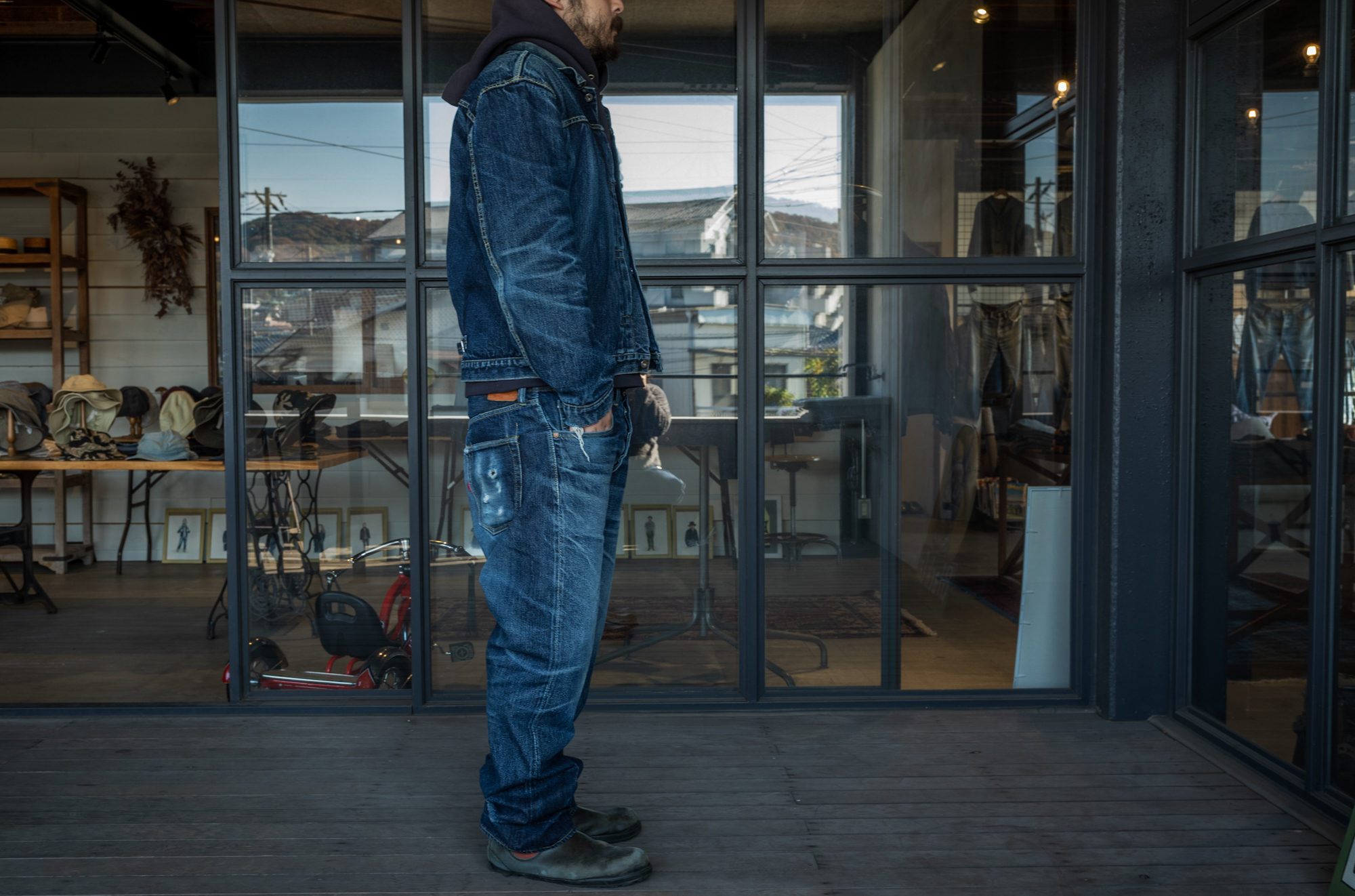 Well, it’s been 20 years since I started making jeans but I still feel good when seeing someone wearing a well faded denim tux! I always have this mind and as a jeans maker we always strive to give the same feeling to our customers!