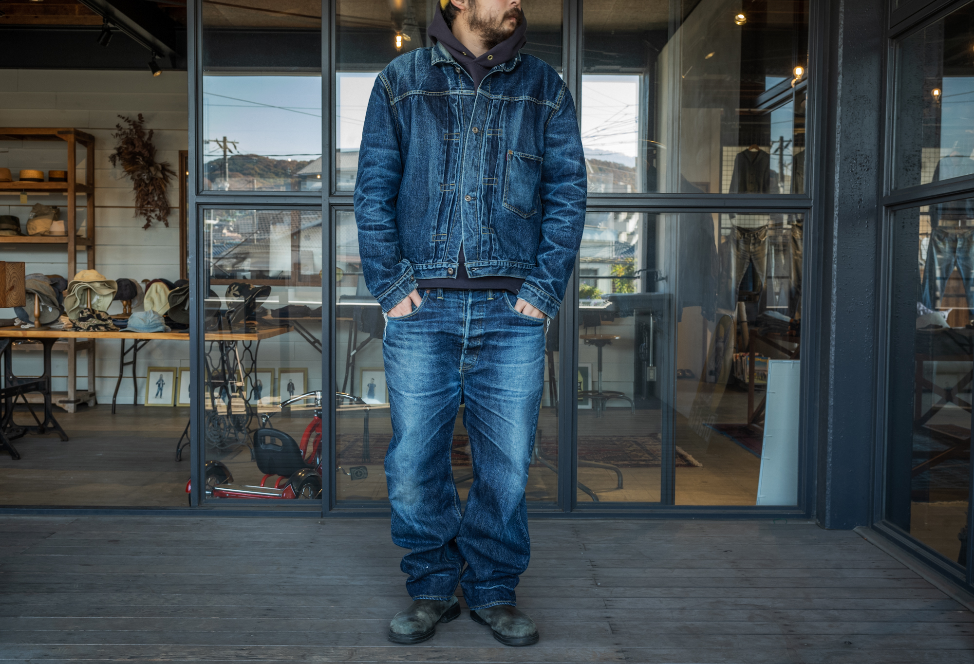 もうこの上下は完成にして店舗に飾ろうよ!っていう案も出たんですが、先日語ったPDCAでは無いですが、まずは参考にしたVintageと同じトーンまで穿いて、皆さんにお披露目したいなって思っております。