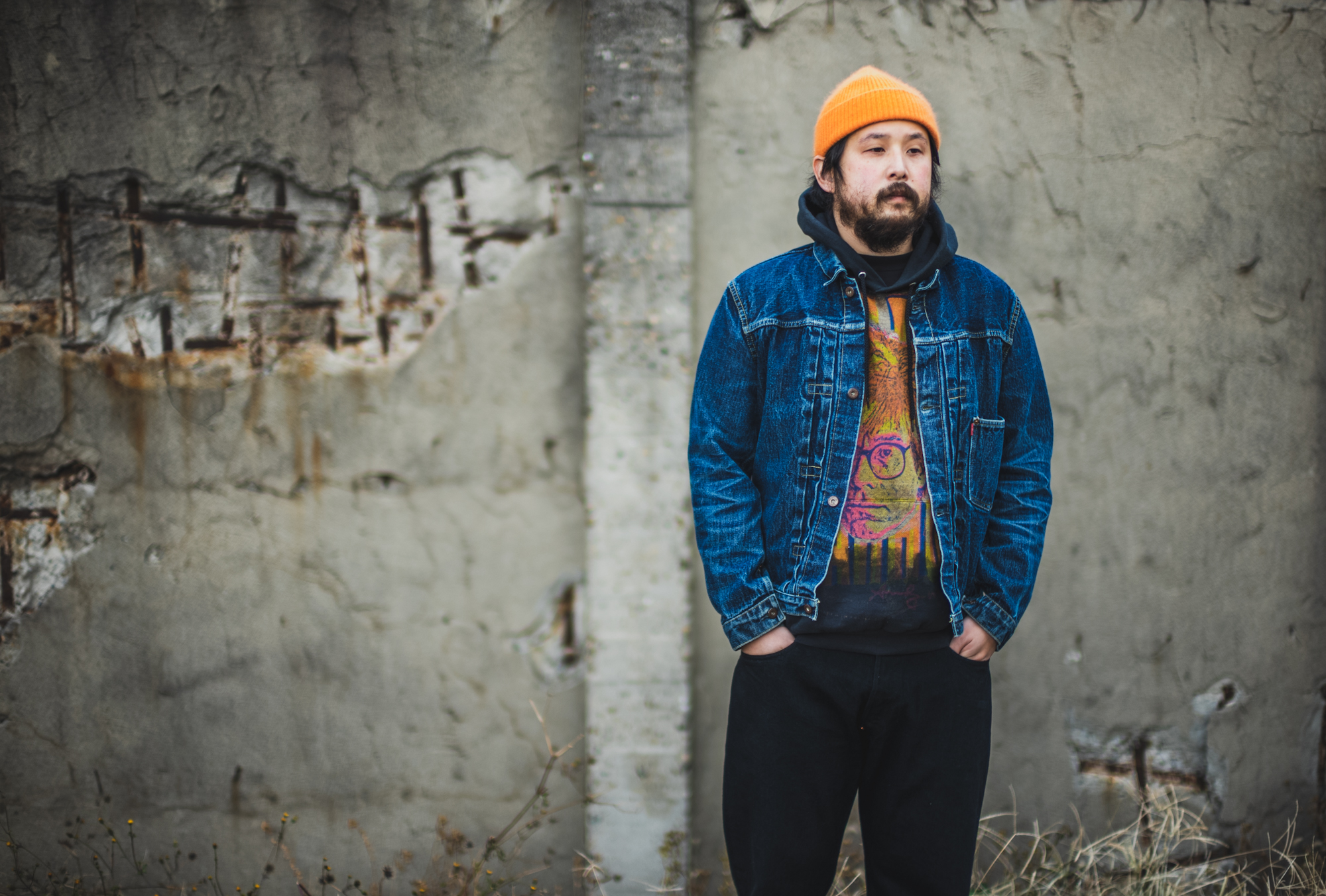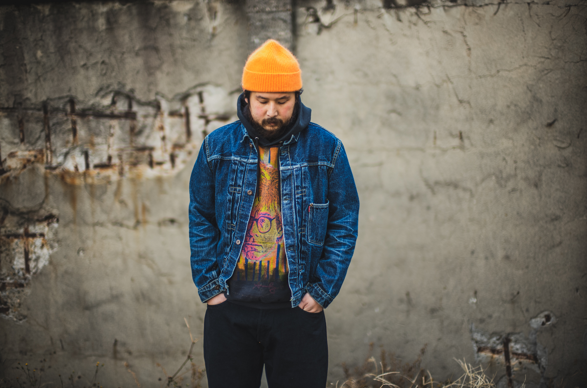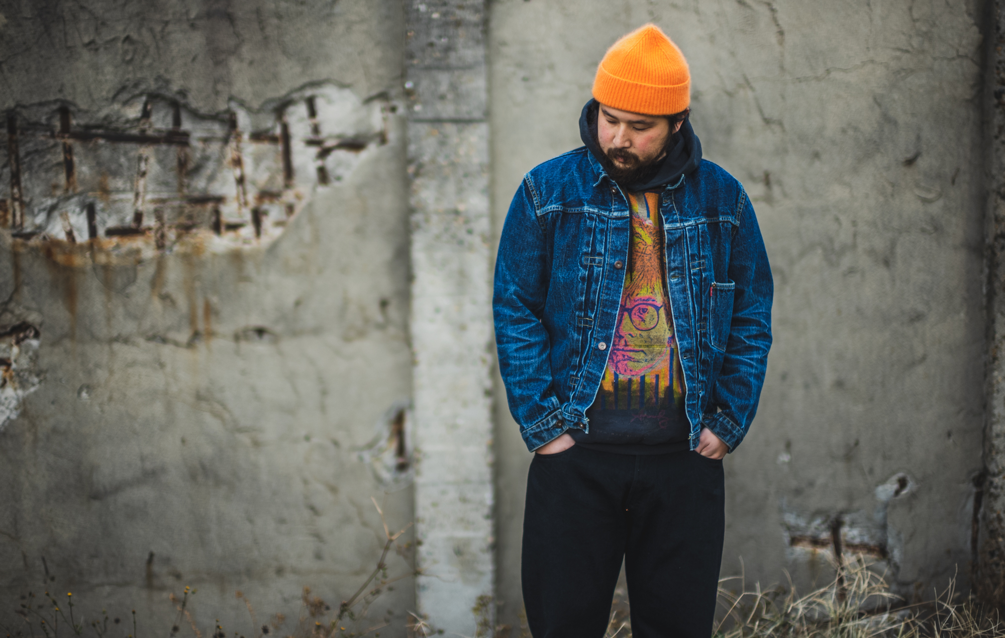 昔はこの色使いをしたい時は皆、Gジャンに革パンを合わせてたのですが、昨今だとDENIMでコンビにした方が俄然合わせやすいと思います。