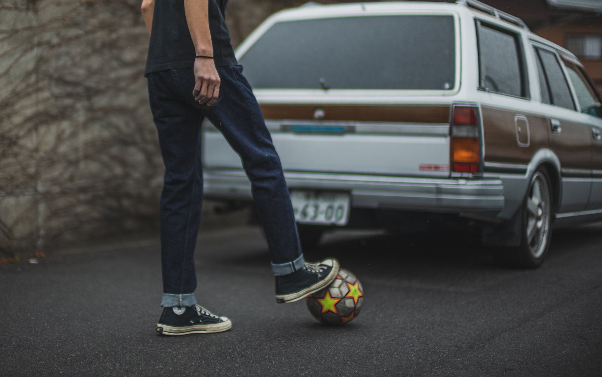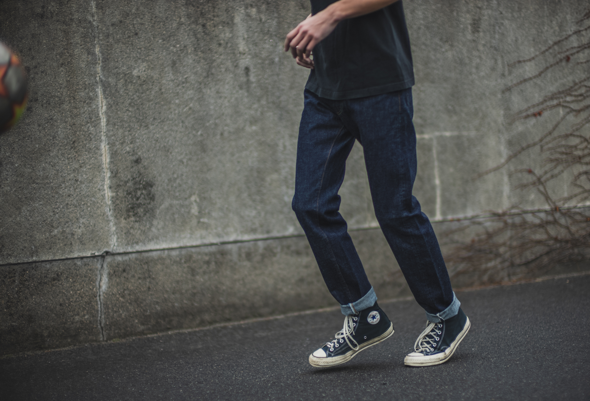 After the World Cup, TK seems to have put away his skateboard and started football instead with the Slim T and he says it’s easier to do lifting with this slim pants. The sewing details and the fabric are the same as our standard model, 50’s Jeans so that great fade is guaranteed!