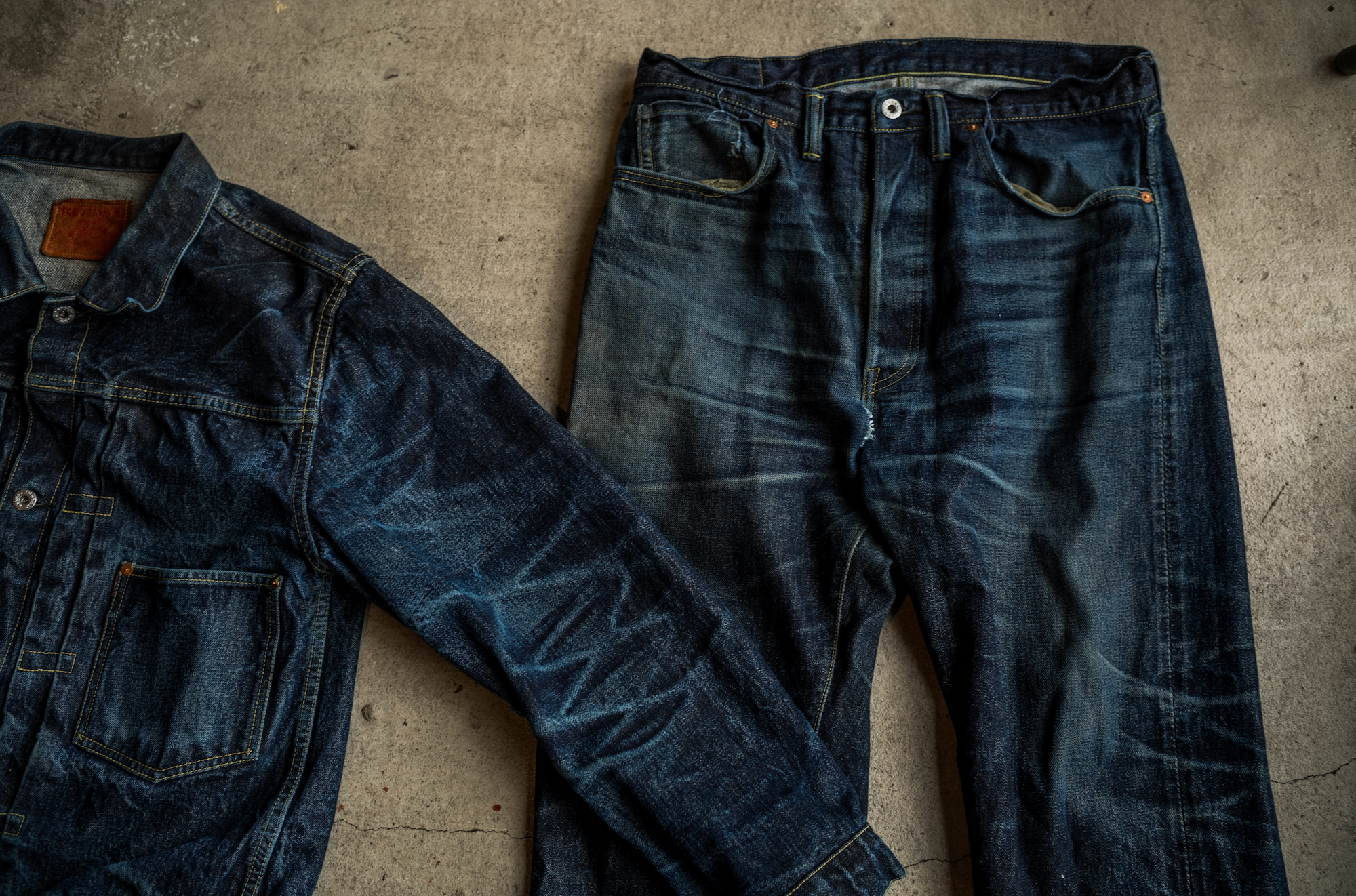 Today’s photos are of S40’s denim tux worn by a hair dresser. I would say hair dressers are good denim faders!