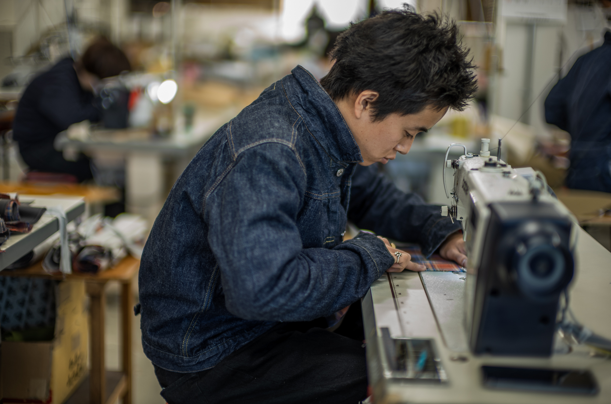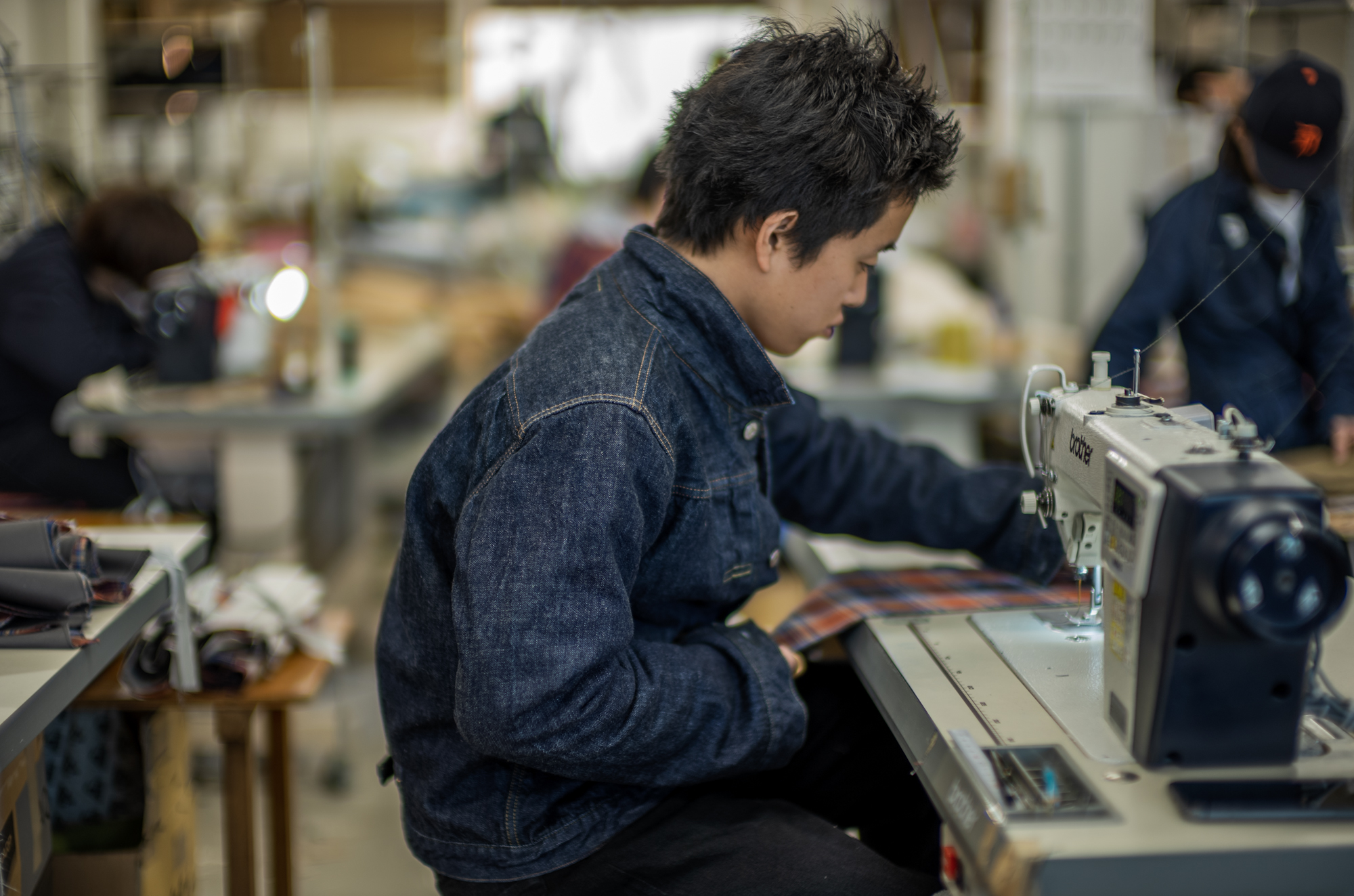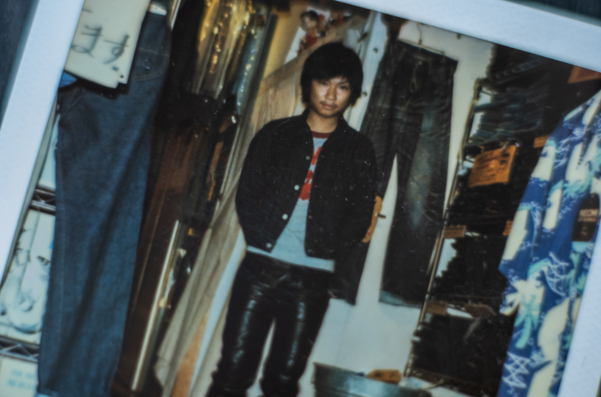 He is Sena, the youngest boy at our factory. He styles 90’s items like a vintage flight jacket, super tight T-shirt, and sometimes a bandana on his head and it always reminds me of my youth days.