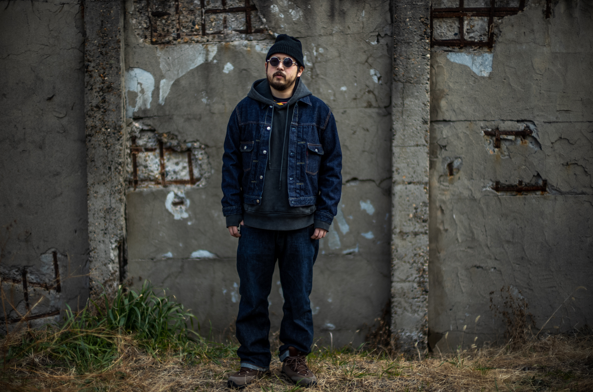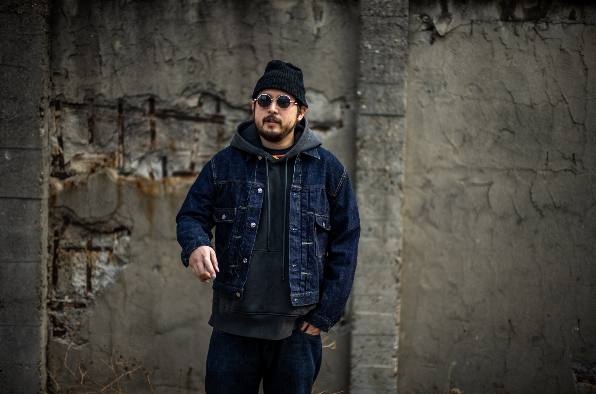 約80cm幅のセルビッチデニムで裁断するジャケット。
