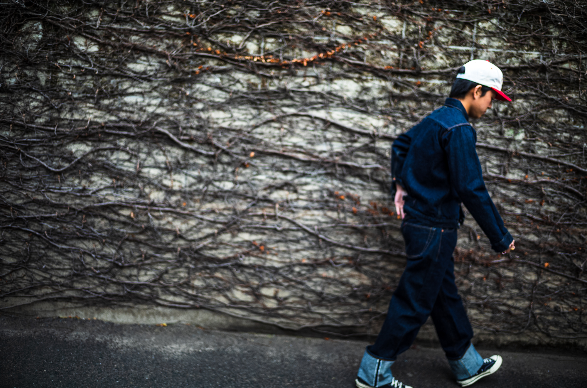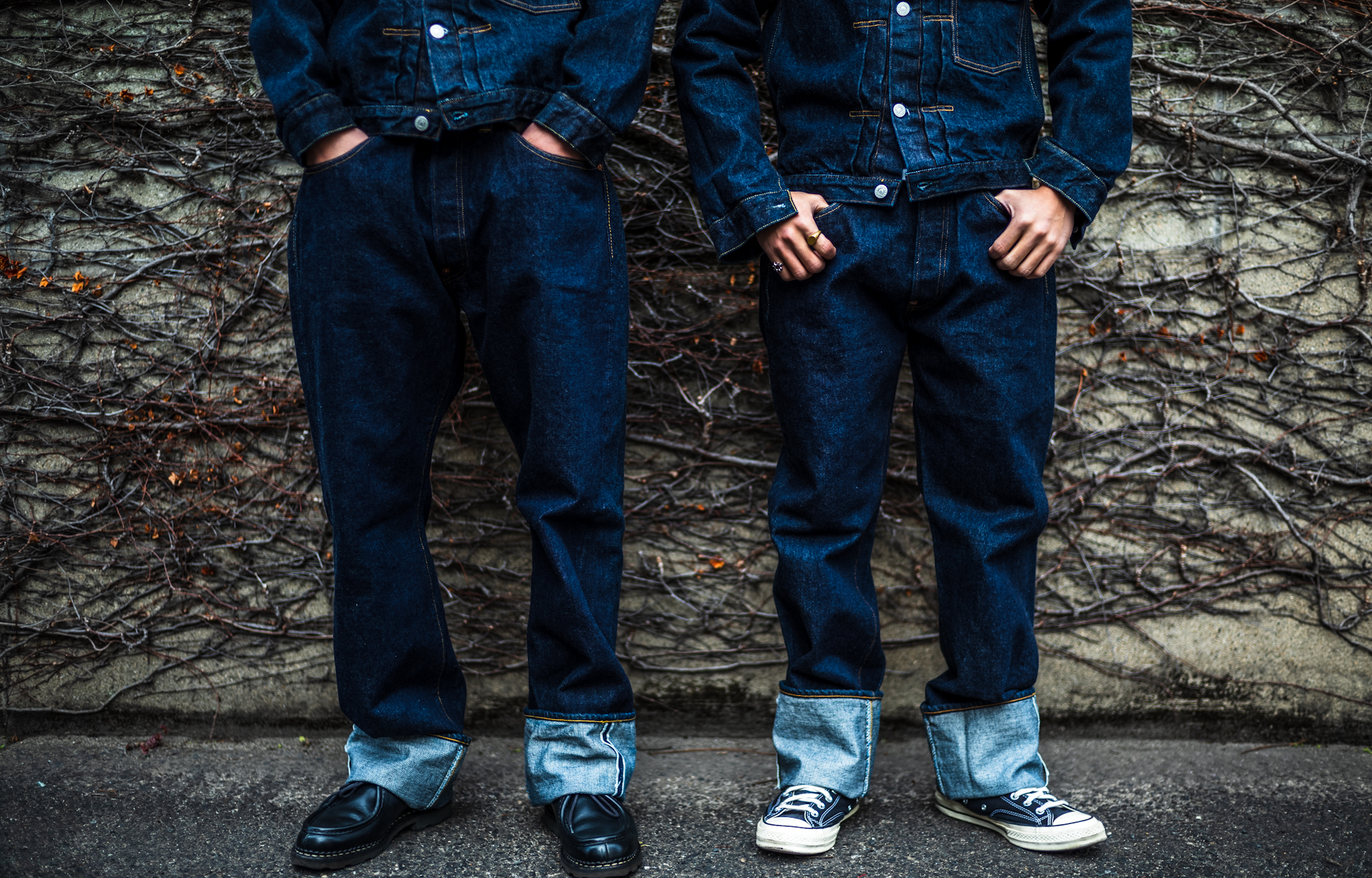 Today’s photos are of Sena and TK wearing 30’s jeans. Since the seat & the front block is roomy on this model, a per feet fitting size looks a bit oversized but that’s exactly the look of vintage 30’s jeans.